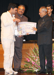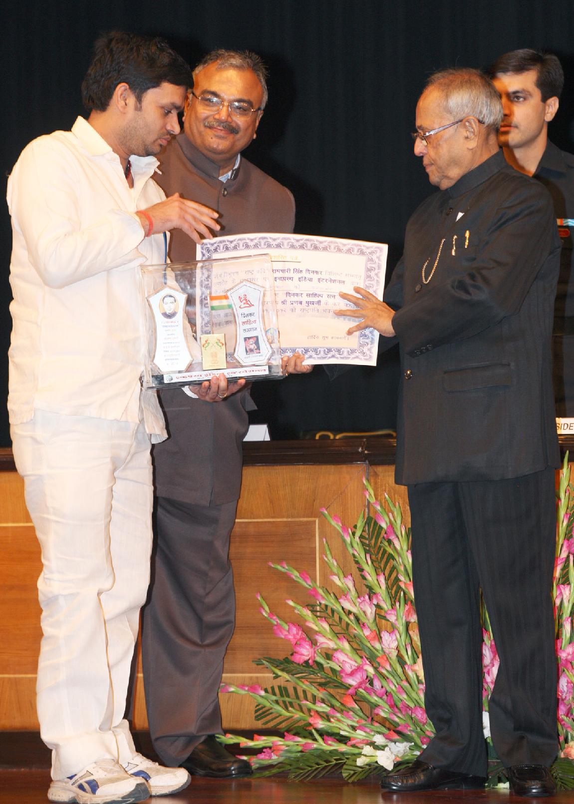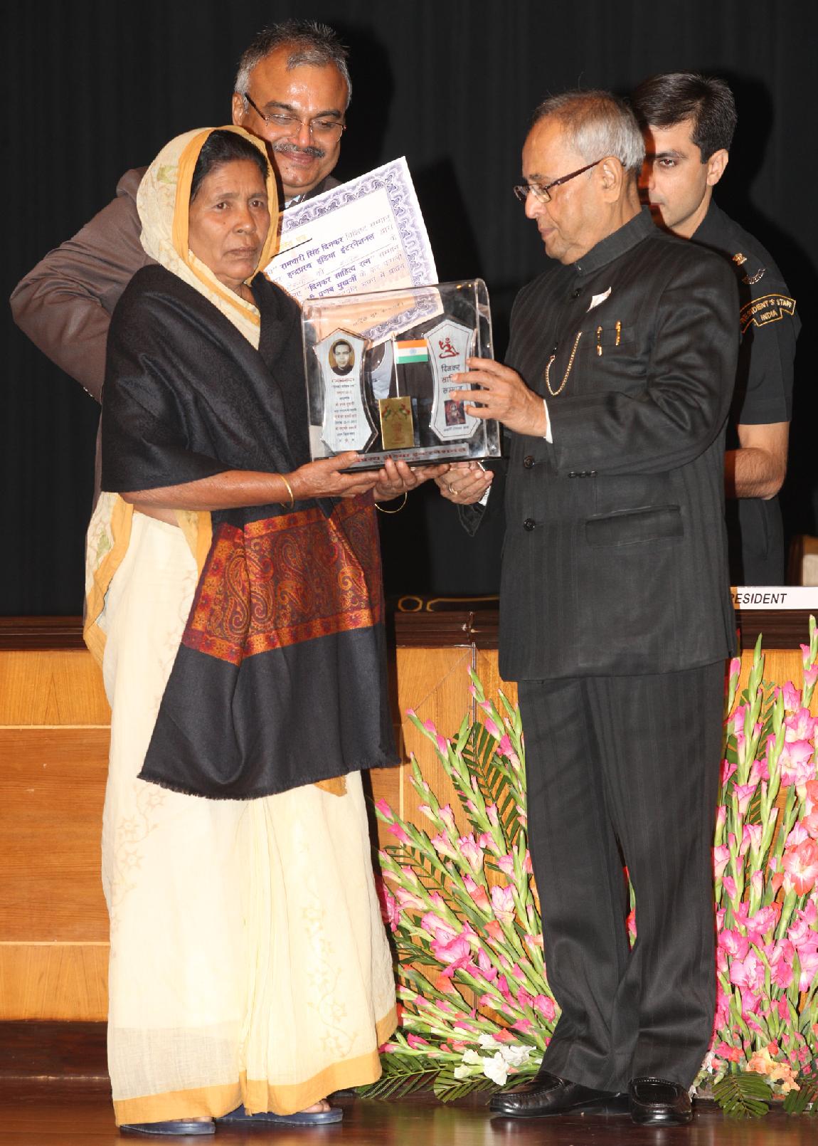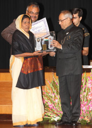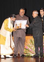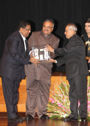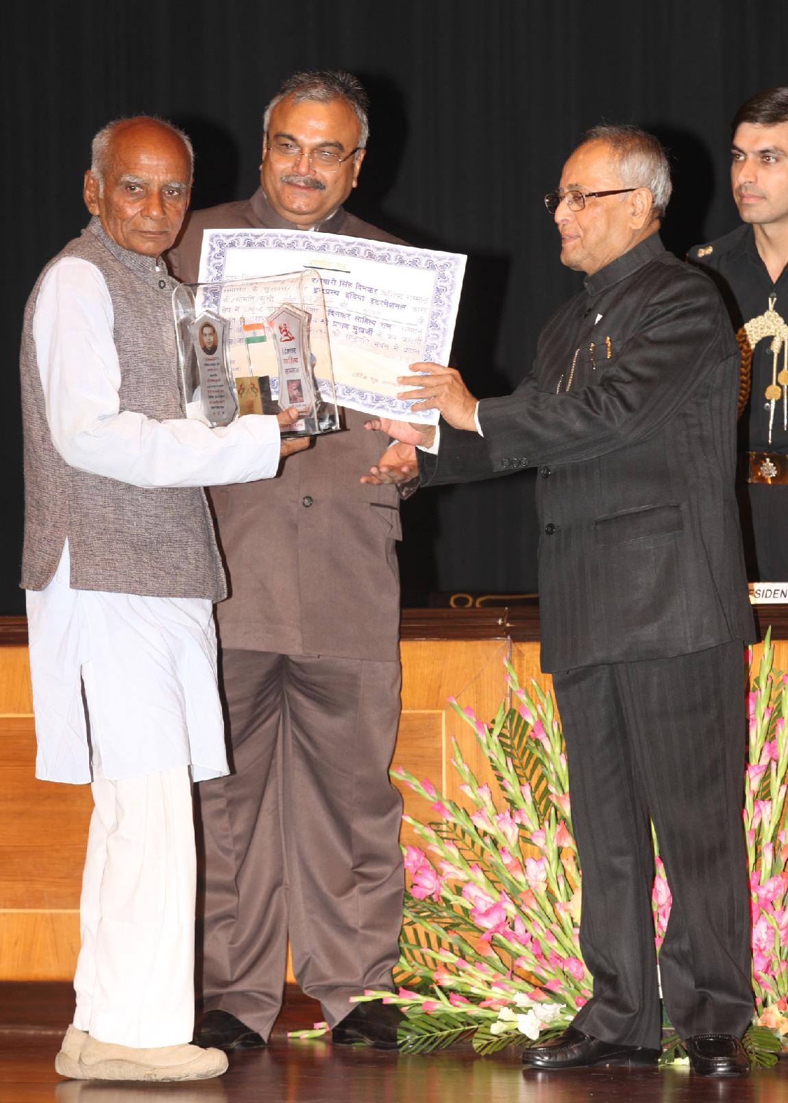 | Caption: | The President of India, Shri Pranab Mukherjee Presenting the Dinkar Sahitya Samman at Rashtrapati Bhavan Auditorium in Delhi on Nov 23, 2012 |