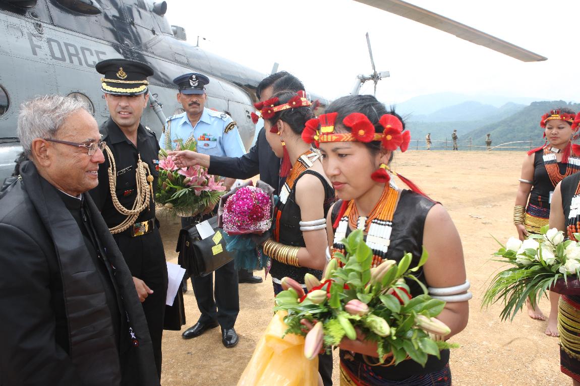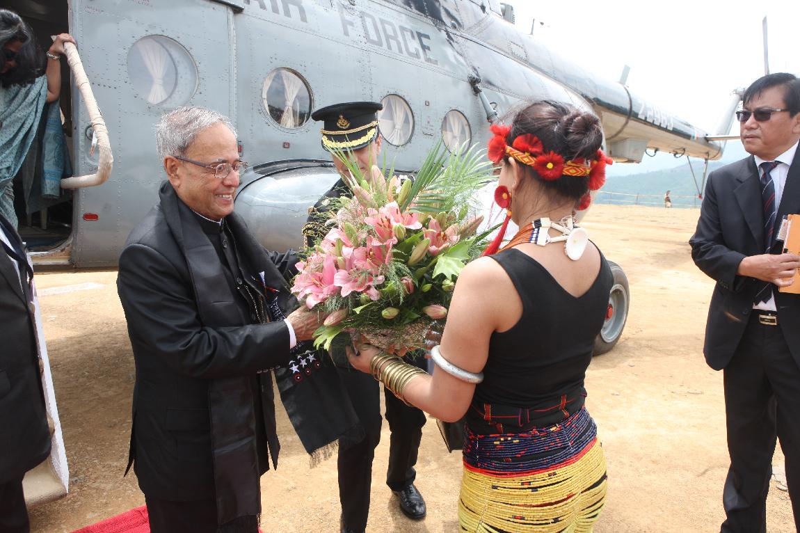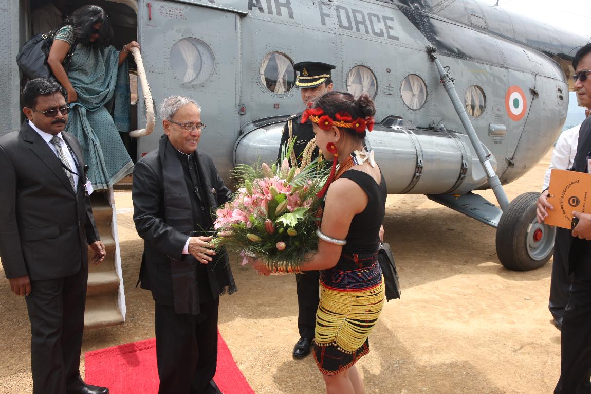 The President of India, Shri Pranab Mukherjee Arrival at Lumami Helipad on 15 May 2013
