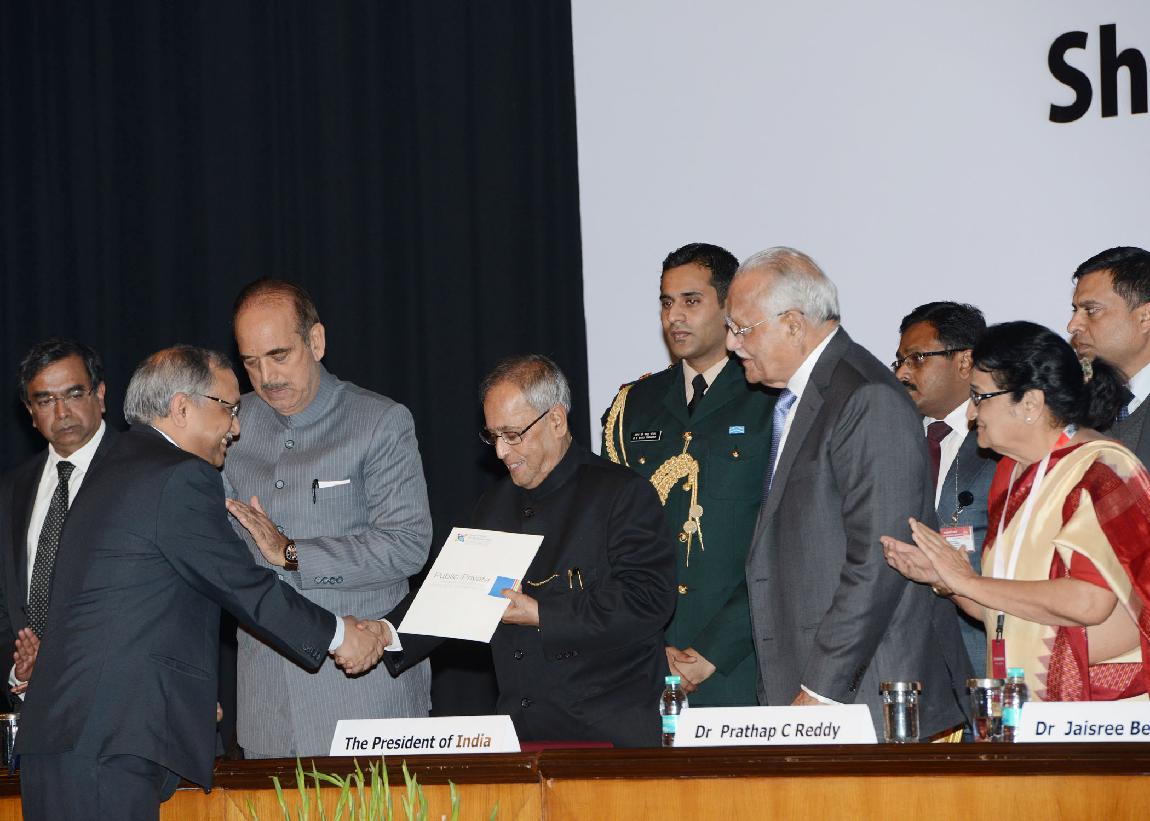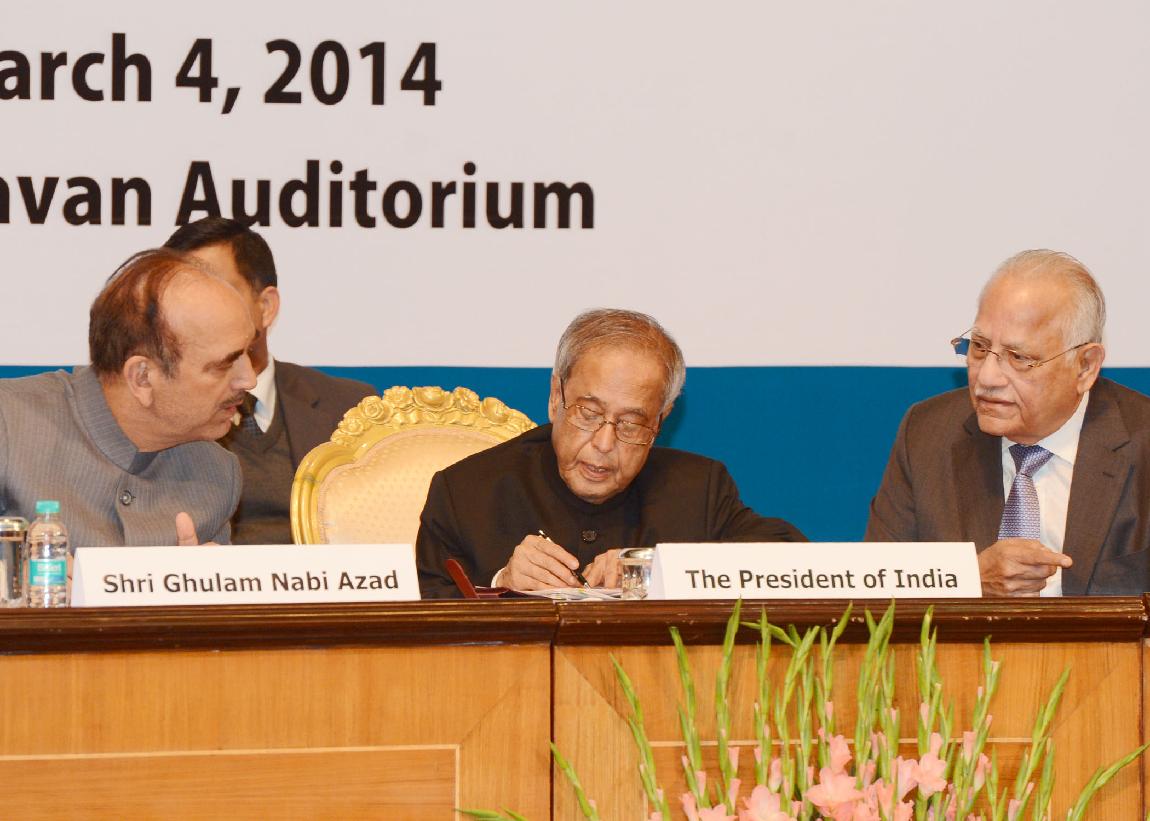 | Caption: | The President of India, Shri Pranab Mukherjee receiving the Recommendations of the Healthcare Alliance at Rashtrapati Bhavan Auditorium in New Delhi on March 04, 2014 |