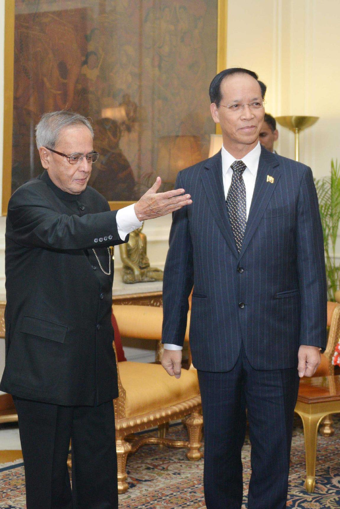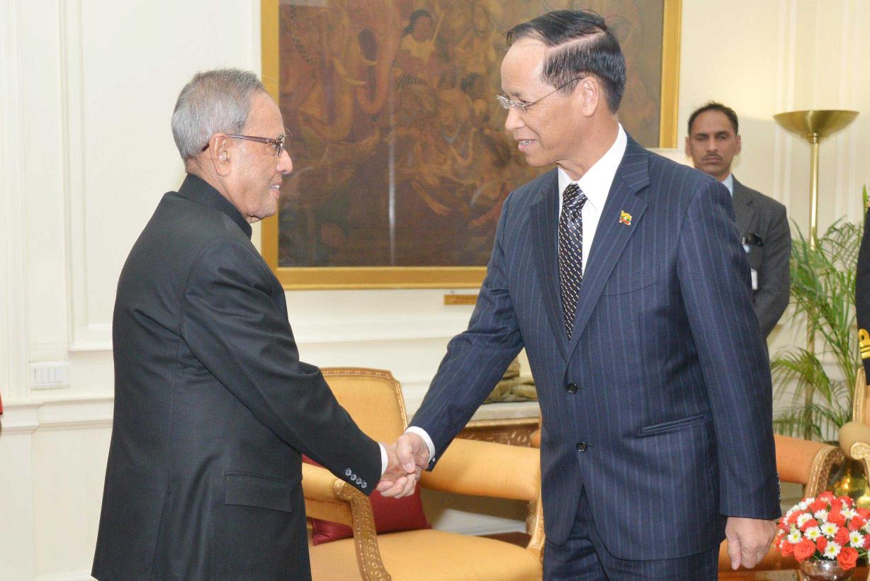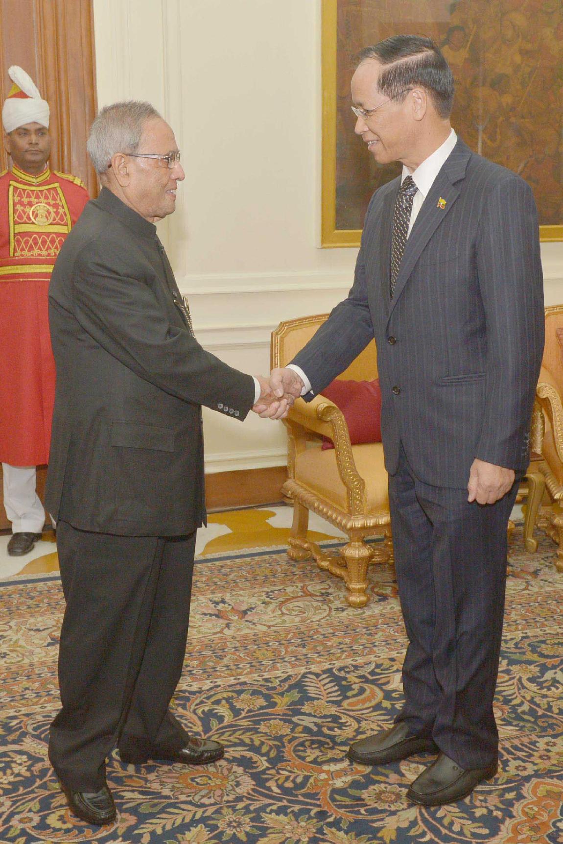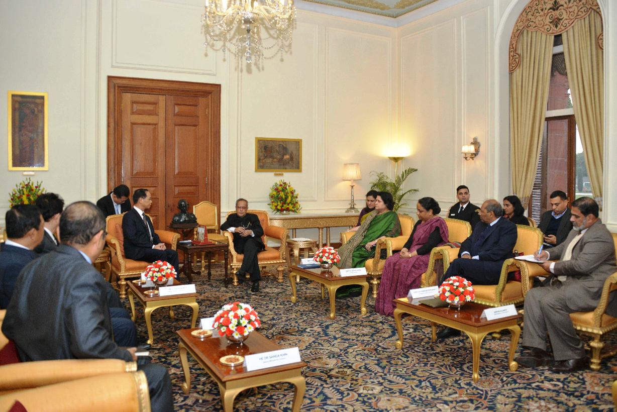 | Caption: | The Vice President of the Republic of the Union of Myanmar, HE Dr Sai Mauk Khan with his delegation calling on the President of India, Shri Pranab Mukherjee, at Rashtrapati Bahavan, in New Delhi on January 21, 2015. |