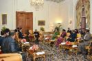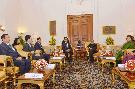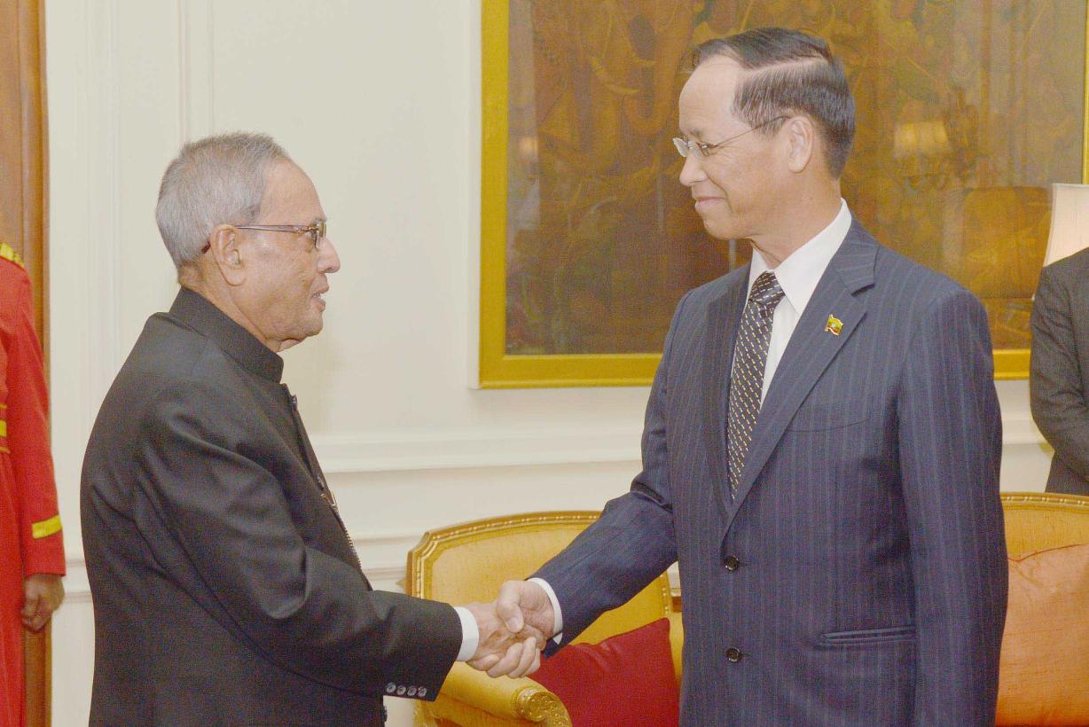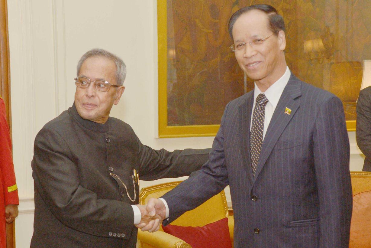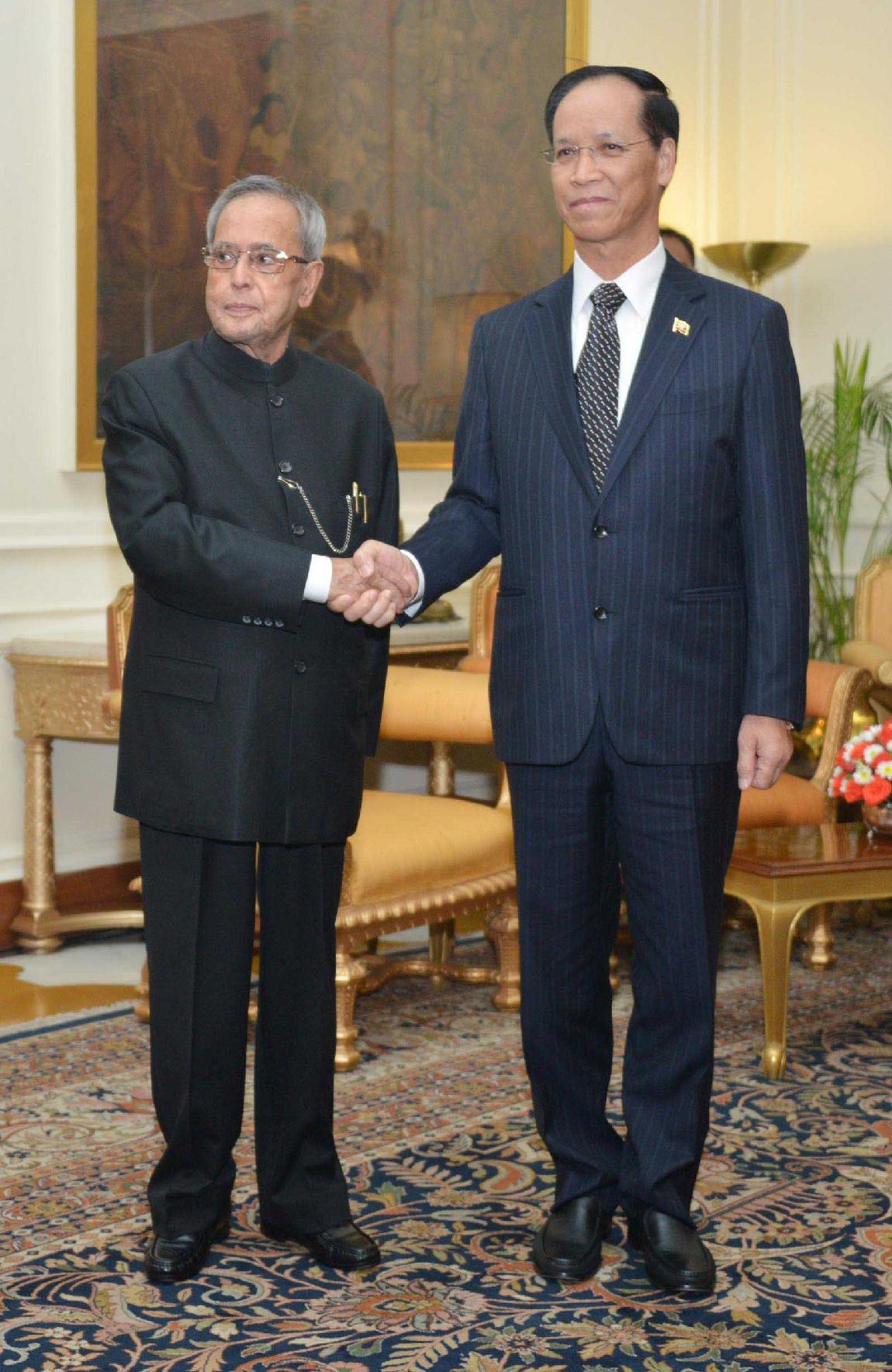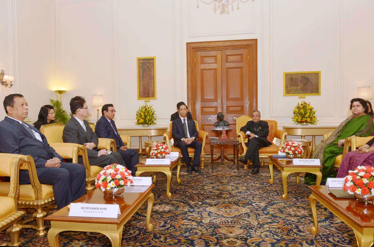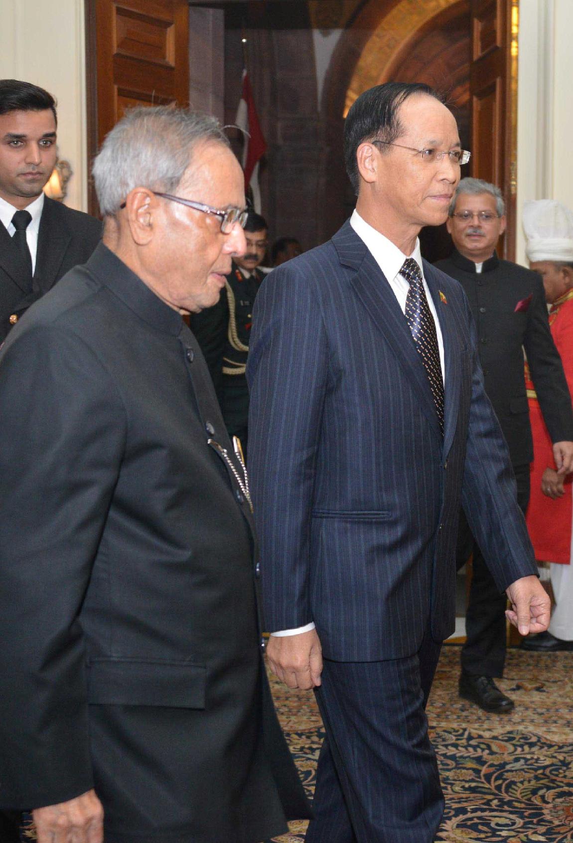 | Caption: | The Vice President of the Republic of the Union of Myanmar, HE Dr Sai Mauk Khan with his delegation calling on the President of India, Shri Pranab Mukherjee, at Rashtrapati Bahavan, in New Delhi on January 21, 2015. |