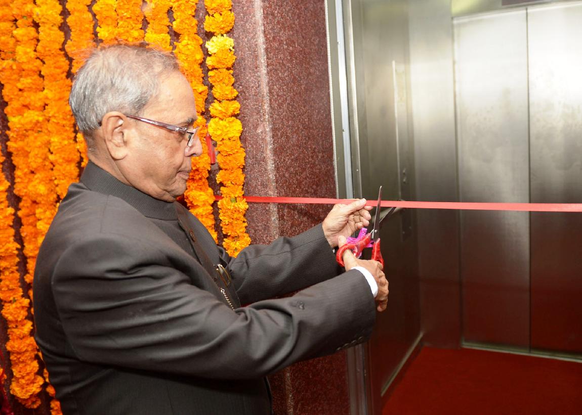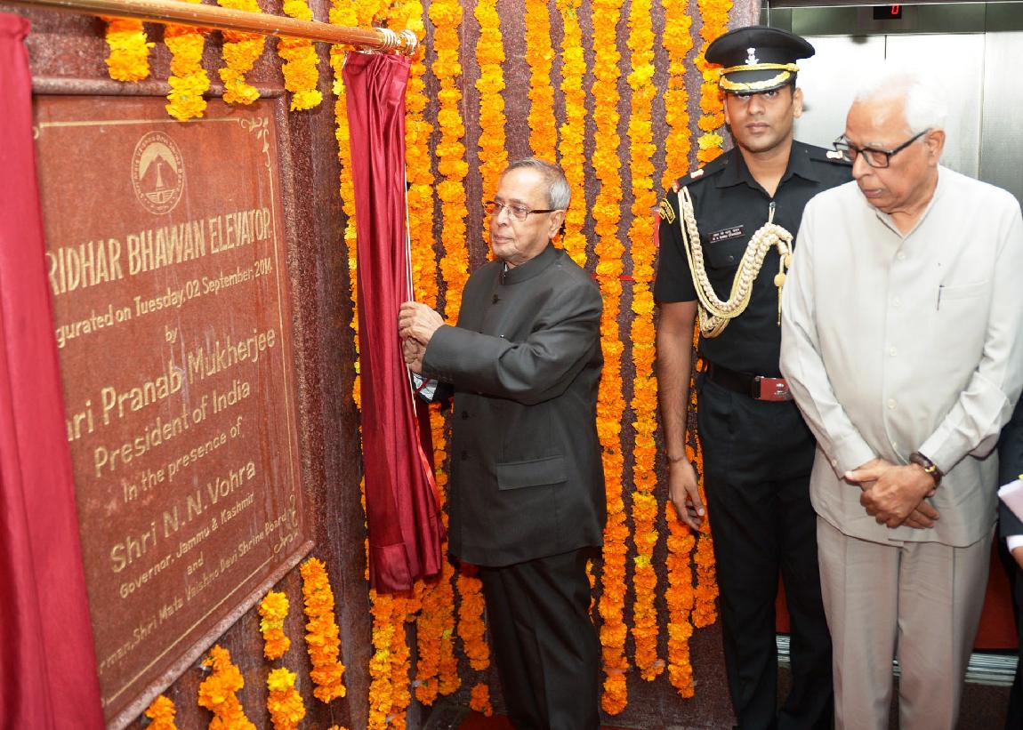 | Caption: | The President of India, Shri Pranab Mukherjee inaugurating the Shridhar Bhawan Elevator at Mata Vaishno Devi Shrine in Jammu & Kashmir on Sep 02, 2014 |