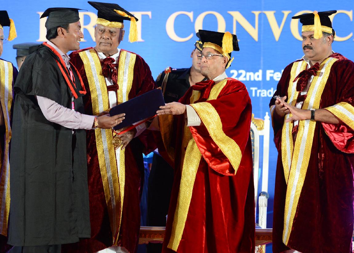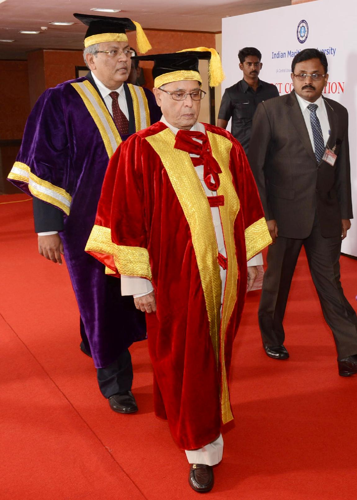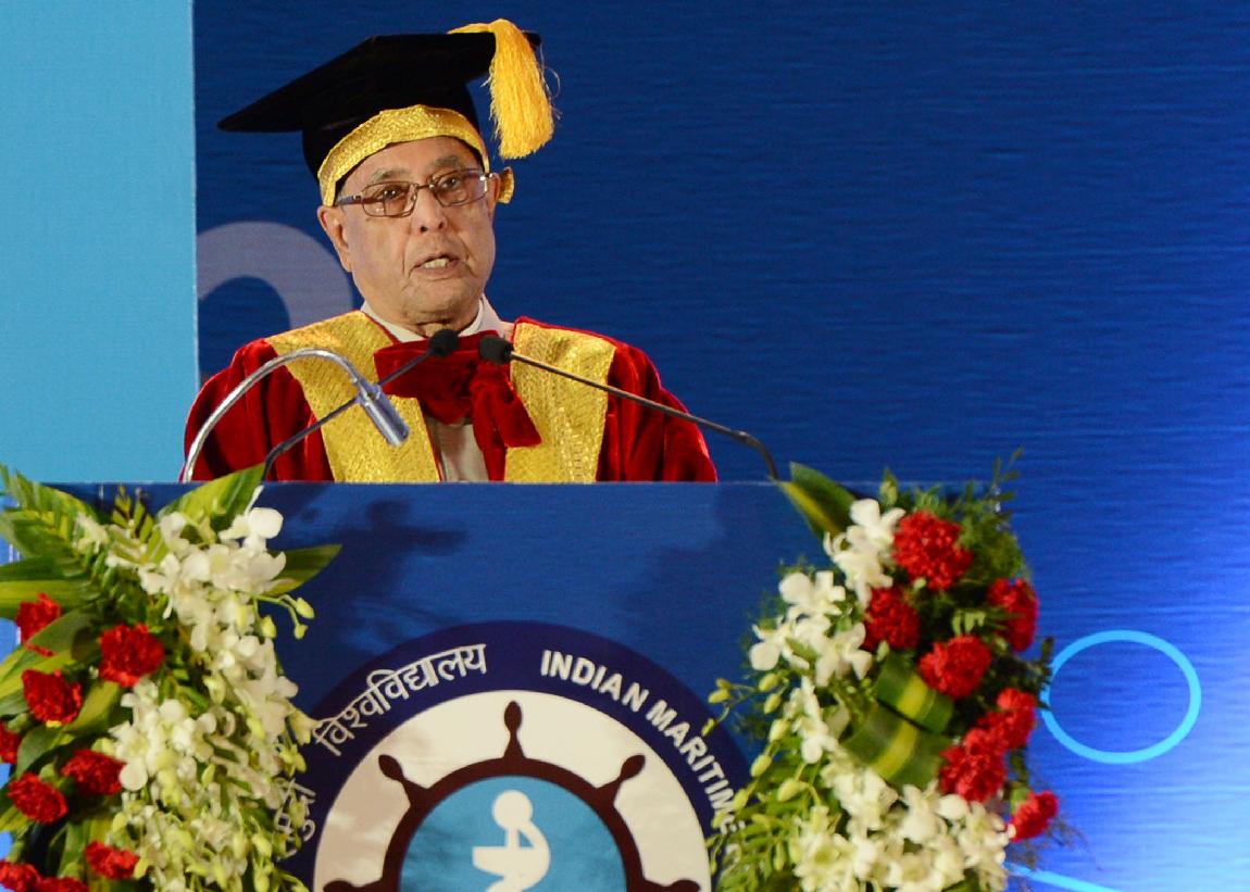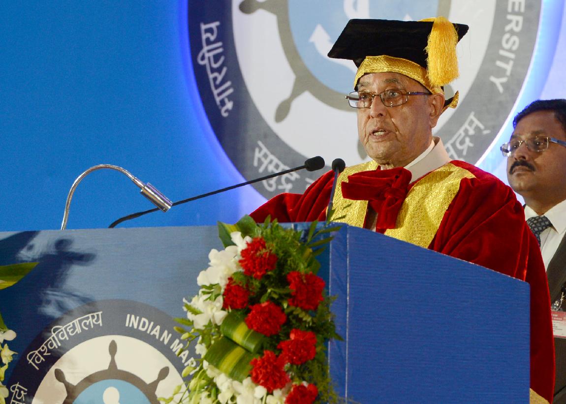 | Caption: | The President of India, Shri Pranab Mukherjee during the First Convocation of Indian Maritime University at Chennai Trade Centre at Chennai in Tamil Nadu on Feb 22, 2014 |