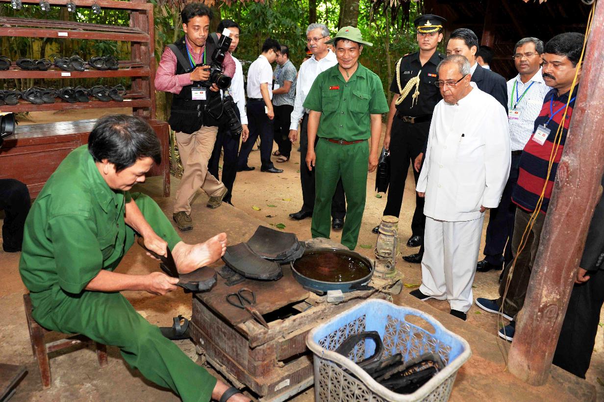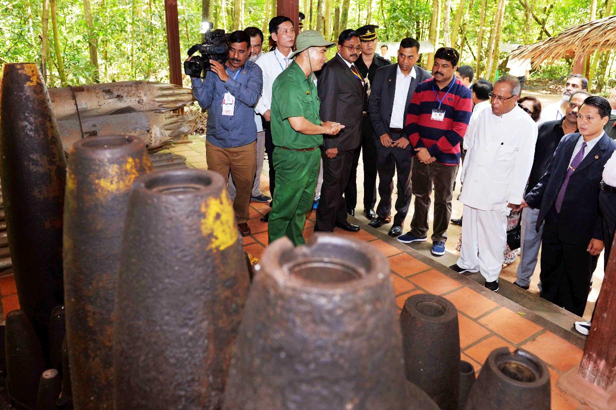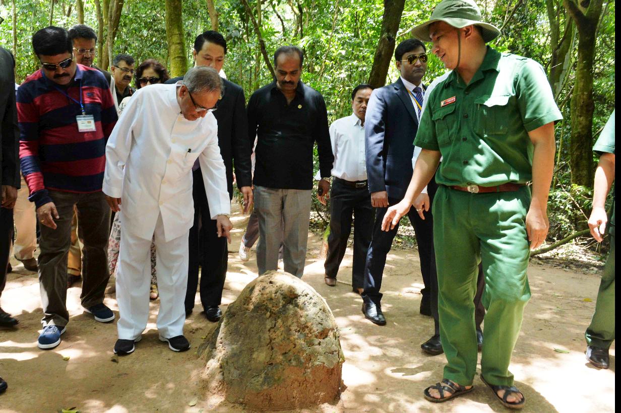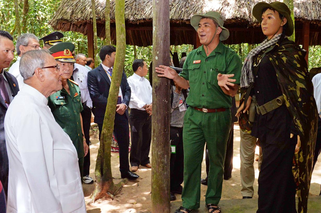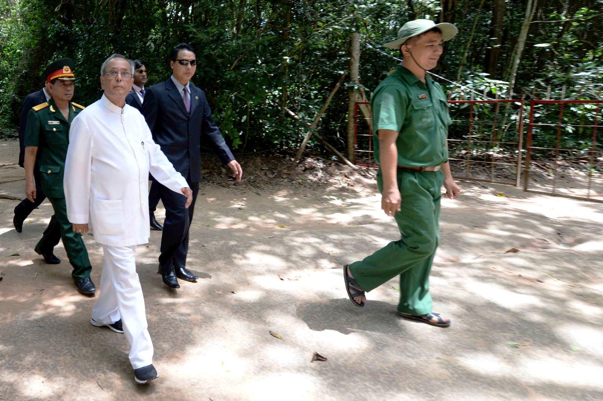 | Caption: | The President of India, Shri Pranab Mukherjee visiting the Cu Chi Tunnels in Vietnam on Sep 17, 2014 |