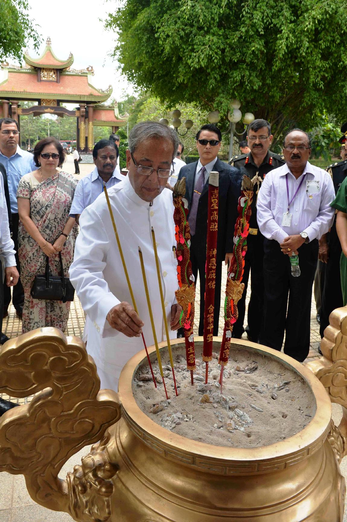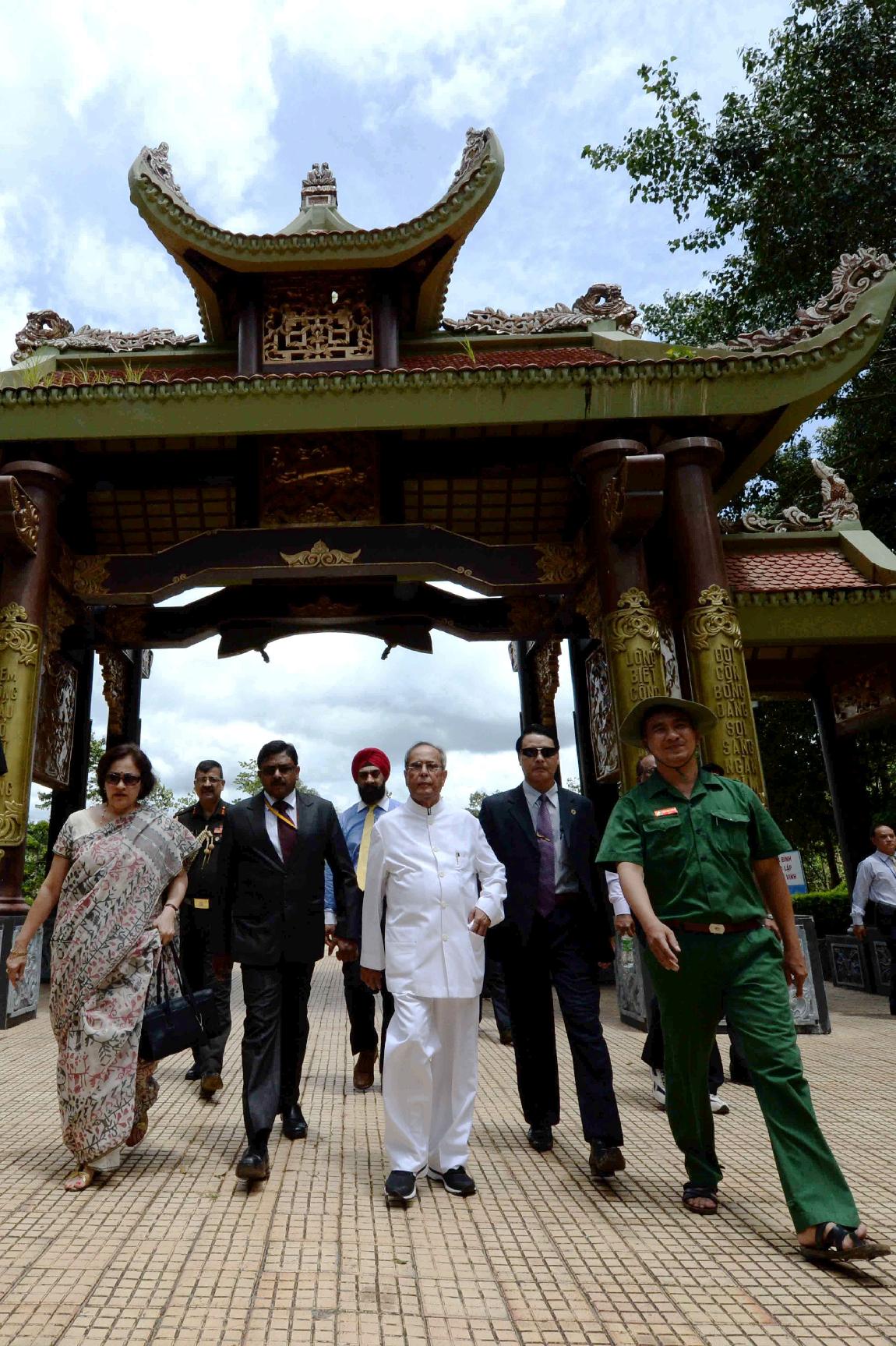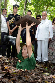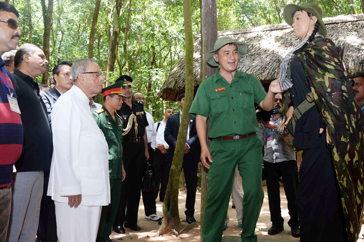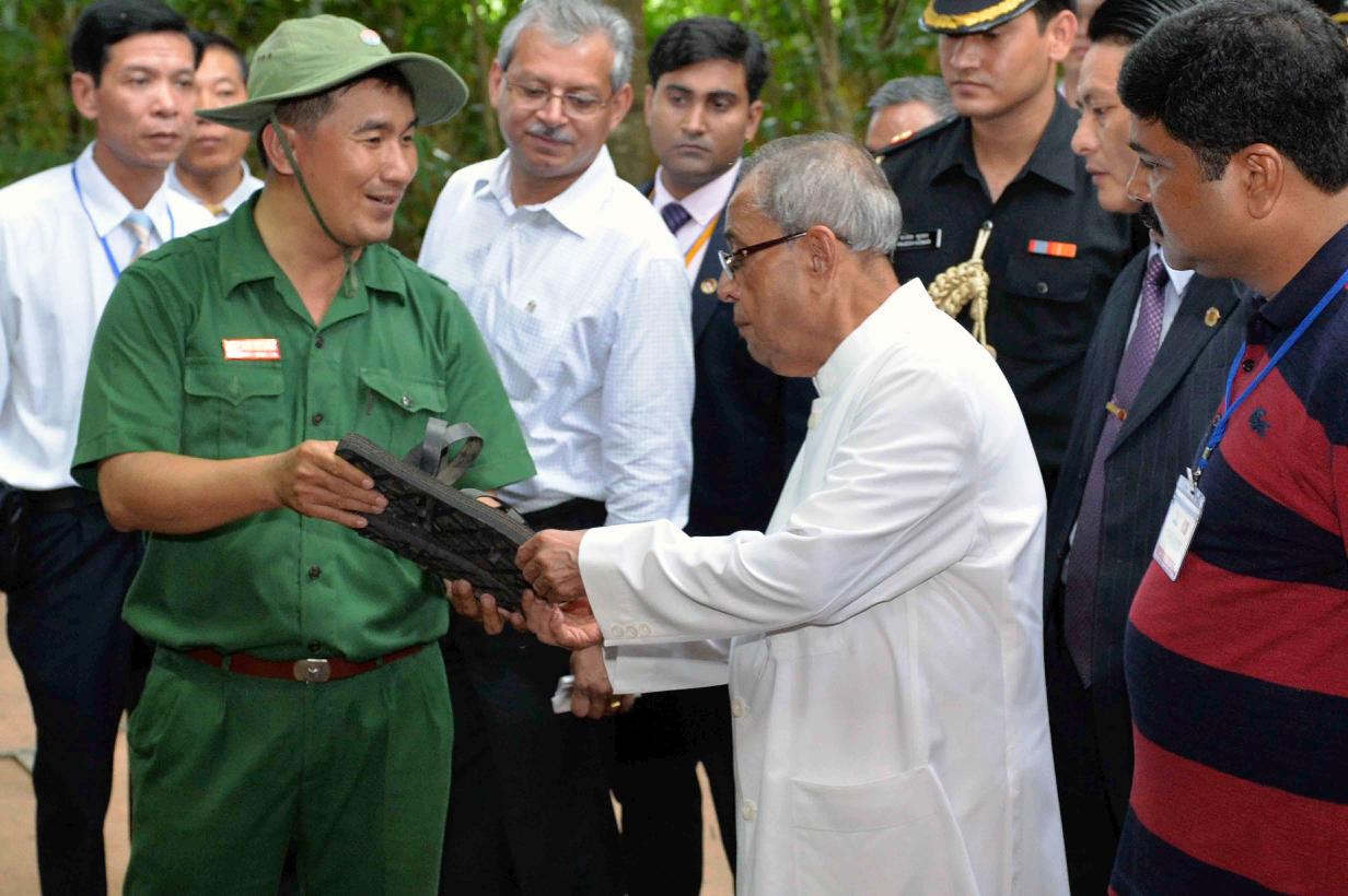 | Caption: | The President of India, Shri Pranab Mukherjee visiting the Cu Chi Tunnels in Vietnam on Sep 17, 2014 |