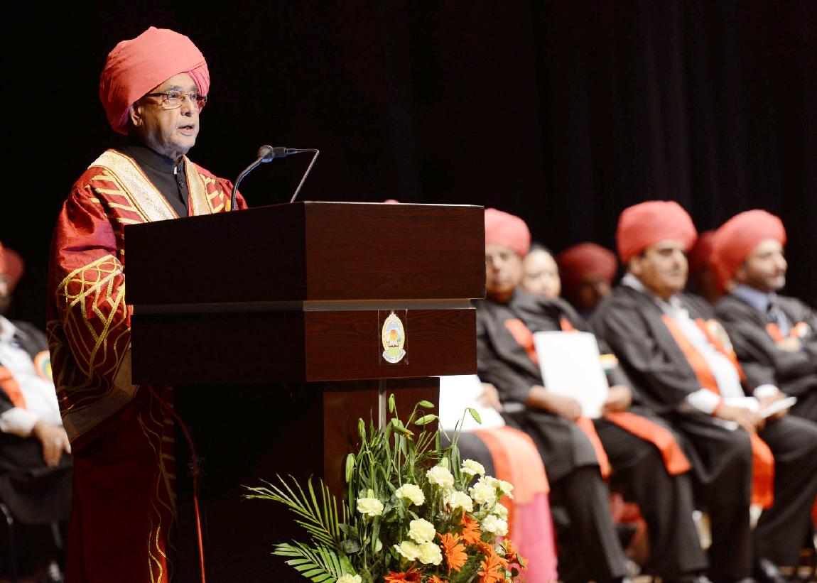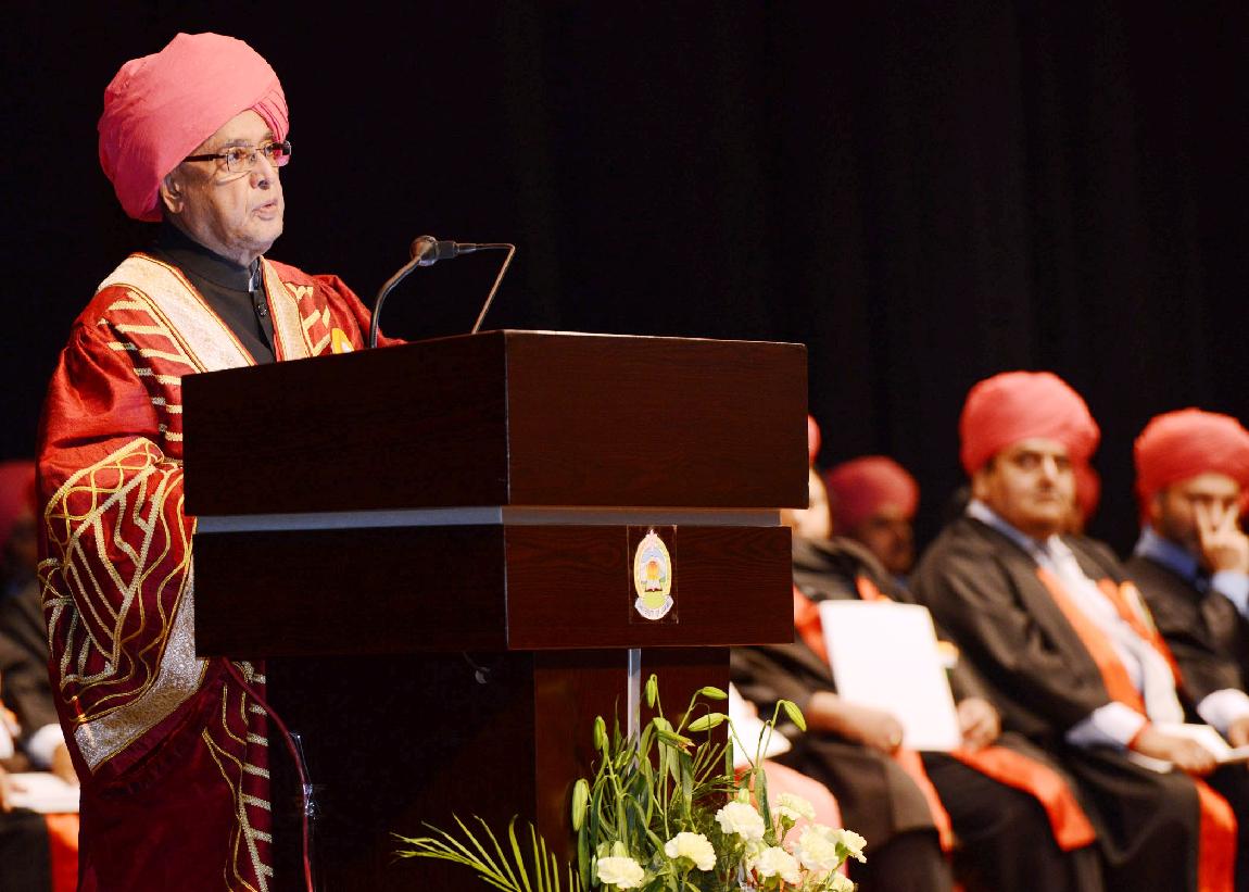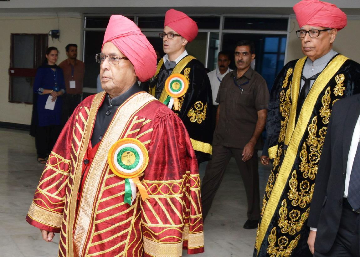 | Caption: | The President of India, Shri Pranab Mukherjee at the 14th Convocation of the University of Jammu at Srinagar in Jammu & Kashmir on Sep 01, 2014 |