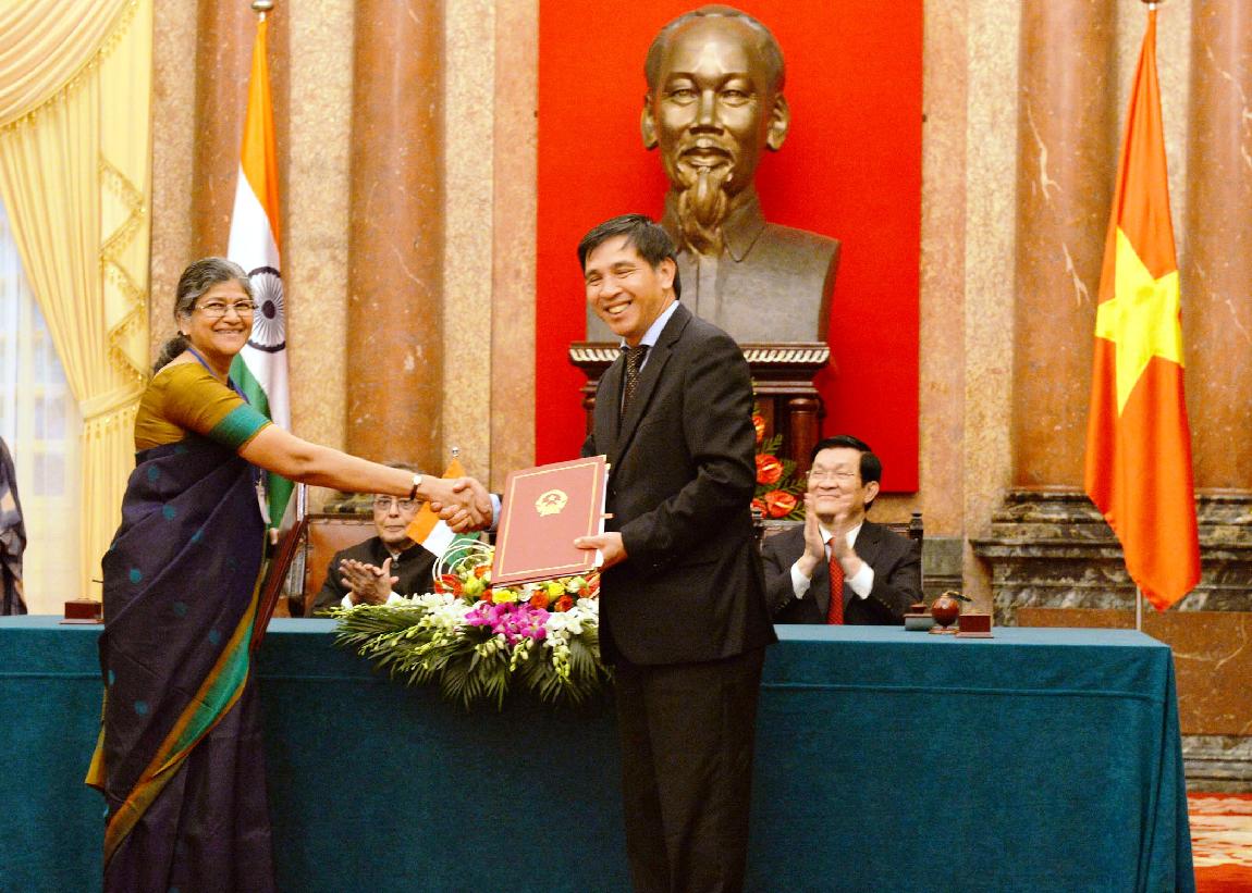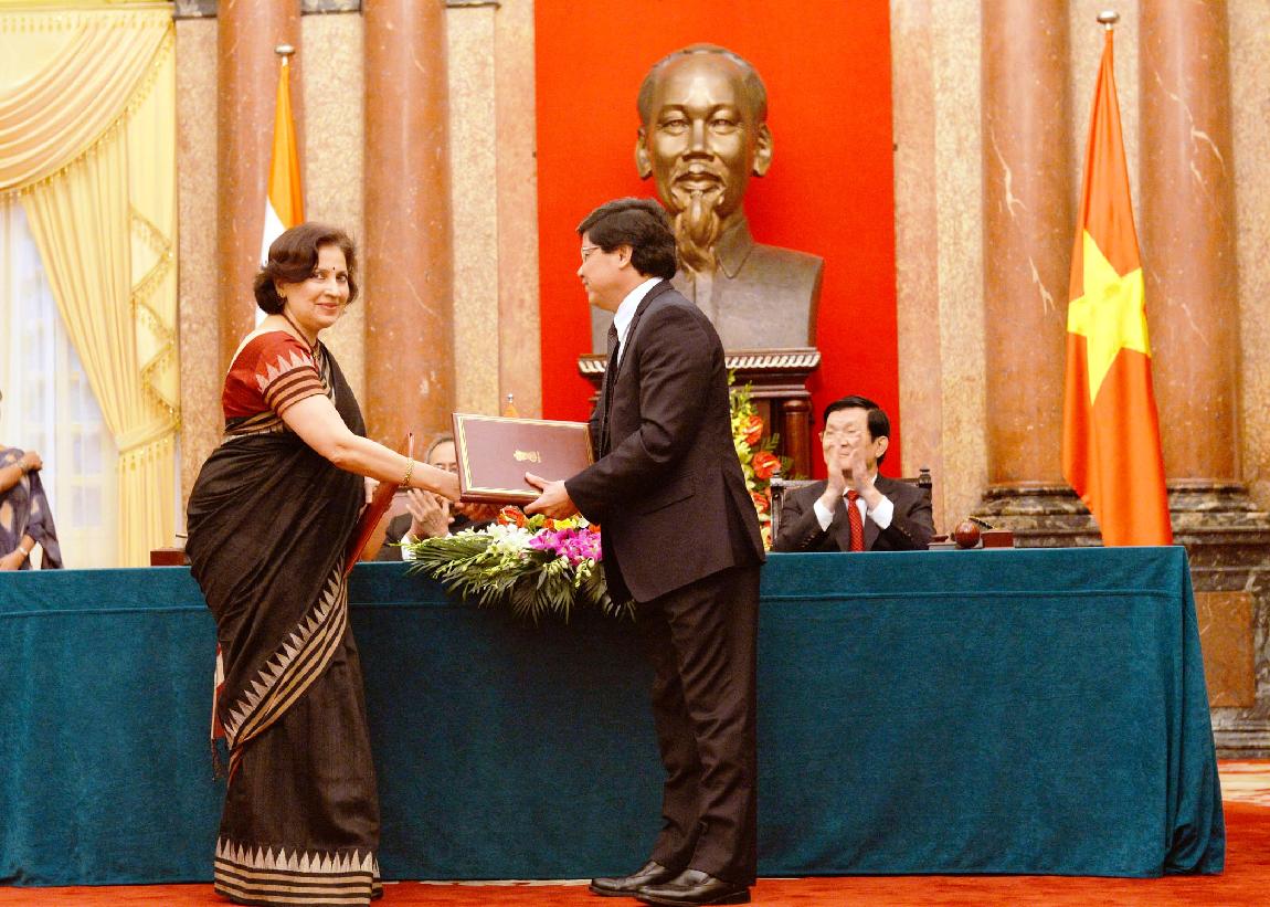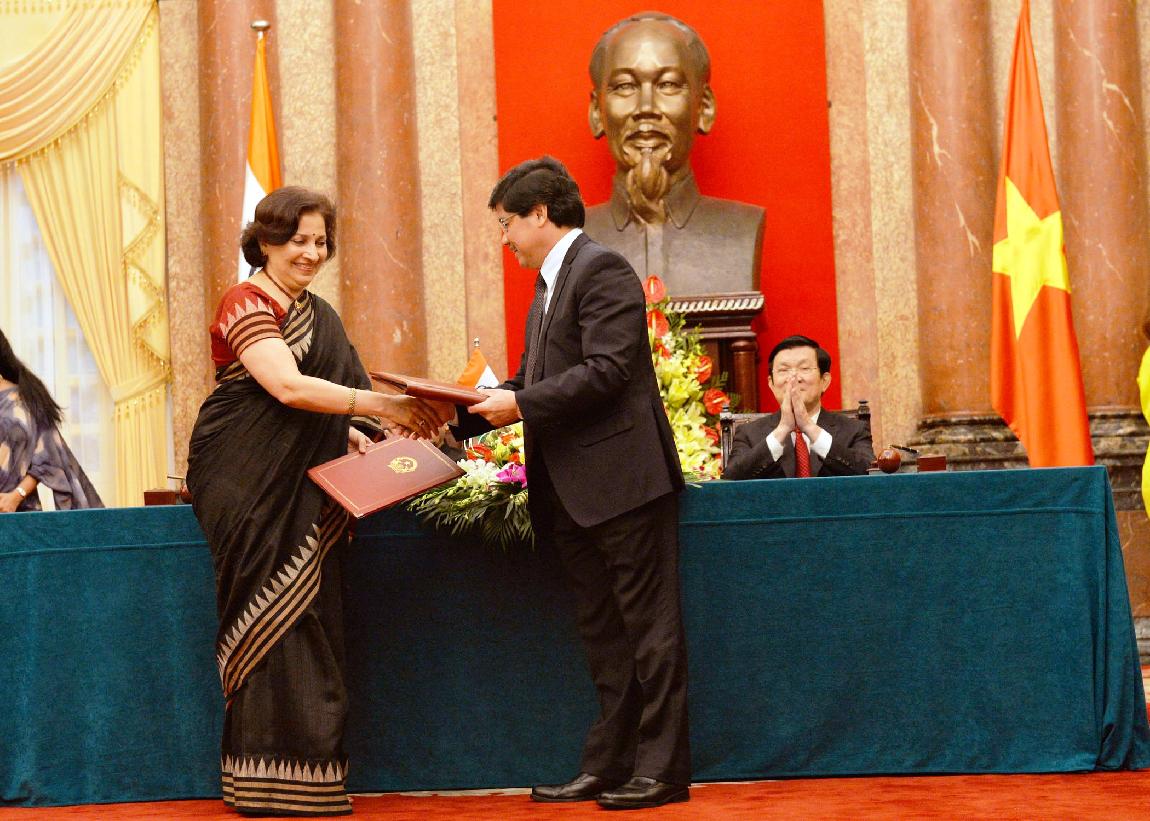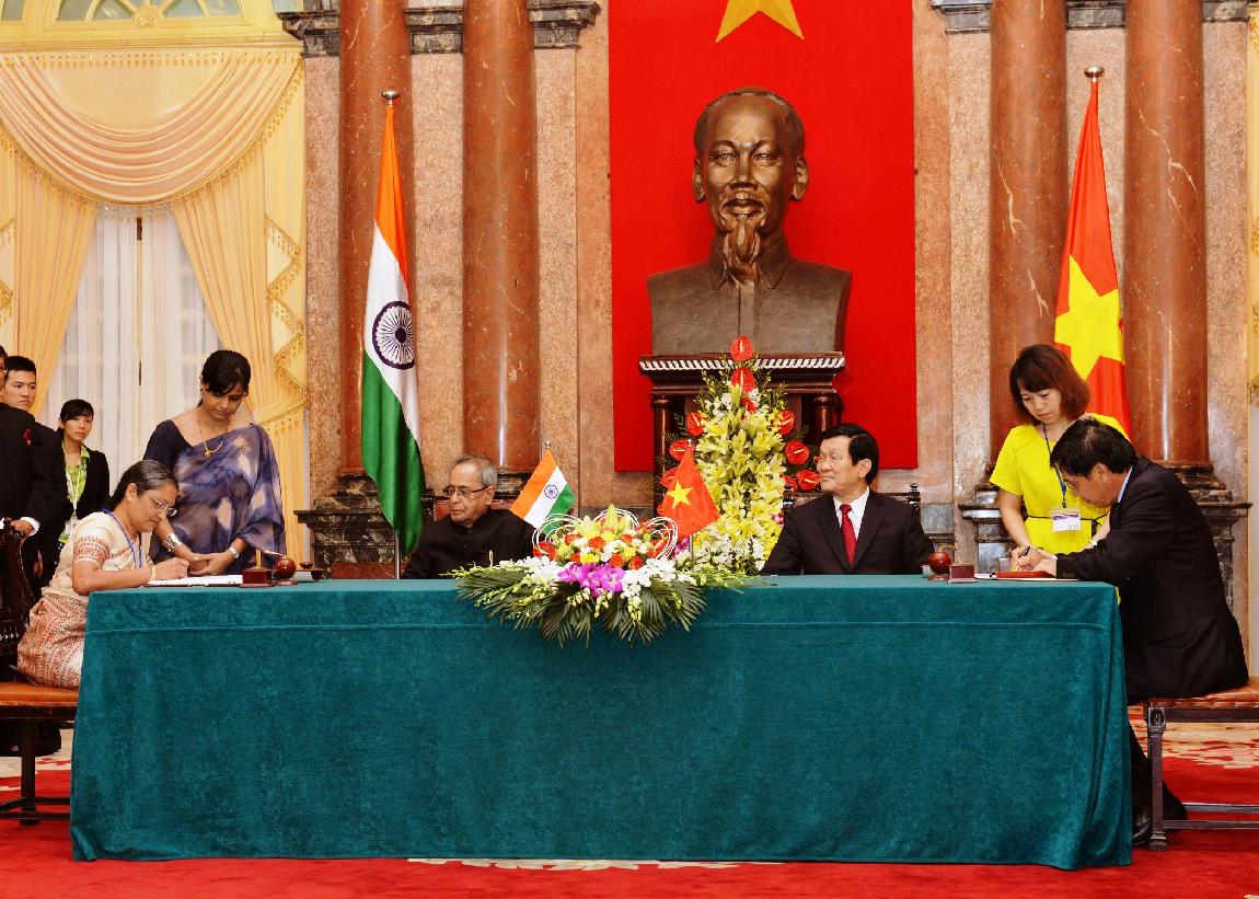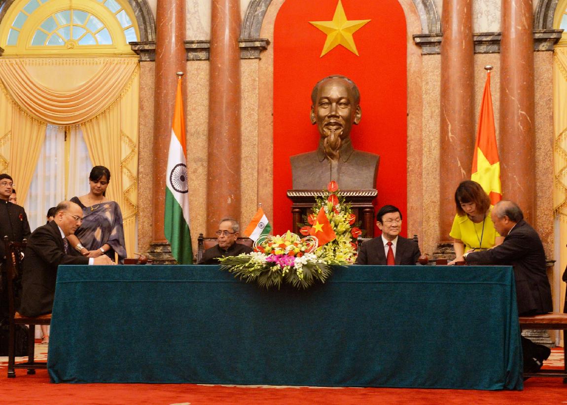 | Caption: | The President of India, Shri Pranab Mukherjee doing the Signing of Agreements during his visit to the Socialist Republic of Vietnam at Presidential Palace at Hanoi in Vietnam on Sep 15, 2014 |