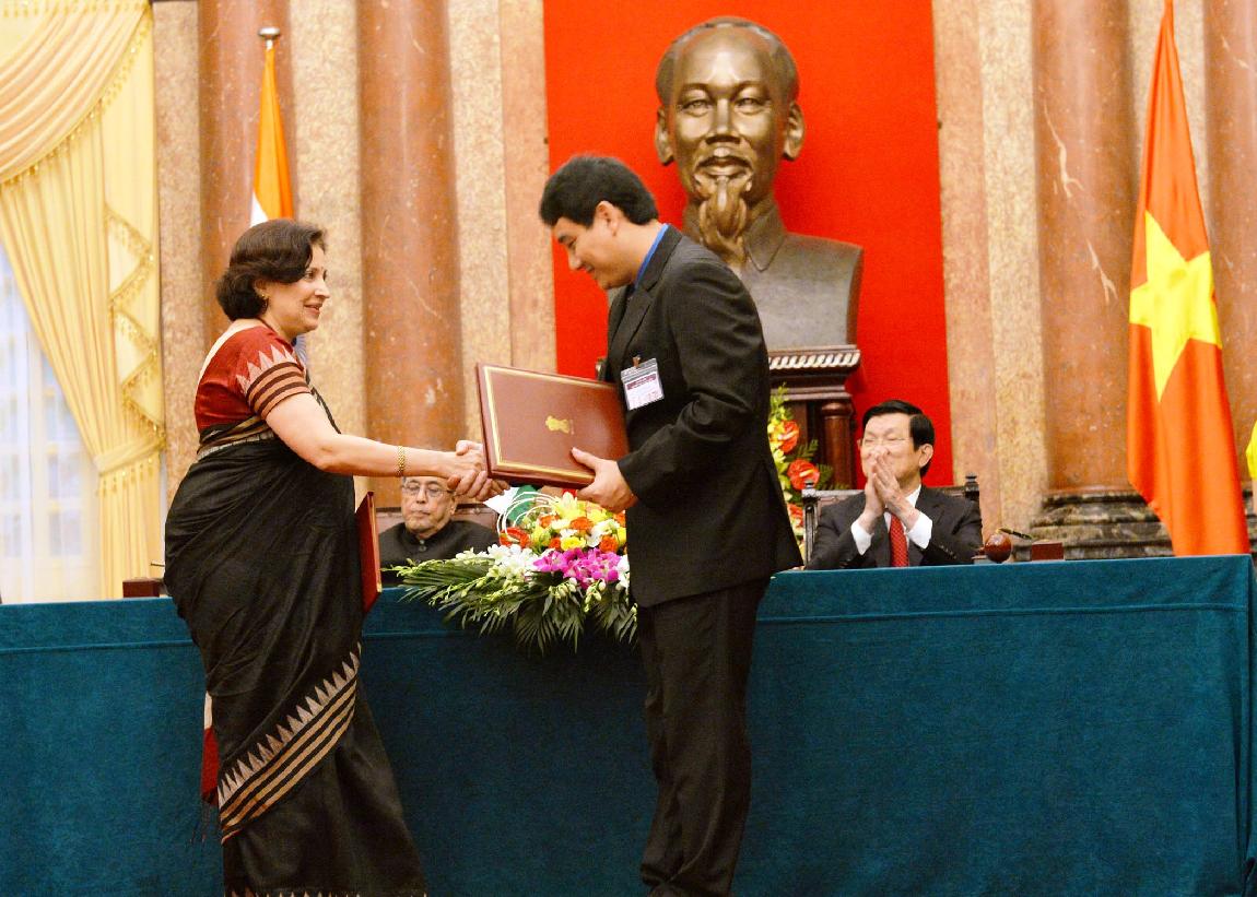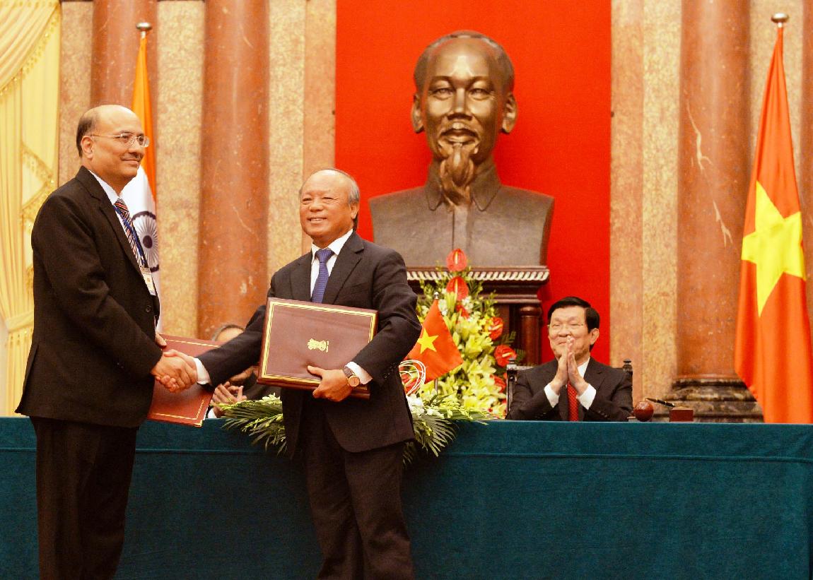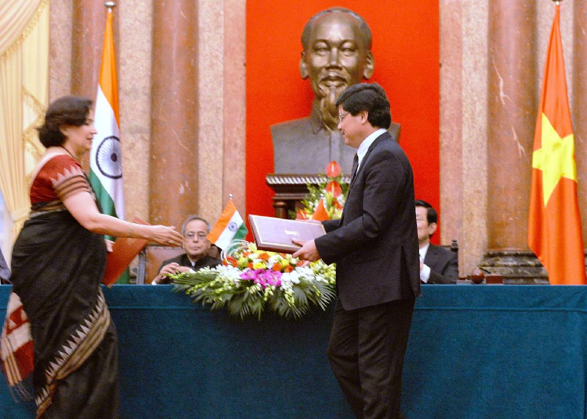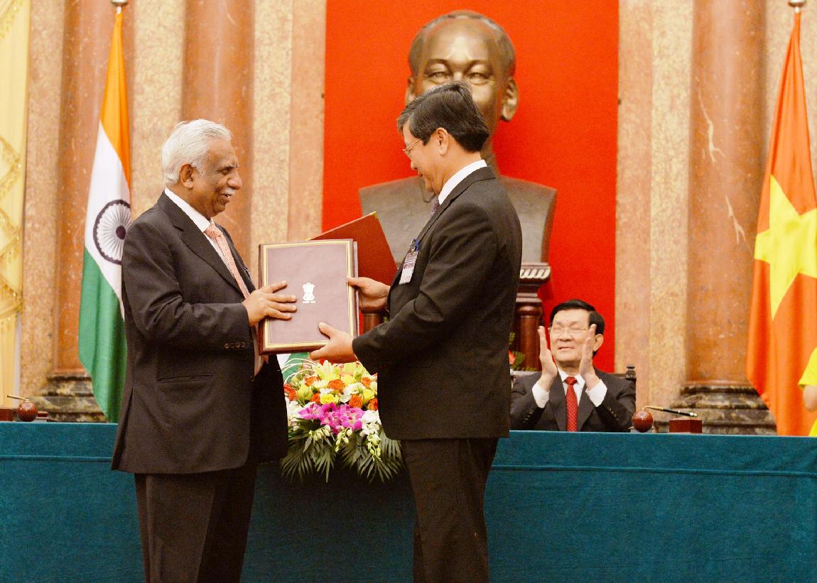 | Caption: | The President of India, Shri Pranab Mukherjee doing the Signing of Agreements during his visit to the Socialist Republic of Vietnam at Presidential Palace at Hanoi in Vietnam on Sep 15, 2014 |