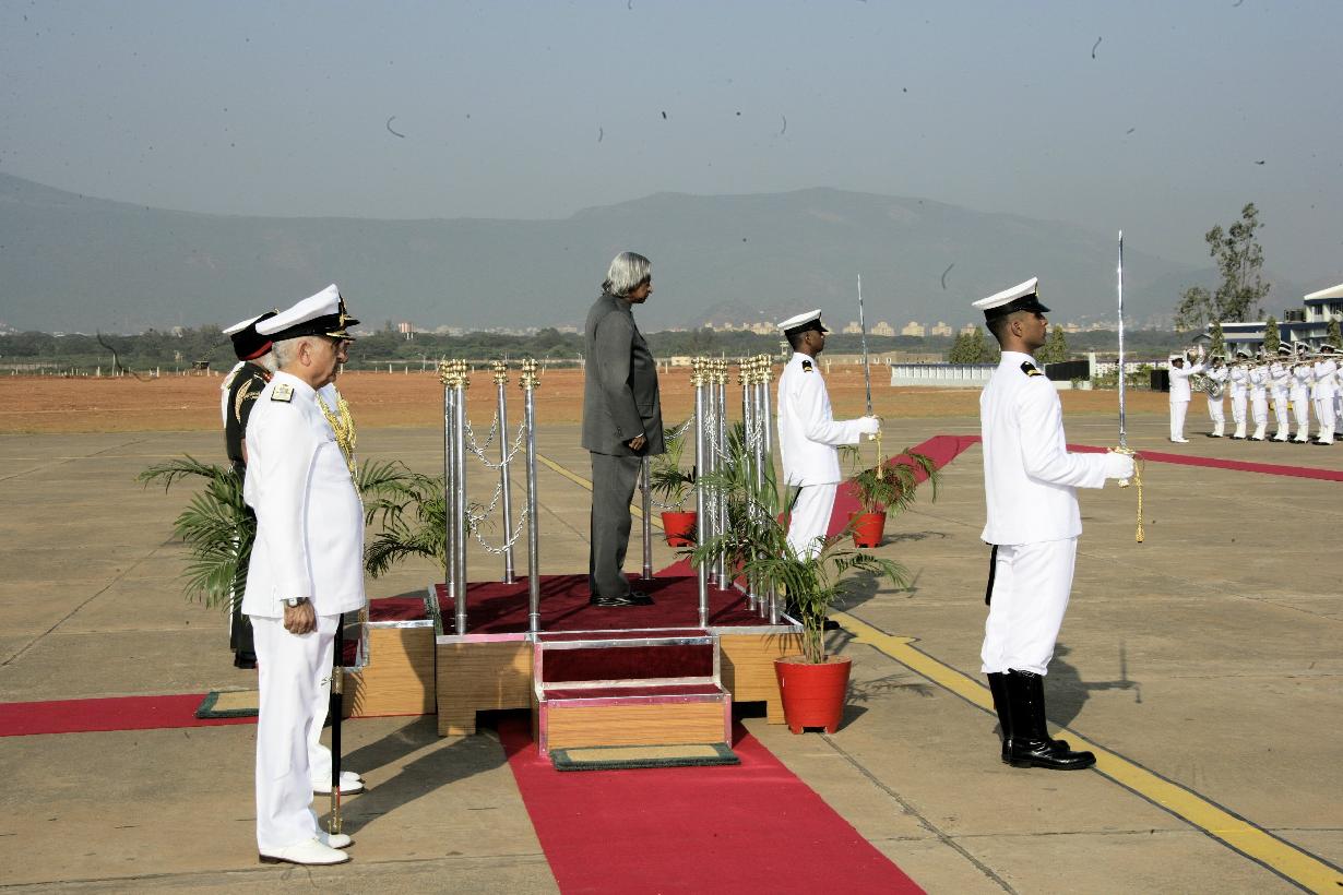 | Caption: | The President of India, Dr A P J Abdul Kalam inspecting the Guard of Honour at Visakhapatnam in Andhra Pradesh on Feb 11, 2006 |
