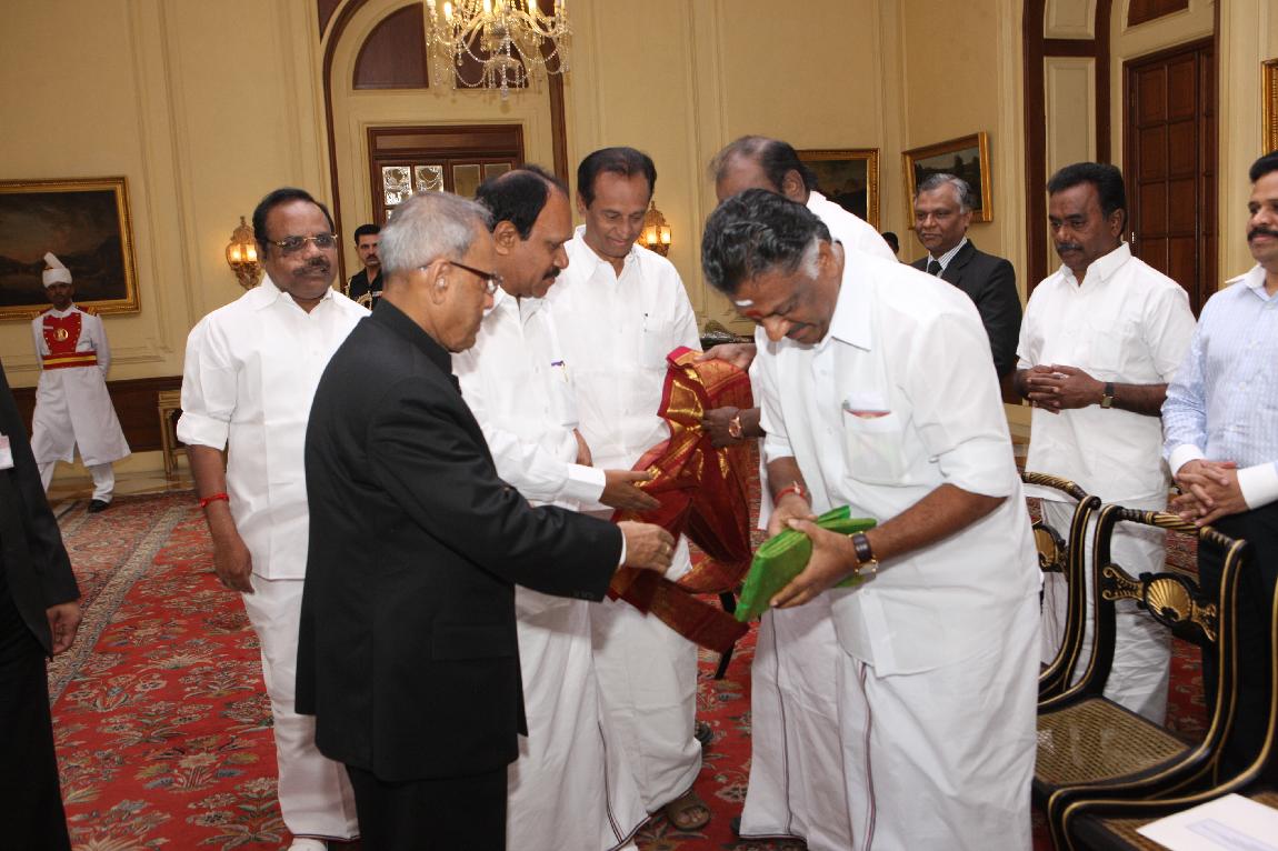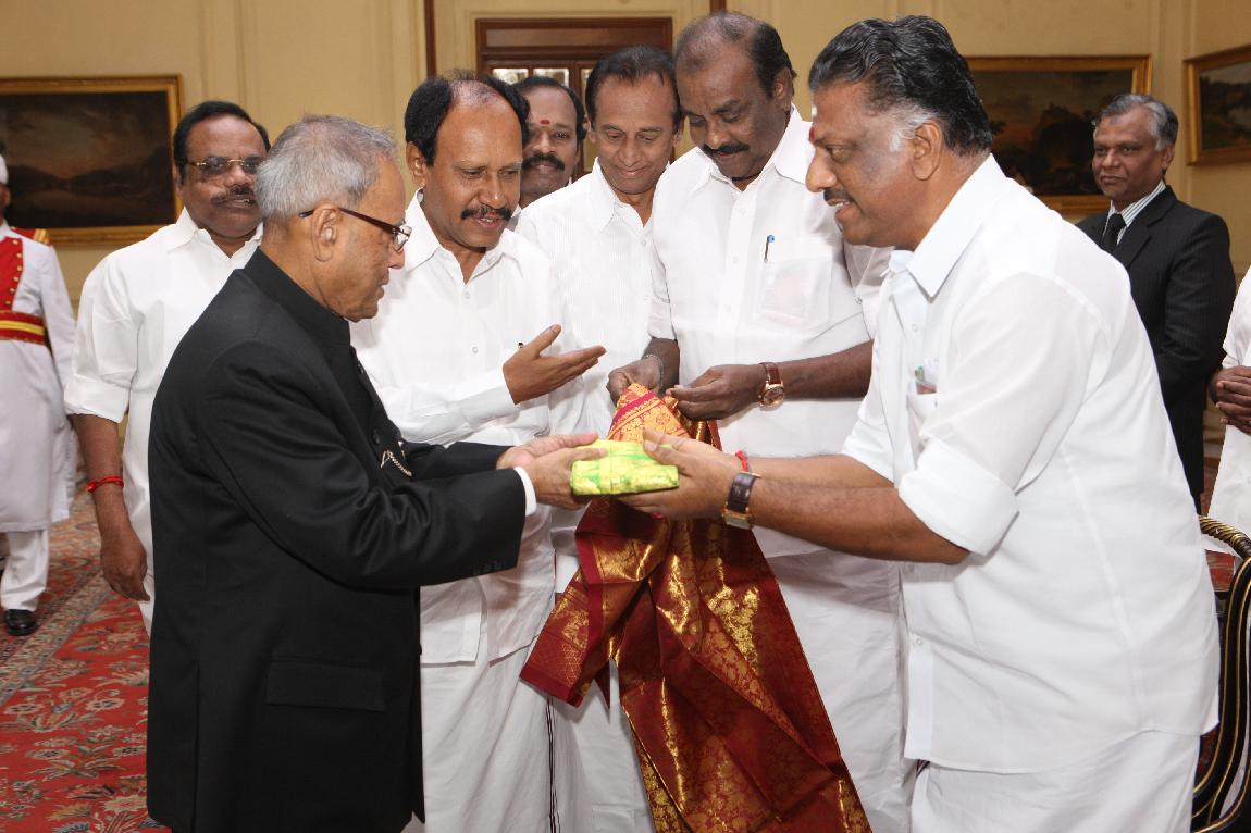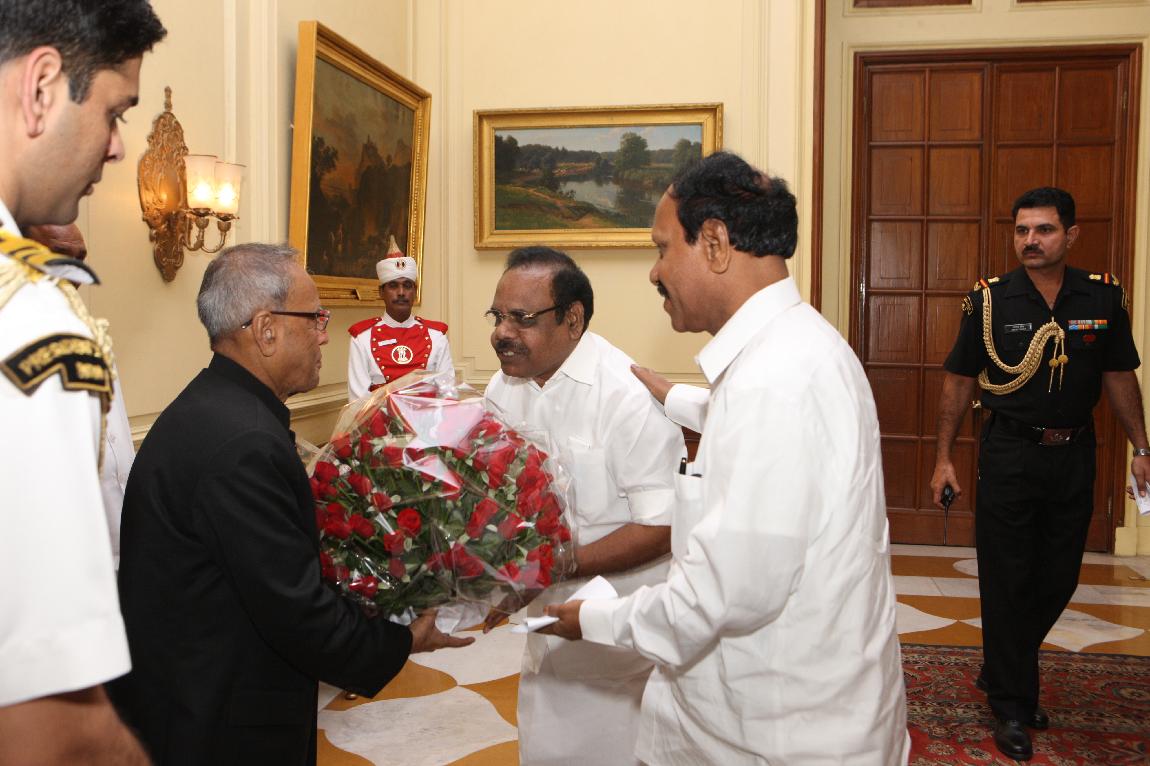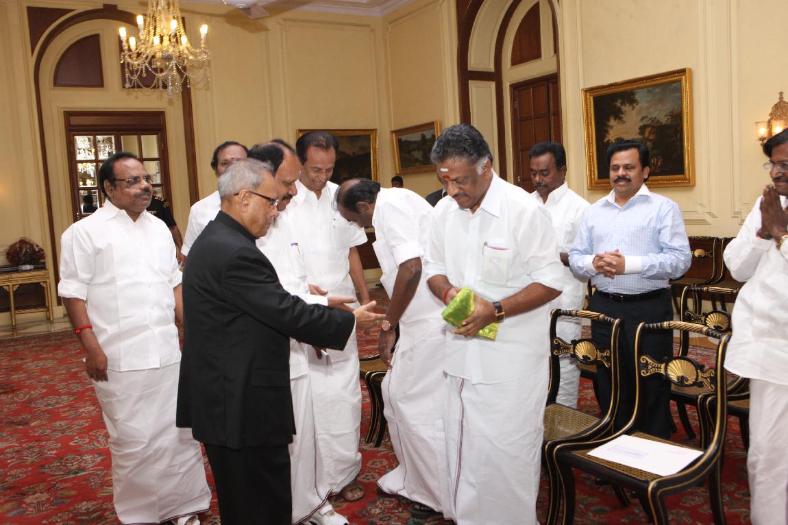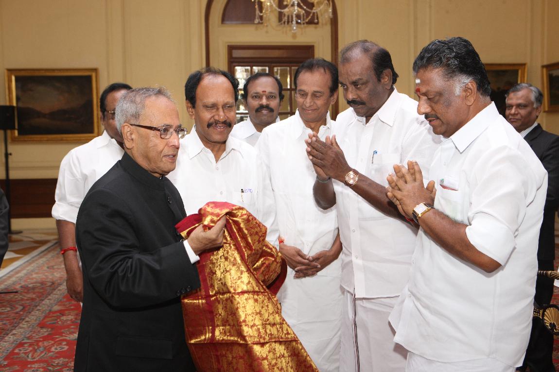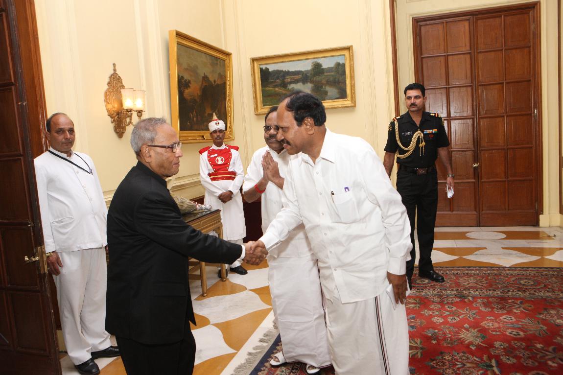 | Caption: | The President of India, Shri Pranab Mukherjee With Shri P Dhanpal Speaker, Tamil Nadu Legislative Assembly Along with a Delegation of Ministers and MPs from Tamil Nadu on October 26, 2012 |