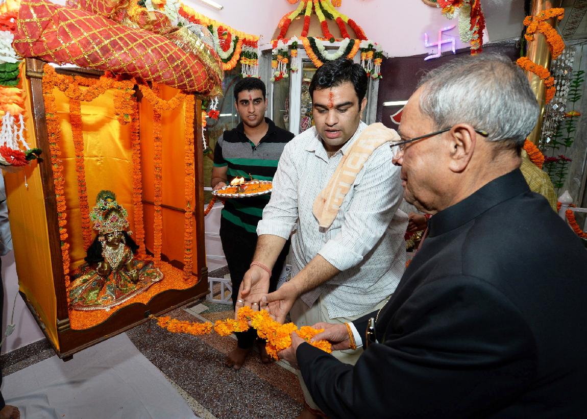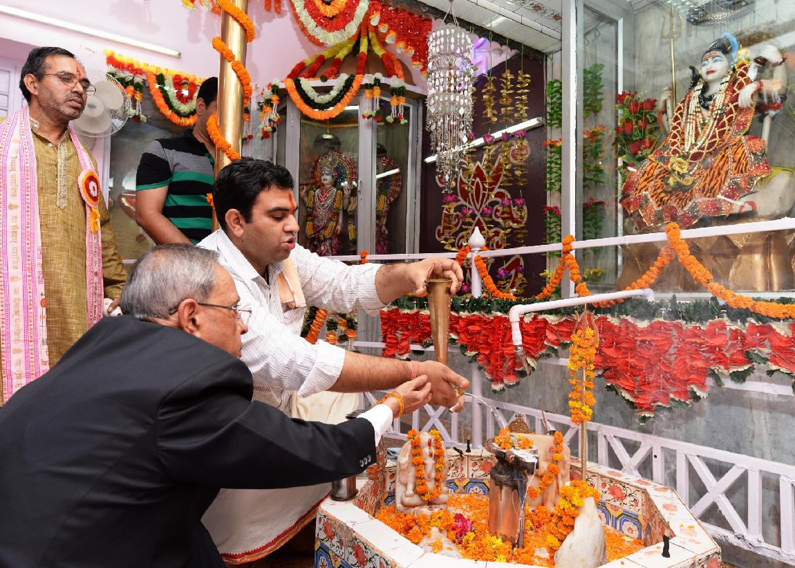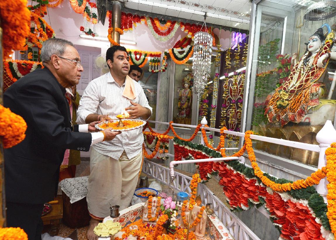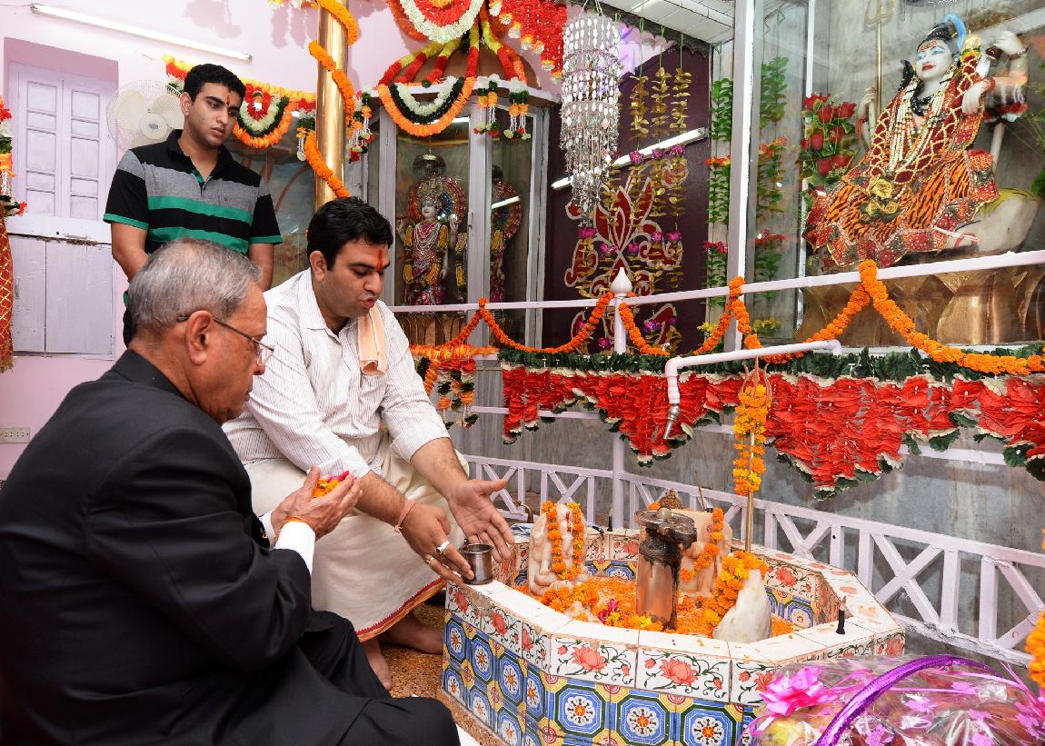 | Caption: | The President of India, Shri Pranab Mukherjee visiting at Shiv Mandir on the occasion of Janamashtami at President's Estate in New Delhi on August 18, 2014 |