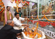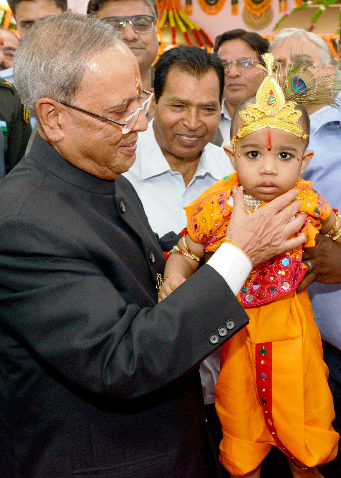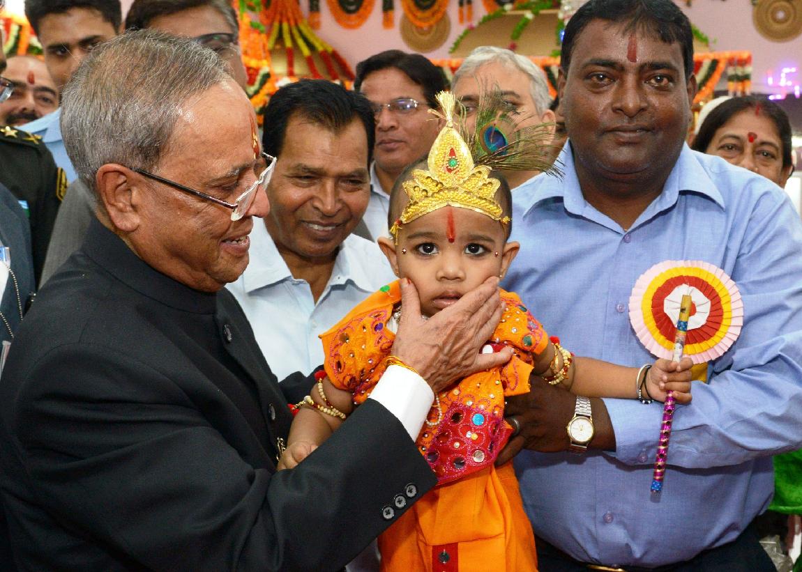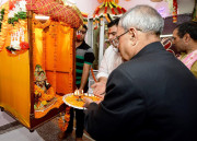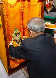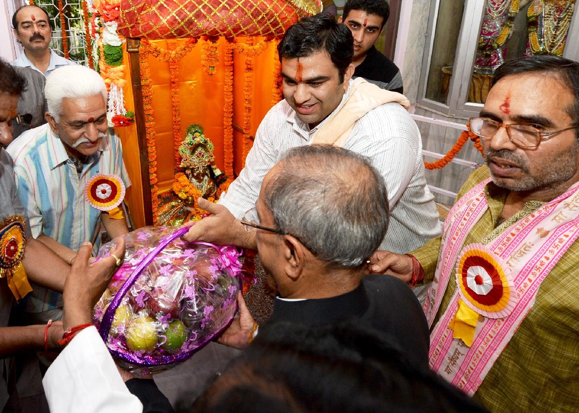| Caption: | The President of India, Shri Pranab Mukherjee visiting at Shiv Mandir on the occasion of Janamashtami at President's Estate in New Delhi on August 18, 2014 |