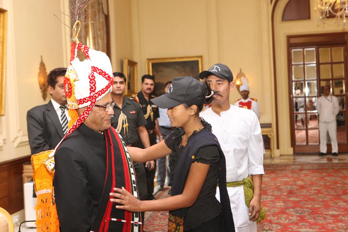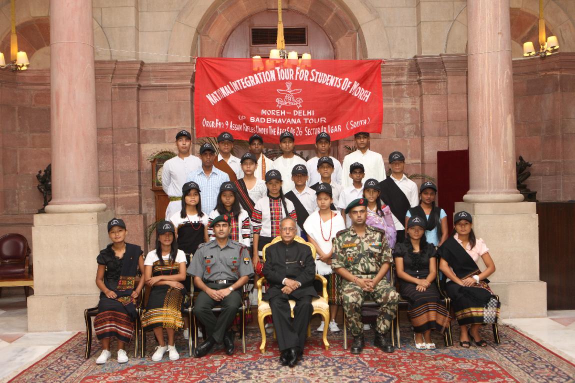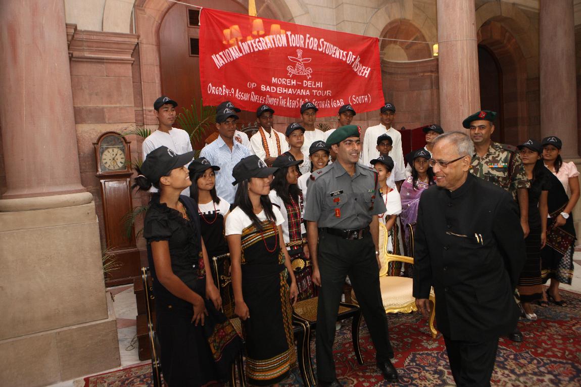 | Caption: | The President of India, Shri Pranab Mukherjee Attending National Integration Tour Organized By the 9 Assam Rifles with Students from Moreh, Chandel District, Manipur on October 26, 2012 |