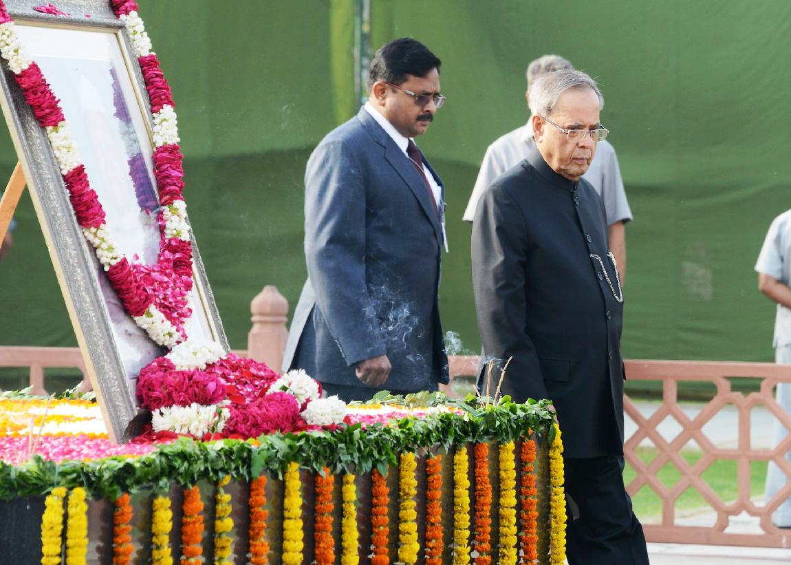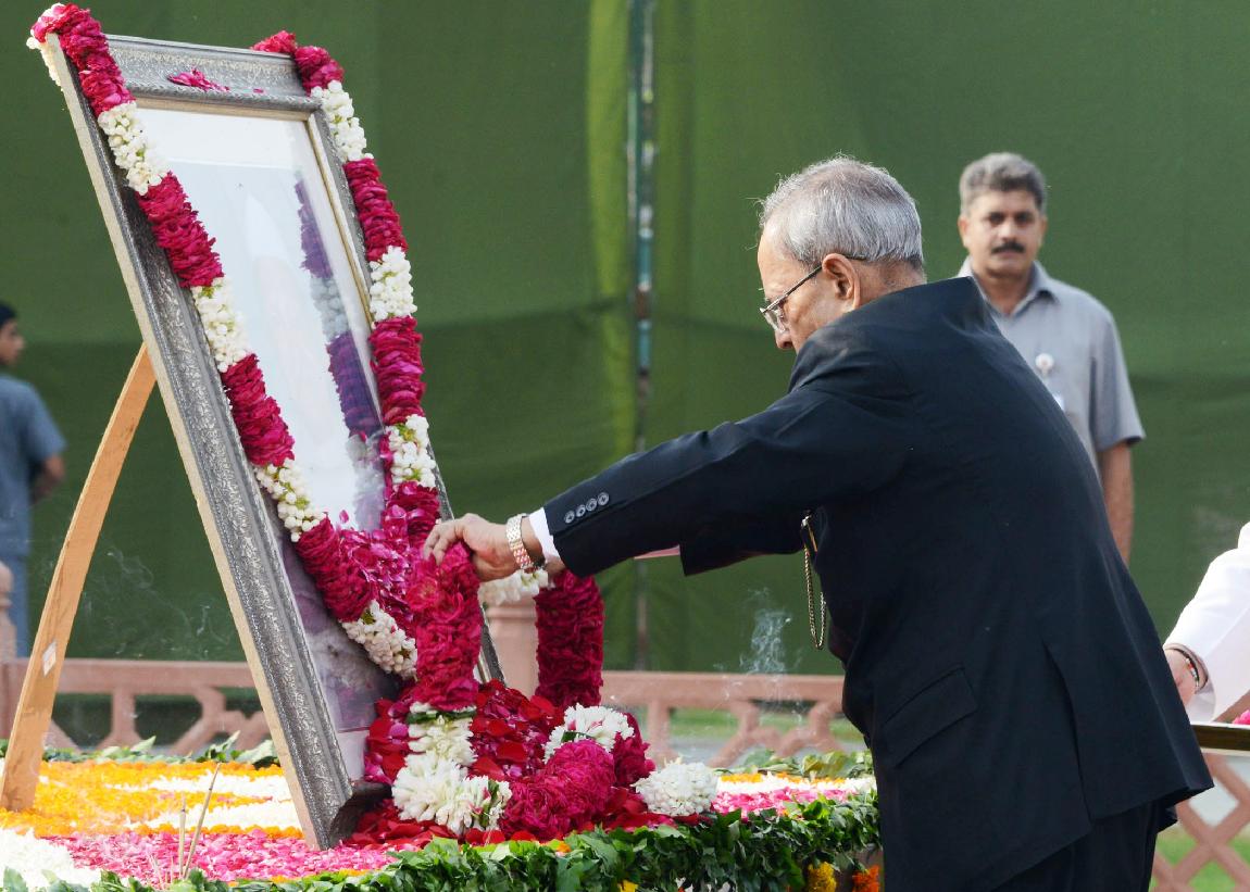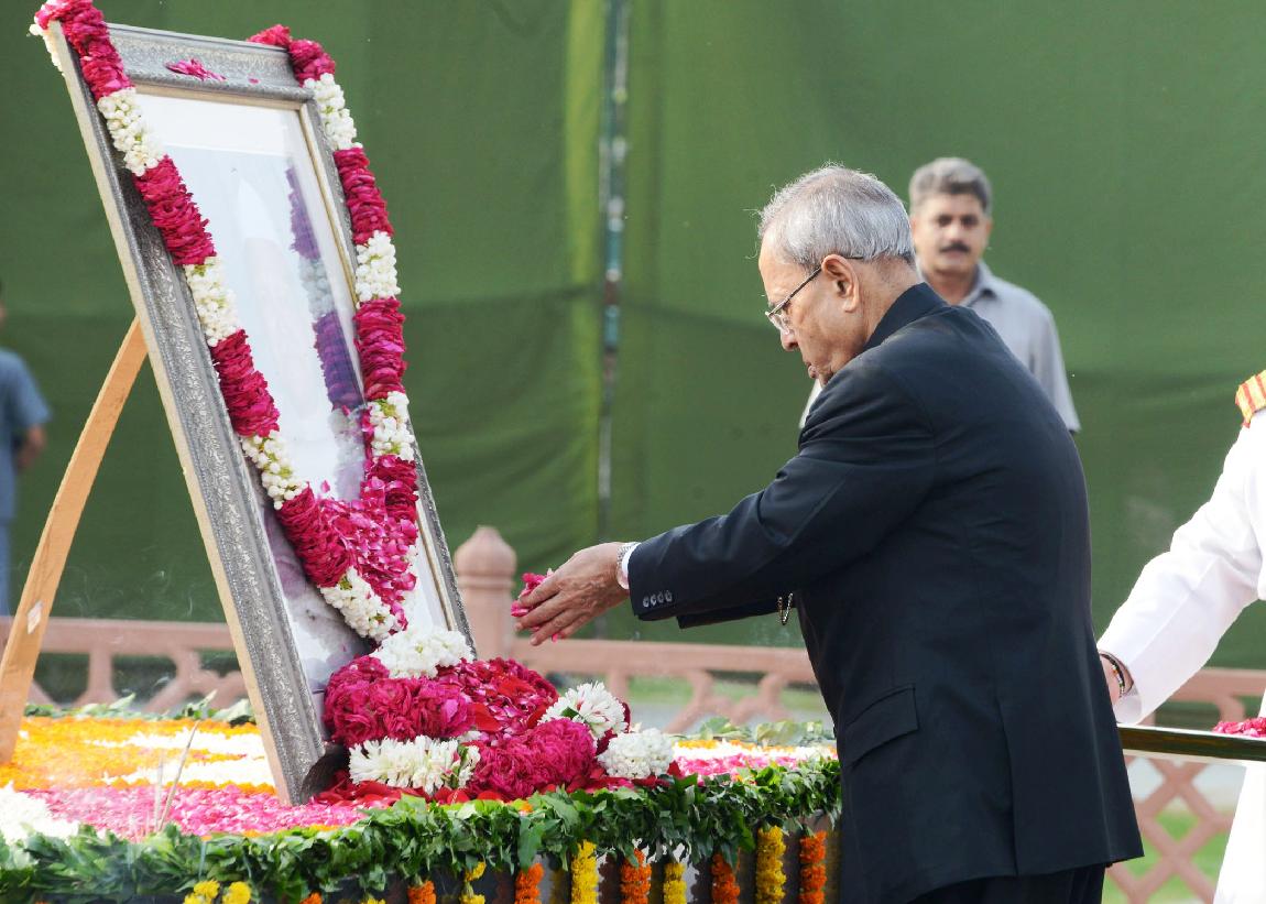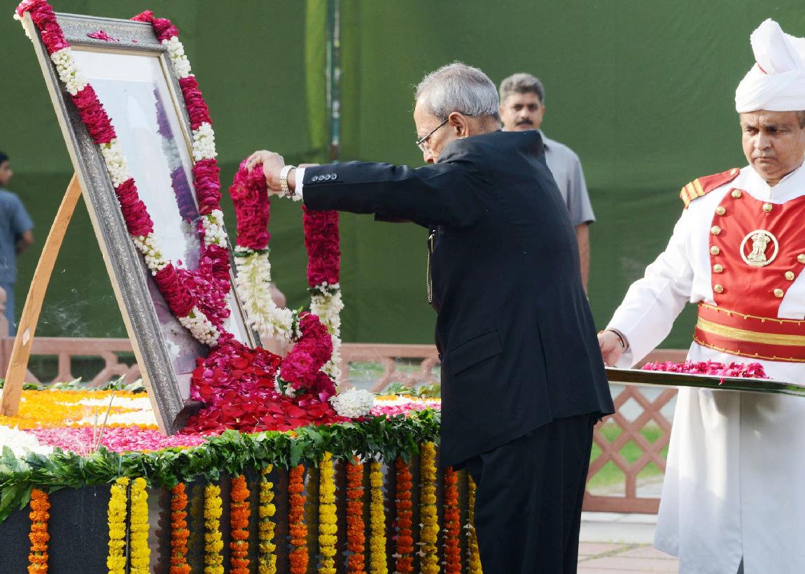 | Caption: | The President of India, Shri Pranab Mukherjee paying floral tributes at the Samadhi of the Former President of India, Late Dr Shanker Dayal Sharma on the occasion of his 96th Birth Anniversary at Karma Bhoomi (near Shanti Van) in New Delhi on August 19, 2014 |