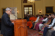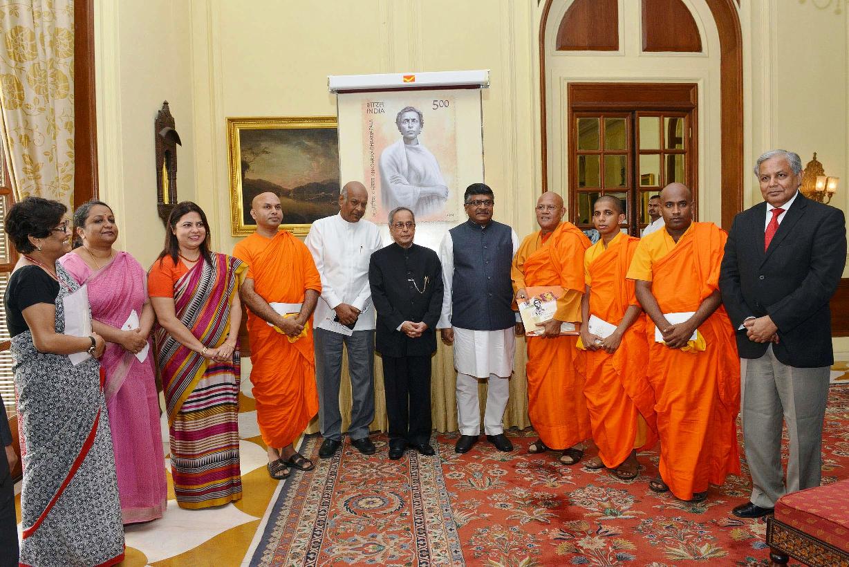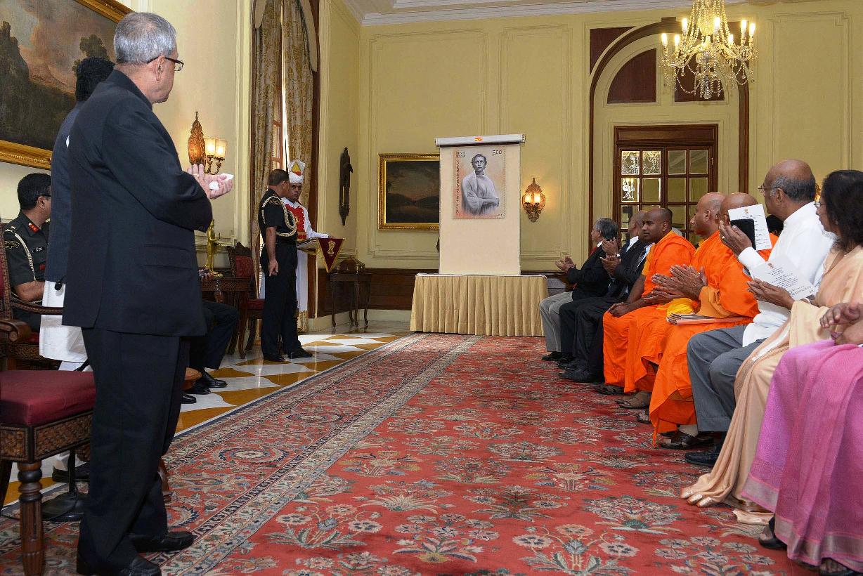 | Caption: | The President of India, Shri Pranab Mukherjee releasing the Commemorative Postage Stamp on Anagarika Dharmapala at Rashtrapati Bhavan in New Delhi on Oct 25, 2014 |