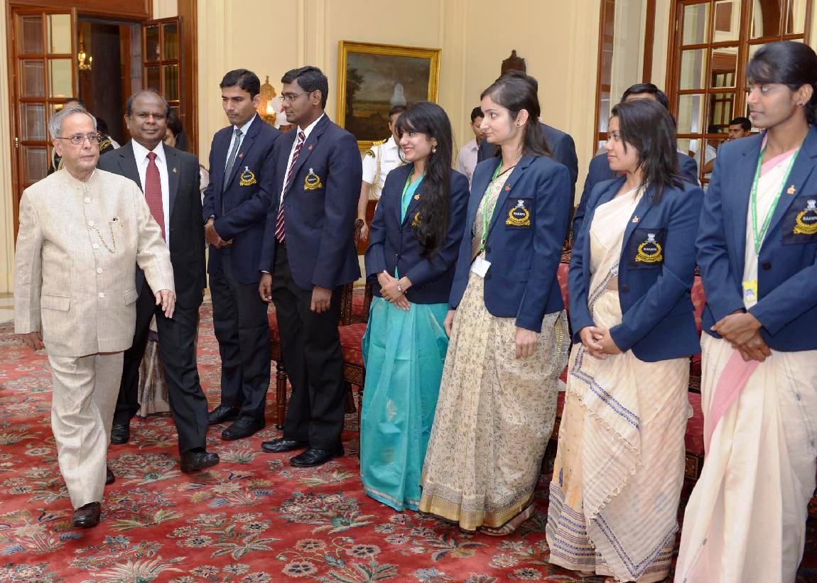 | Caption: | The President of India, Shri Pranab Mukherjee interacting with the Indian Postal Service Probationers of 2010-2013 Batches from Rafi Ahmed Kidwai National Postal Academy & Indian P&T Accounts & Finance Service Probationers from National Institute of Communication Finance, Ghaziabad at Rashtrapati Bhavan in New Delhi on April 16, 2014 |