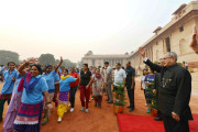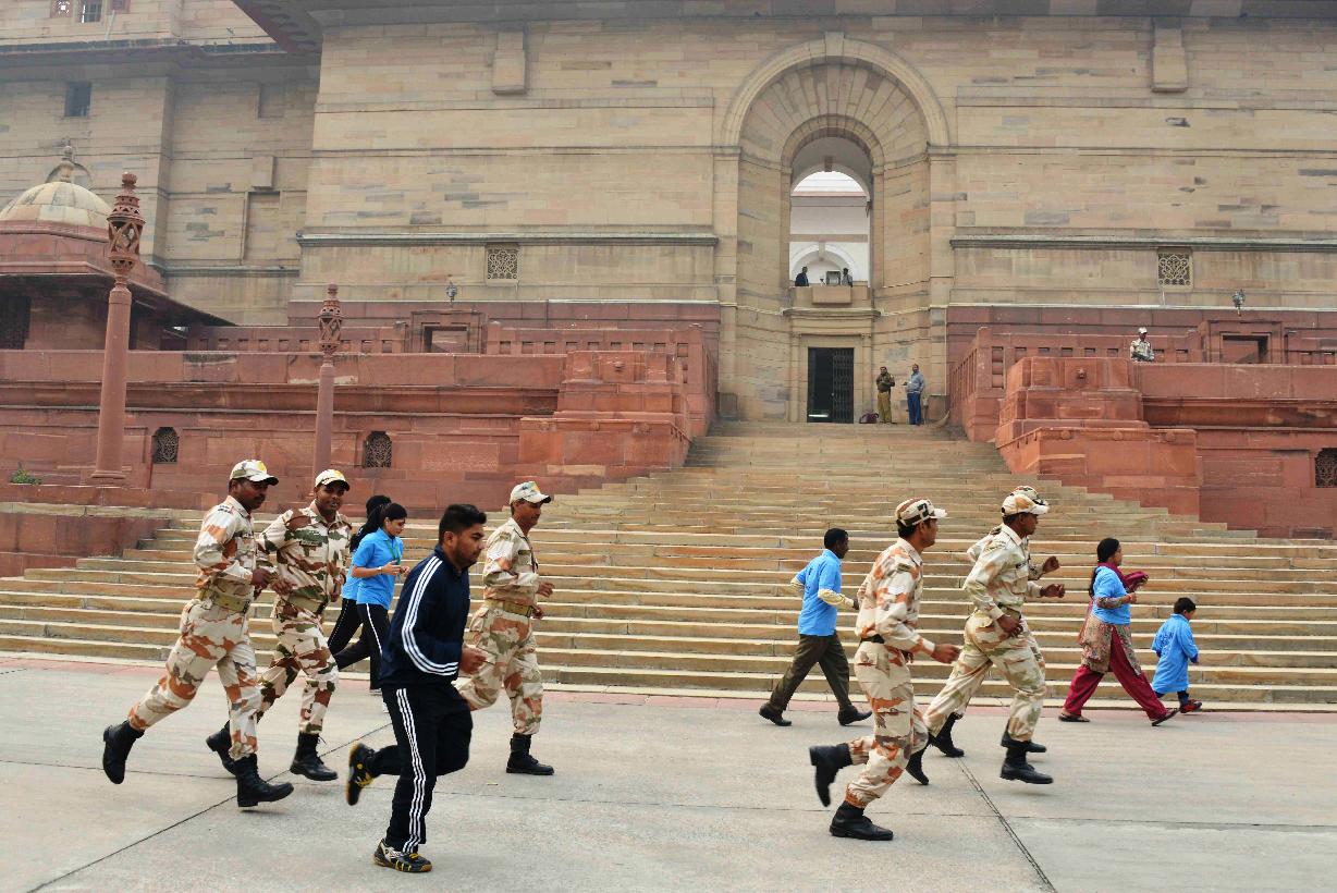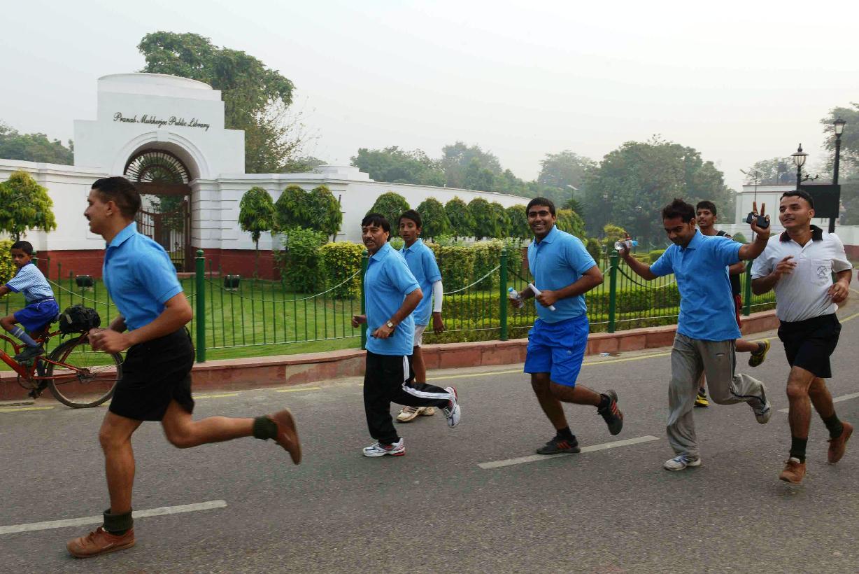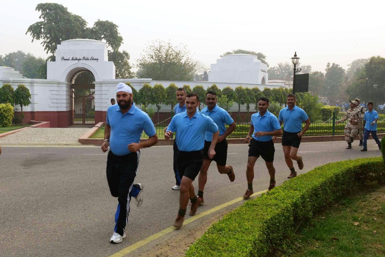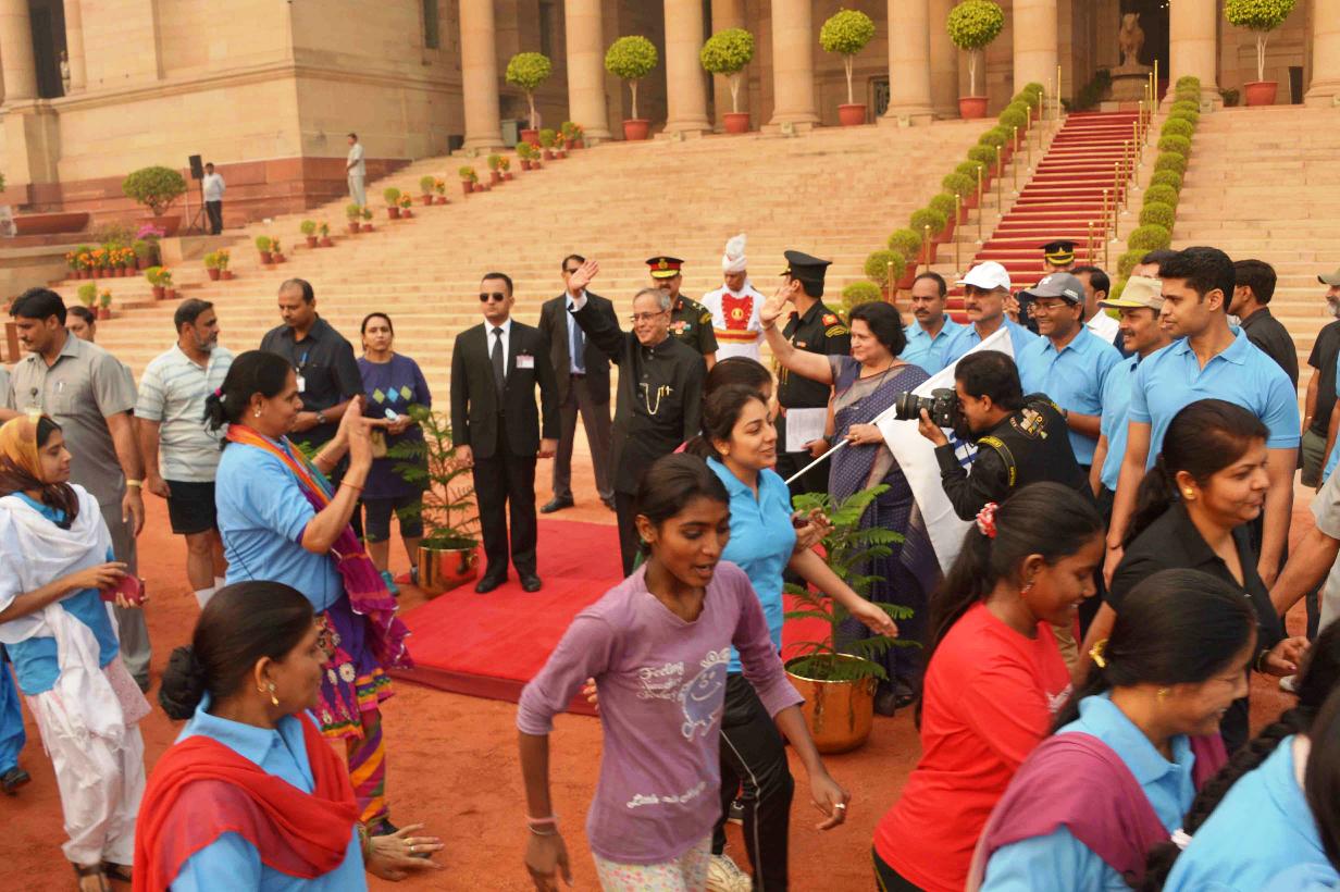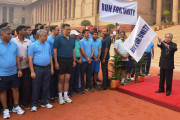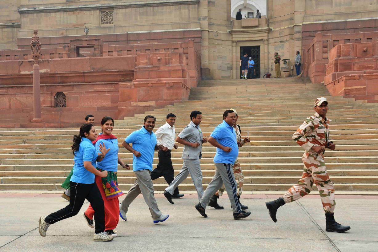 | Caption: | The President of India, Shri Pranab Mukherjee flagging off the Run for Unity at the Forecourt of Rashtrapati Bhavan in New Delhi on Oct 31, 2014 |