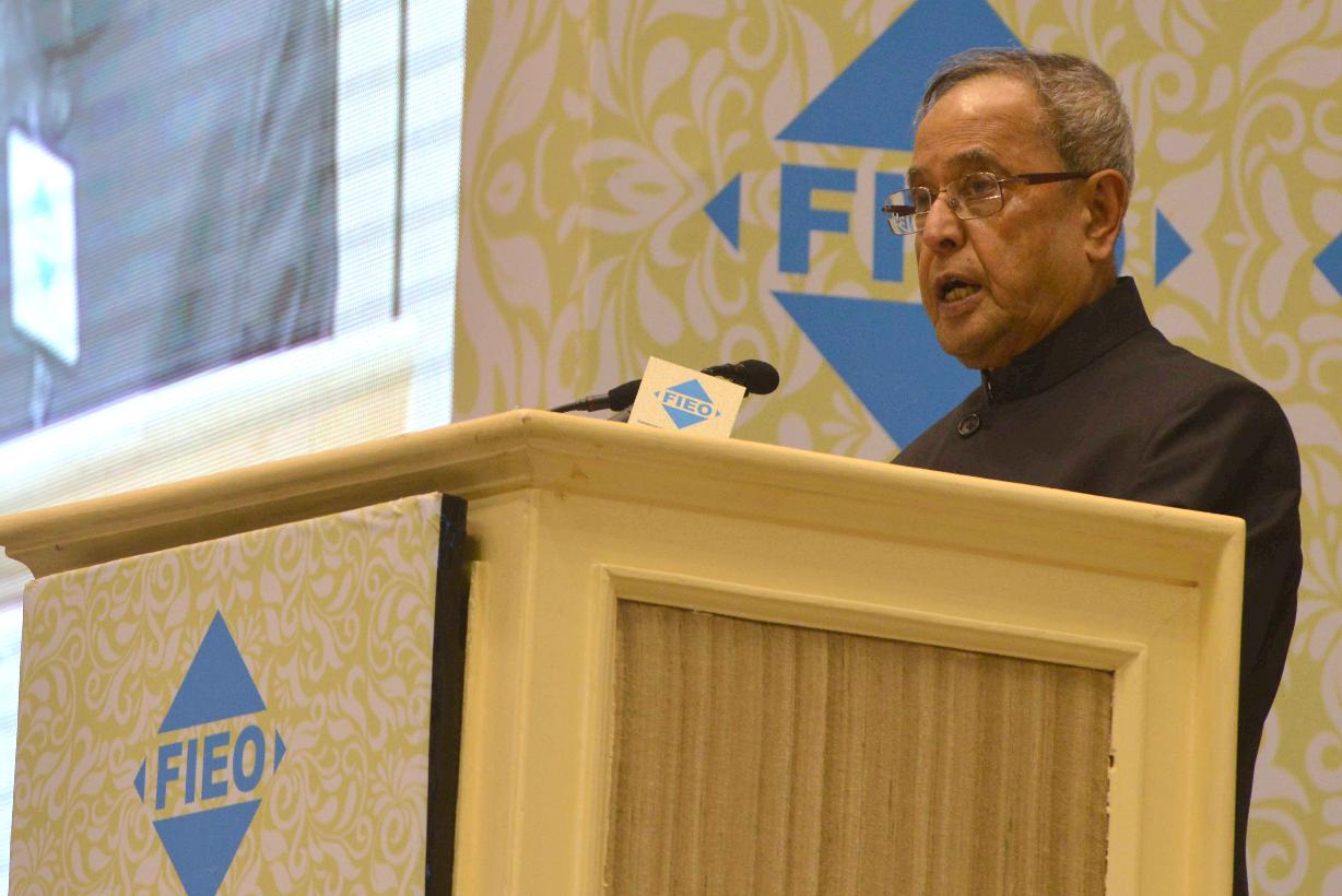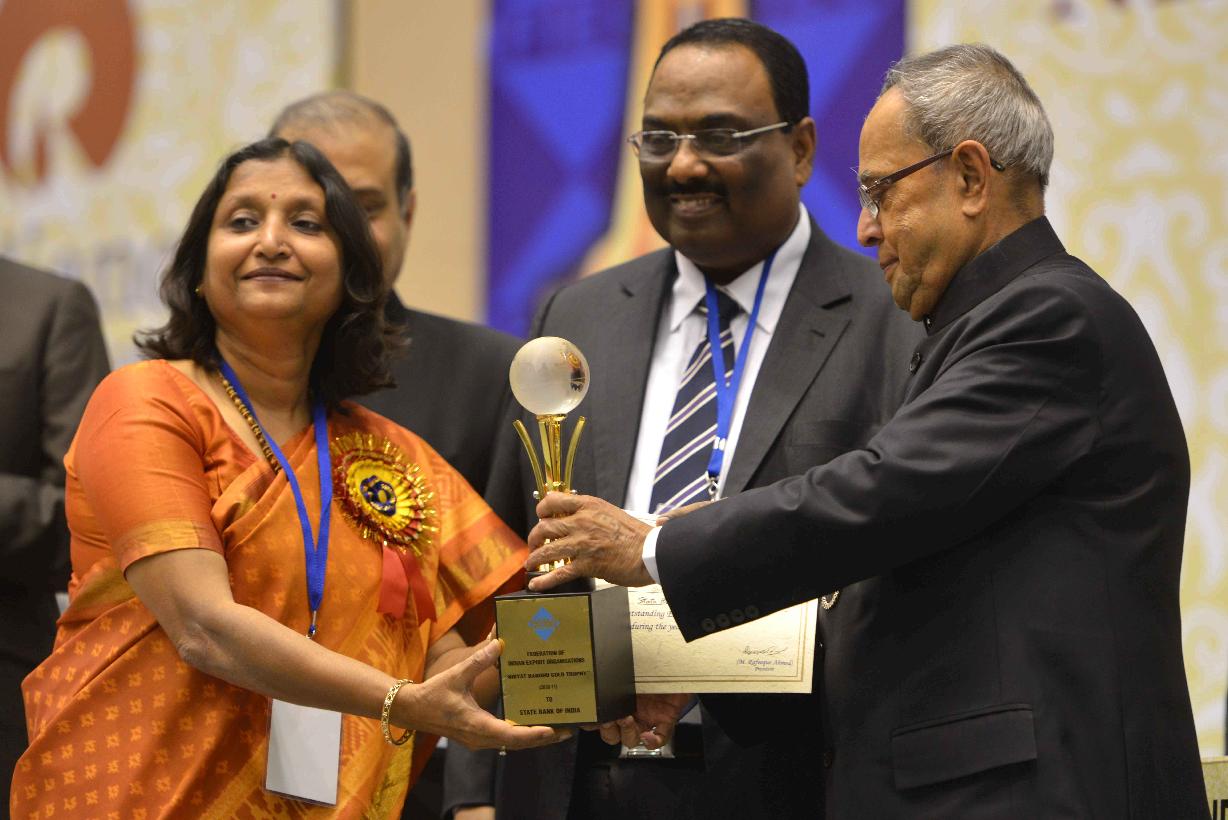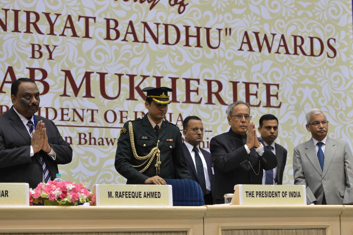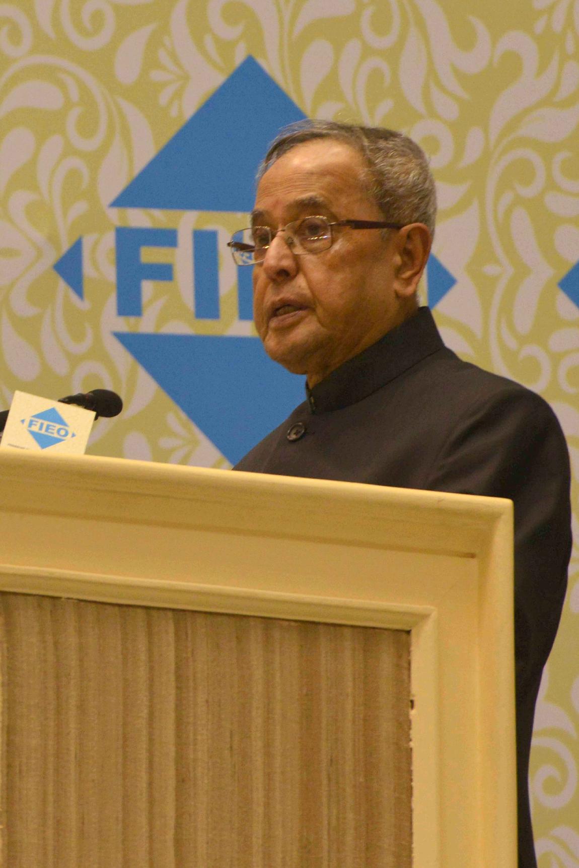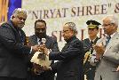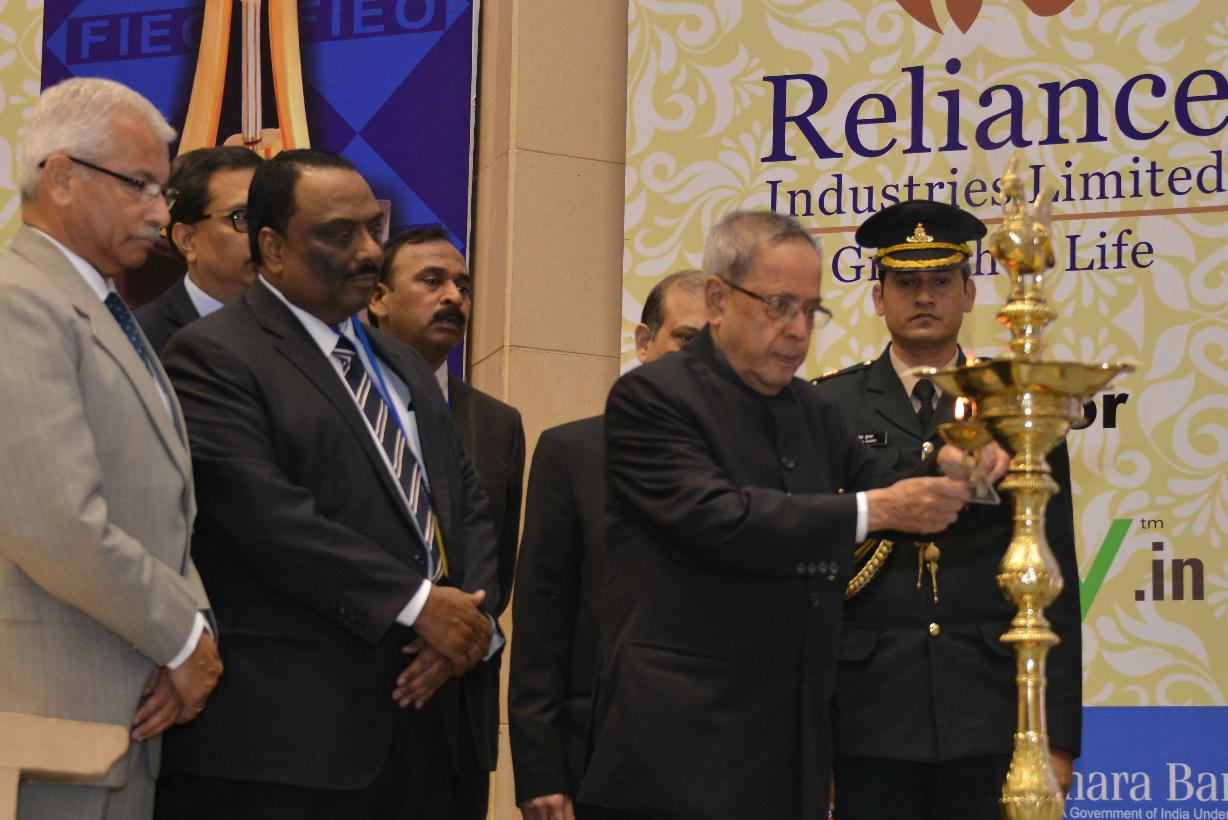 | Caption: | The President of India, Shri Pranab Mukherjee presenting the Niryat Shree and Niryat Bandhu Awards Instituted by the Federation of Indian Export Organizations for Outstanding Performance in Exports for the Year 2010-11 and 2011-12 at Vigyan Bhavan in New Delhi on Dec 01, 2014 |
