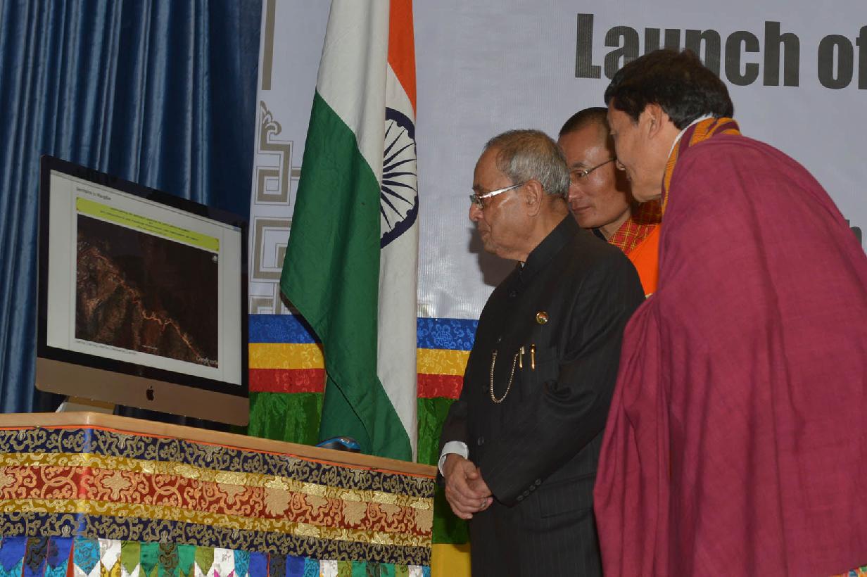 | Caption: | The President of India, Shri Pranab Mukherjee launching the East-West High Way at Thimphu in Bhutan on Nov 08, 2014 |