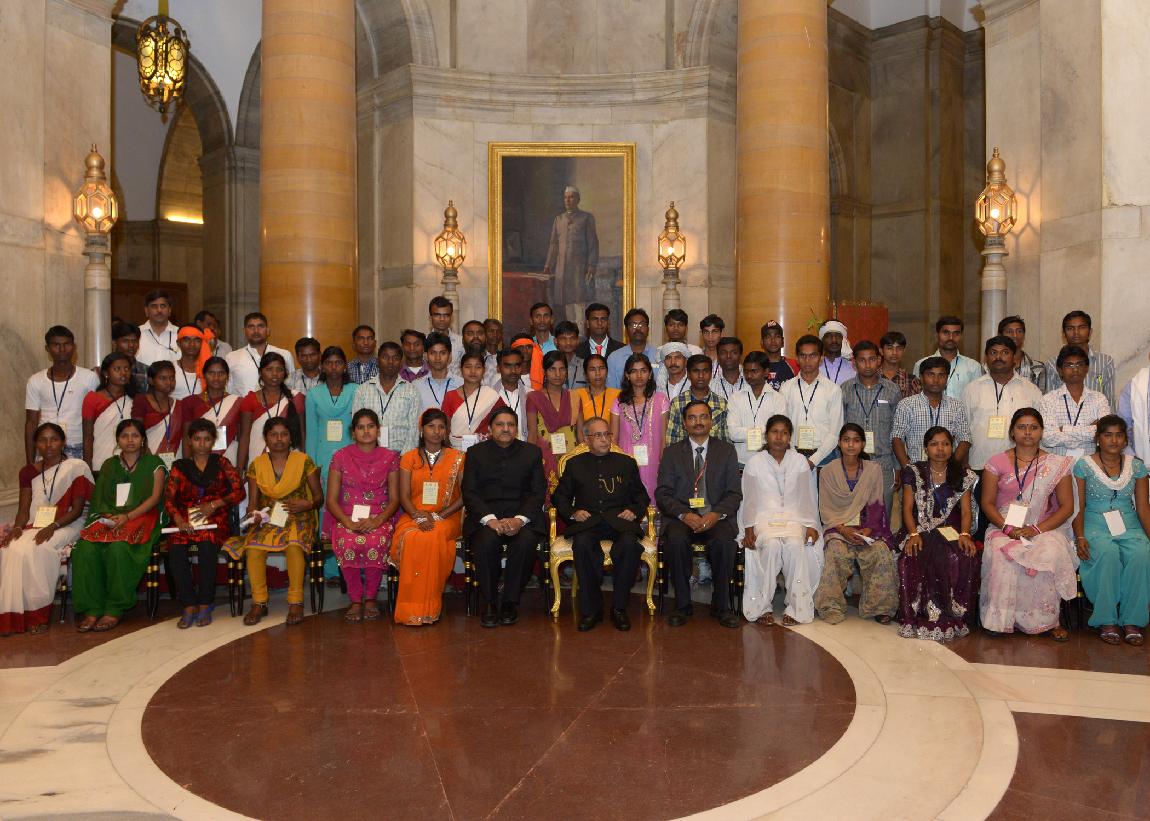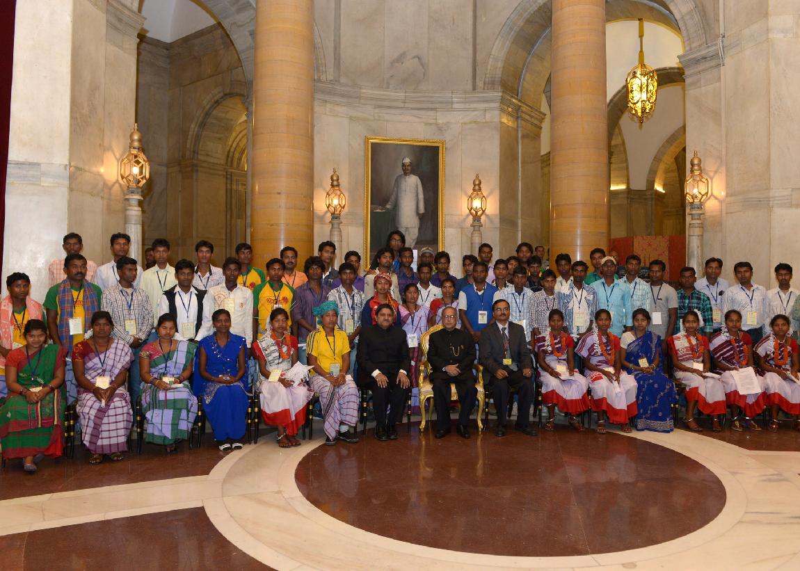 | Caption: | The President of India, Shri Pranab Mukherjee interacting with the Youths who attending the 6th Tribal Youth Exchange Programme organized by the Nehru Yuva Kendra Sangathan at Rashtrapati Bhavan in New Delhi on March 28, 2014 |