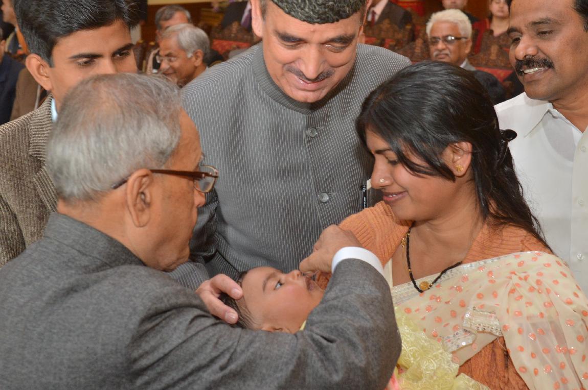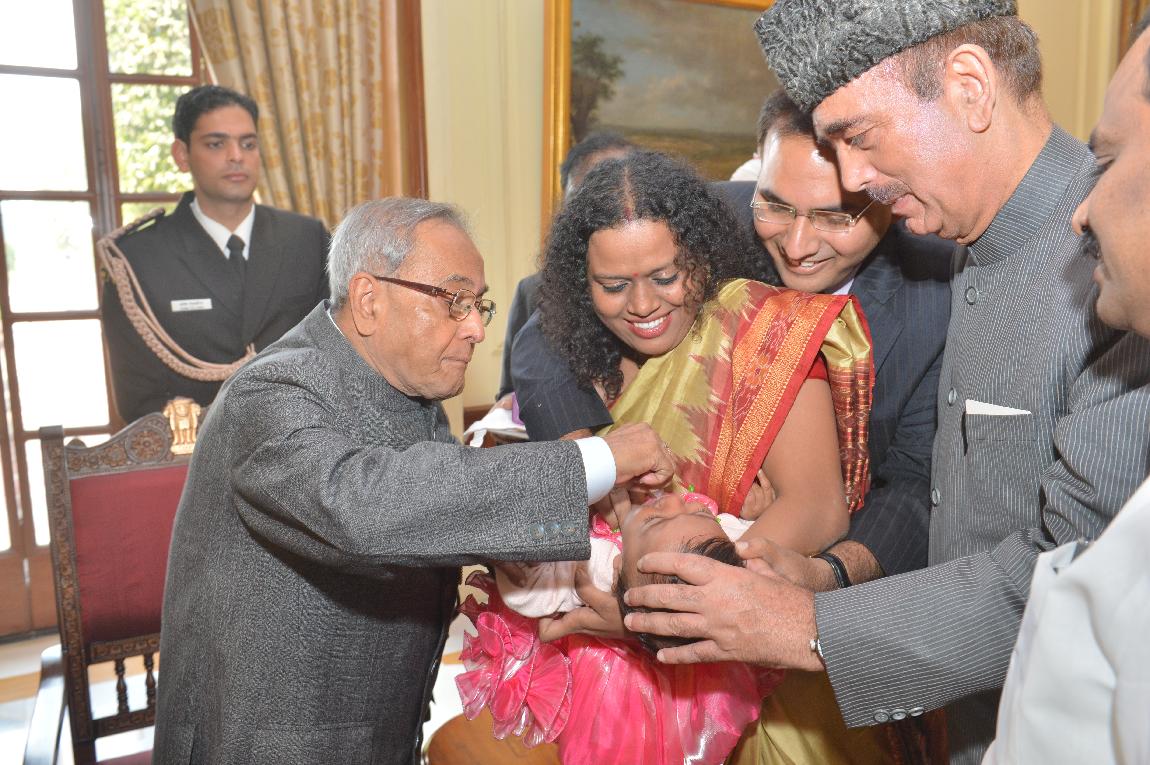 | Caption: | The President of India, Shri Pranab Mukherjee Launching the Nationwide Polio Round by Administering Polio Drops to the Children on 13 Jan 2013 |
