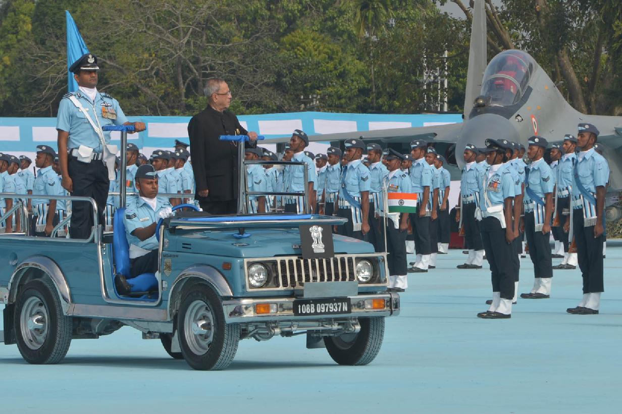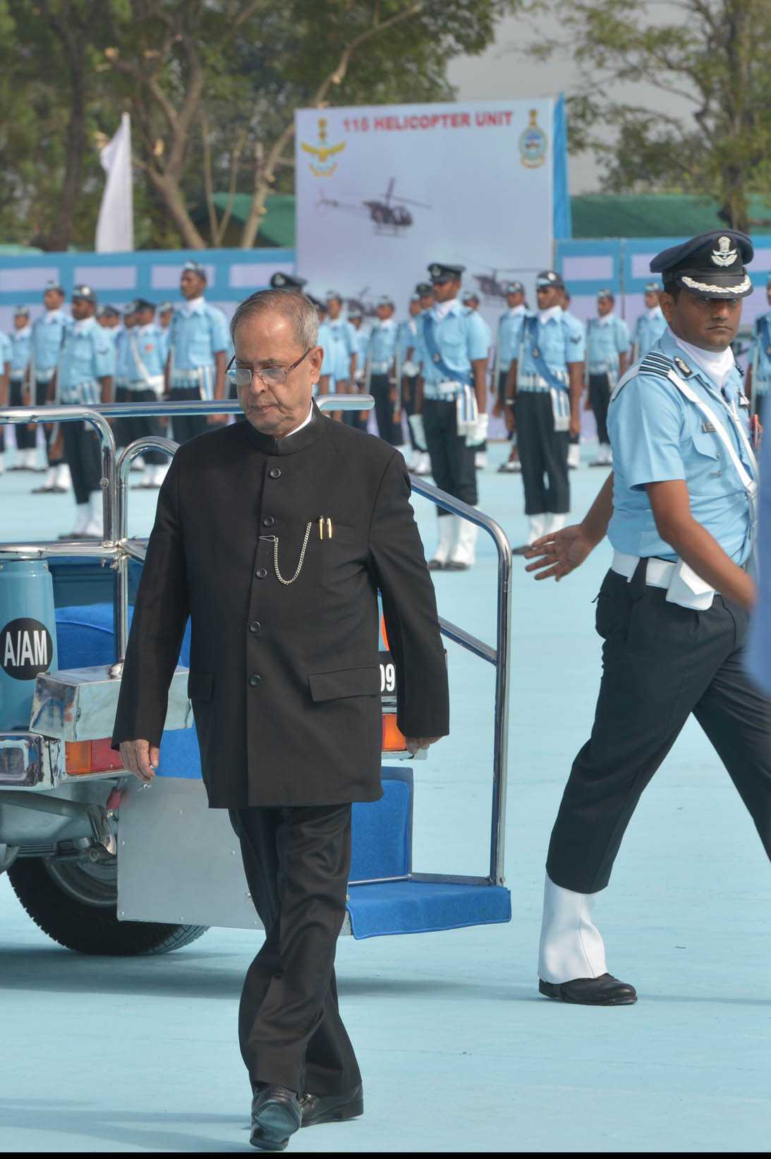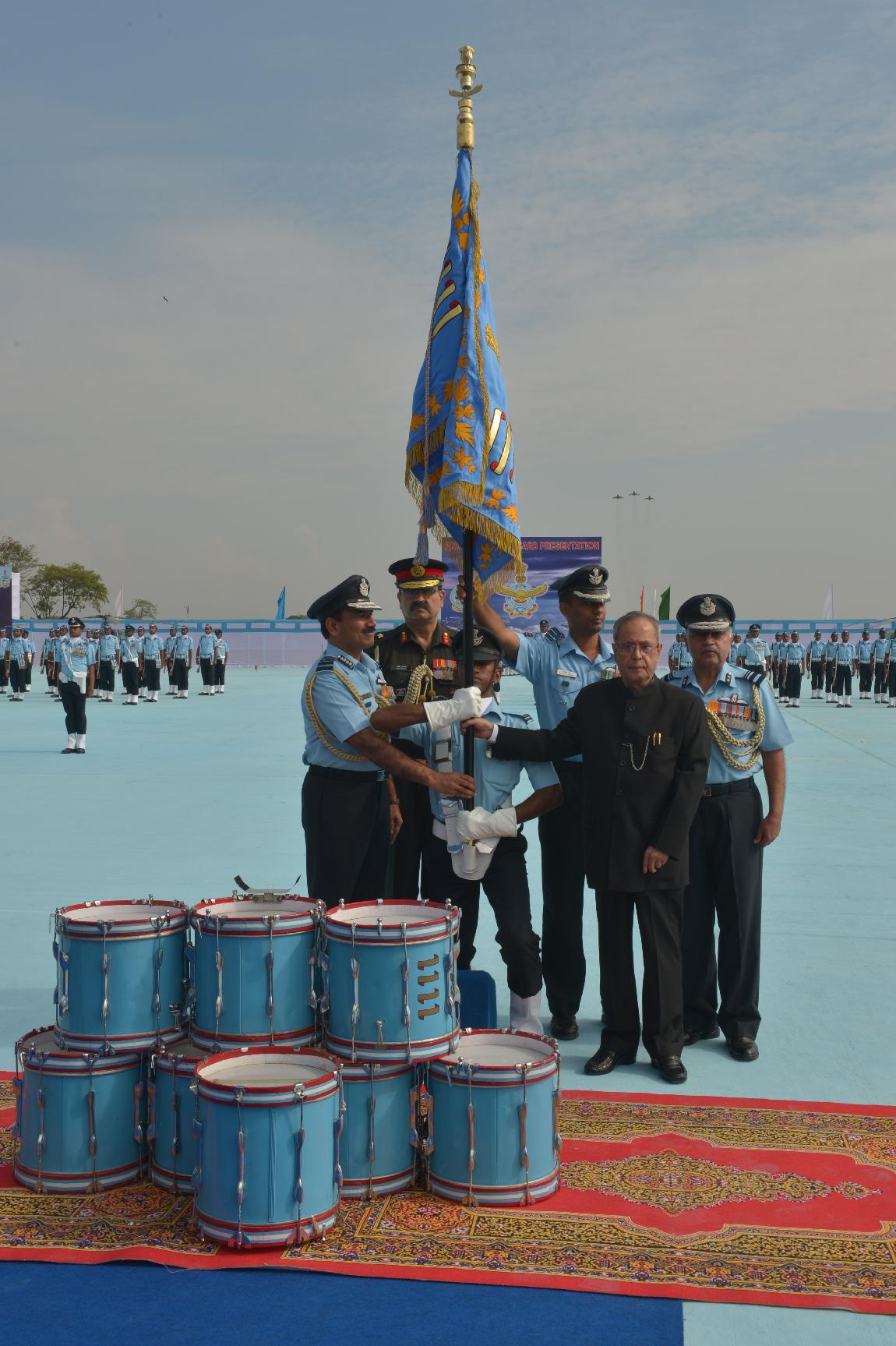 | Caption: | The President of India, Shri Pranab Mukherjee during the Presentation of Standards to 115 HU & 26 Sqn of Indian Air Force at Tezpur in Assam on Nov 21, 2014 |