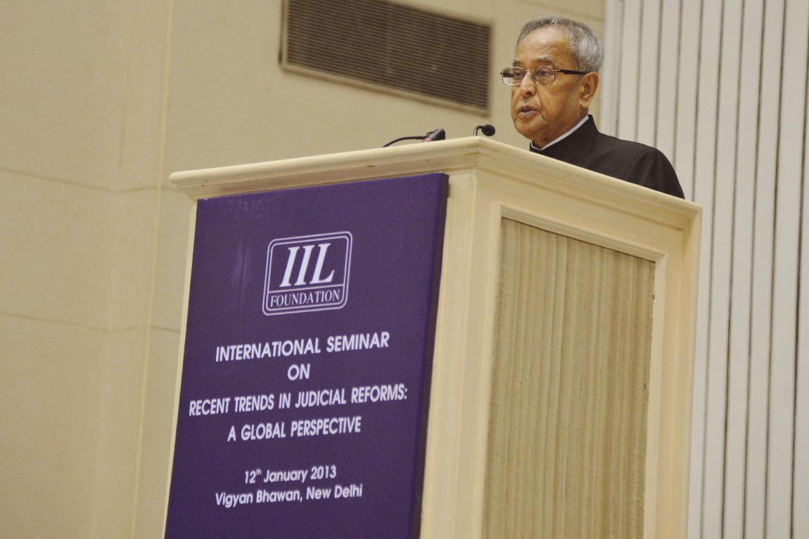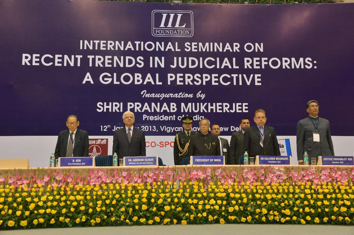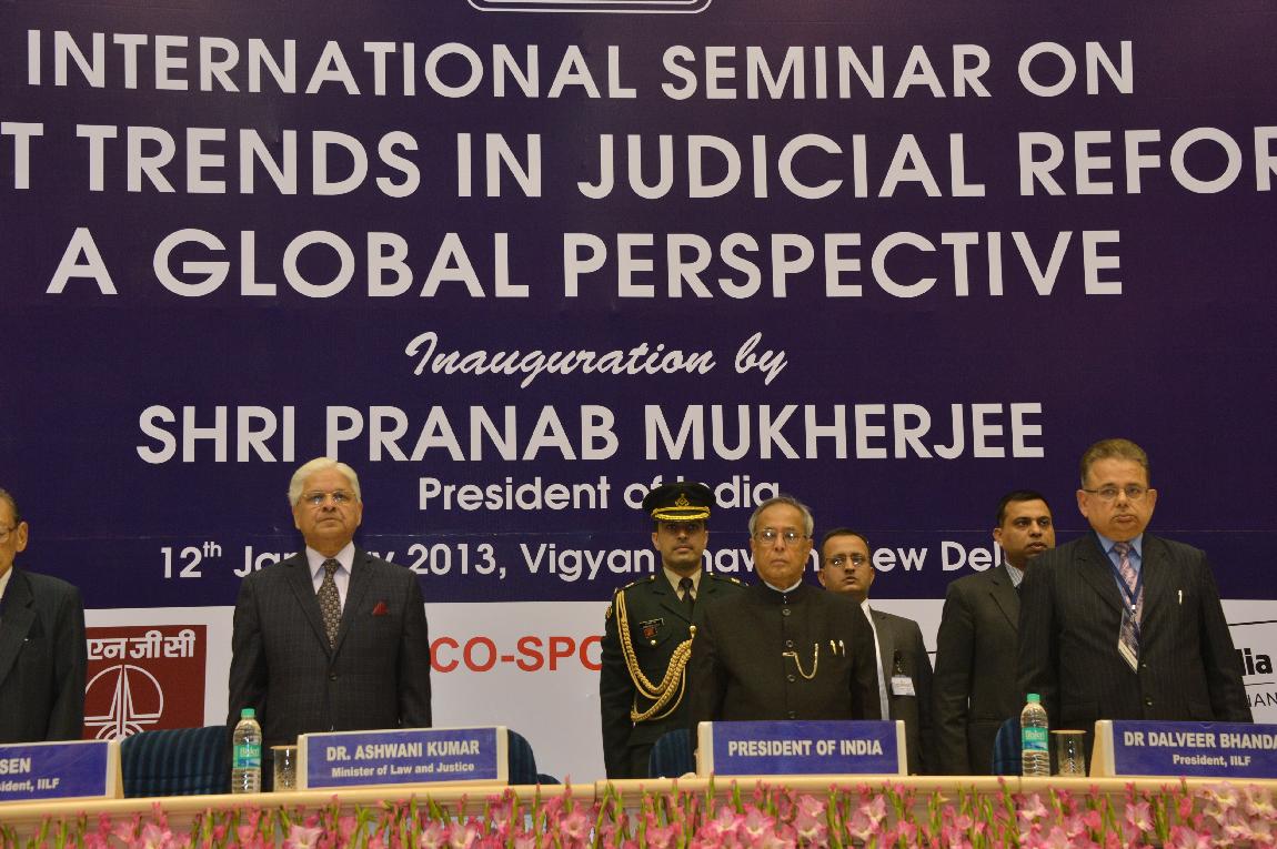 | Caption: | The President of India, Shri Pranab Mukherjee Inaugurating the International Seminar on Global Trends in Judicial Reforms on 12 Jan 2013 |