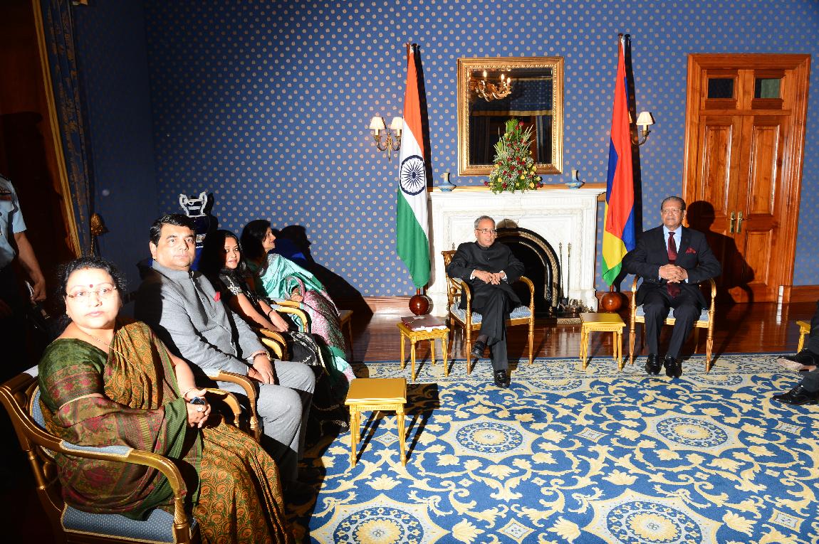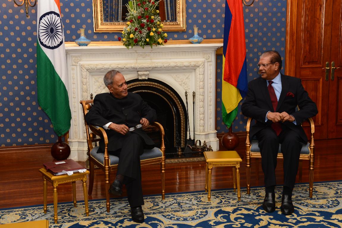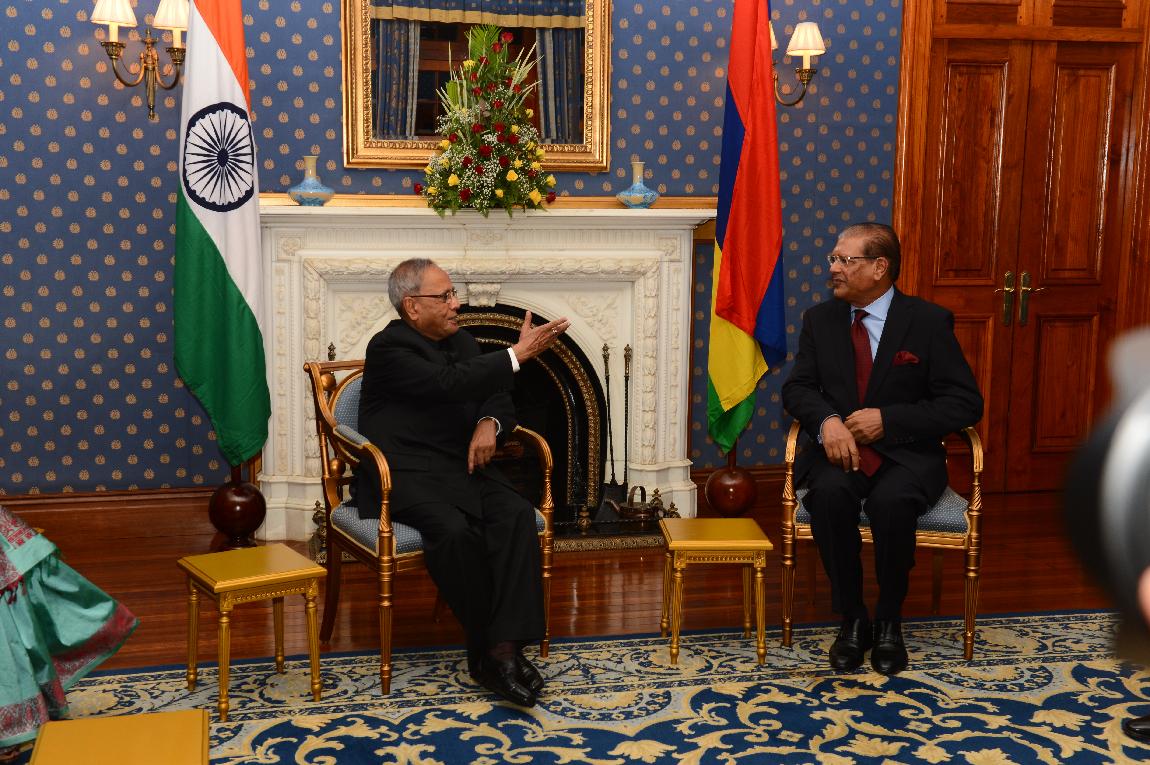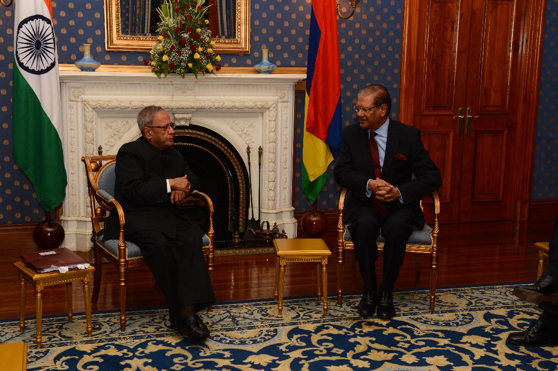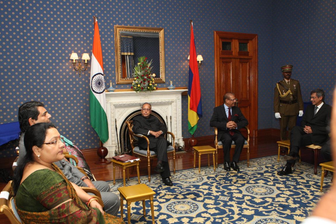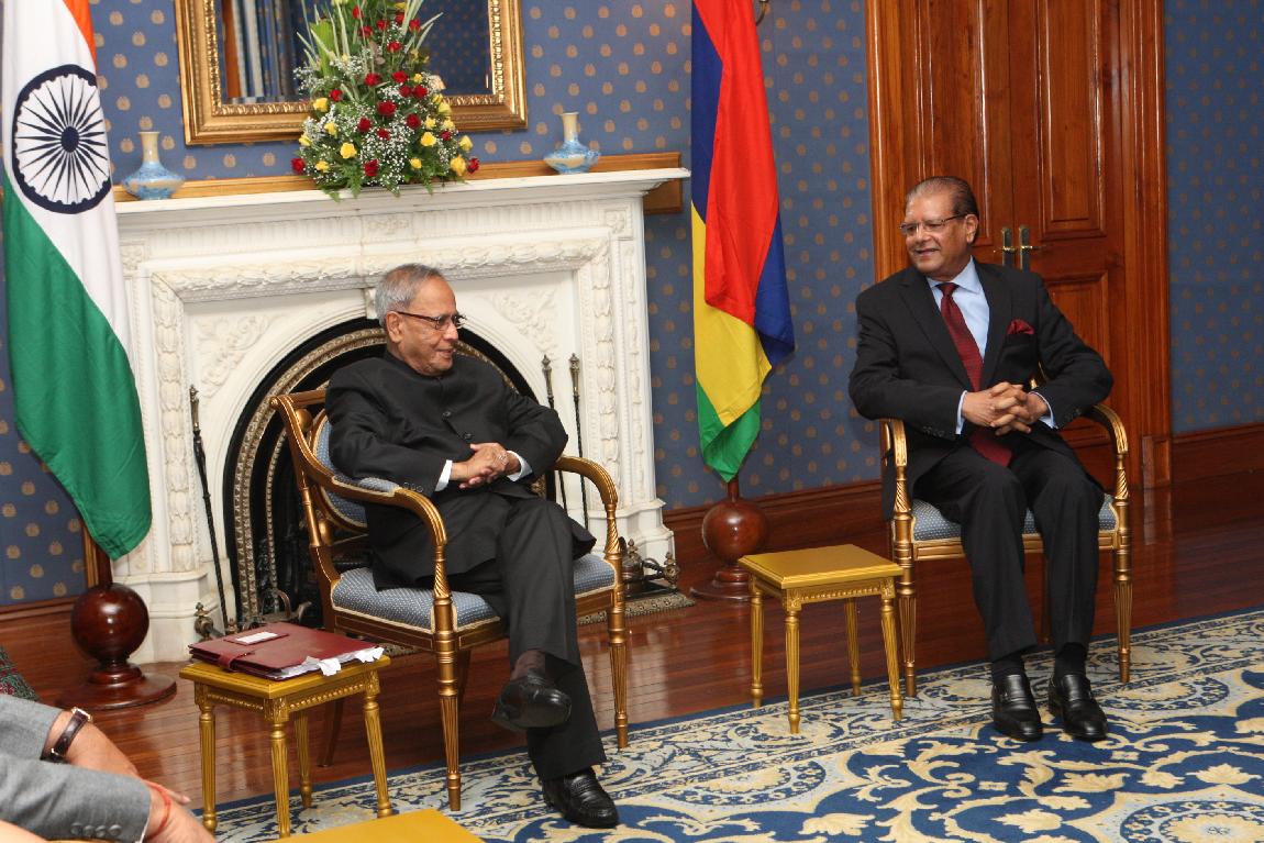 The President of India, Shri Pranab Mukherjee meeting The President of Mauritius on 11 March 2013