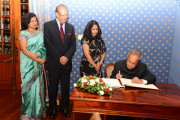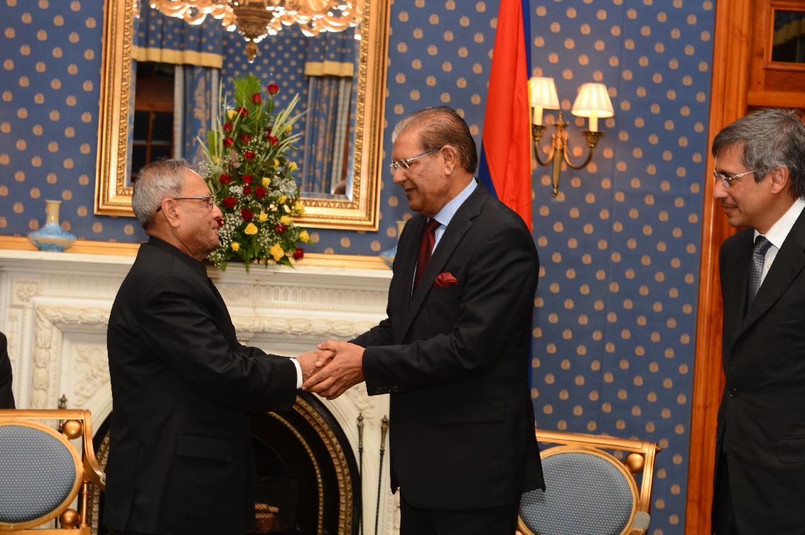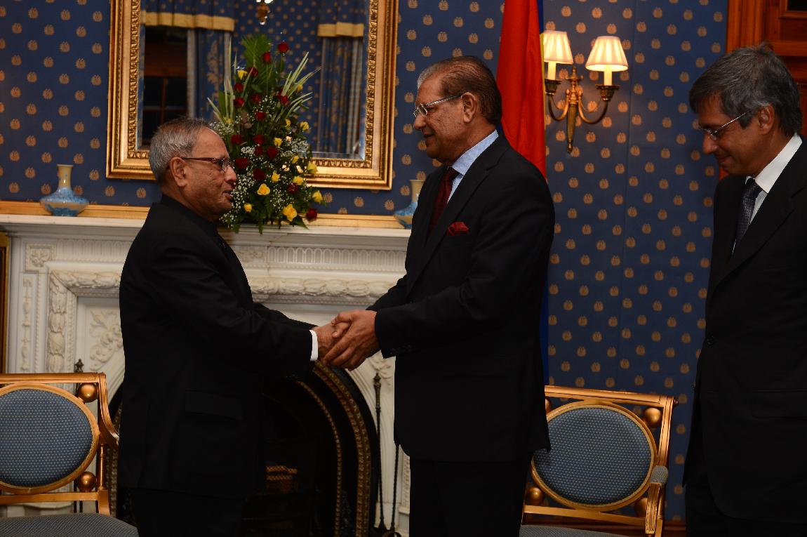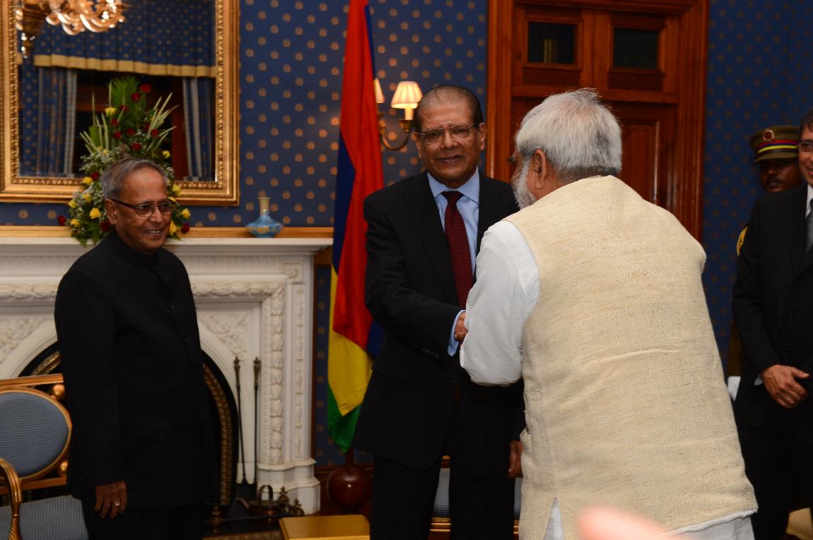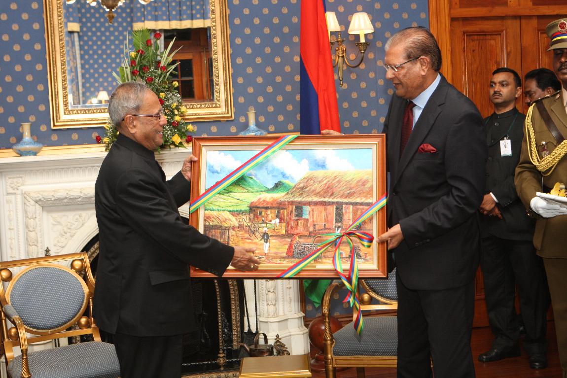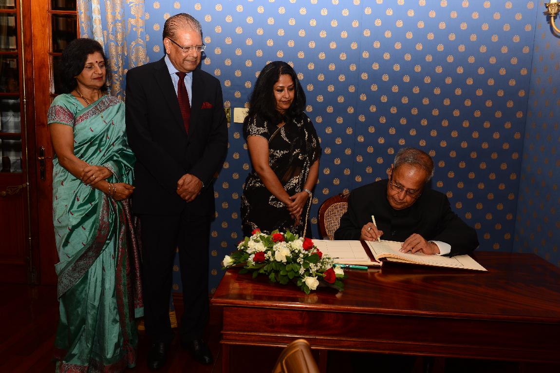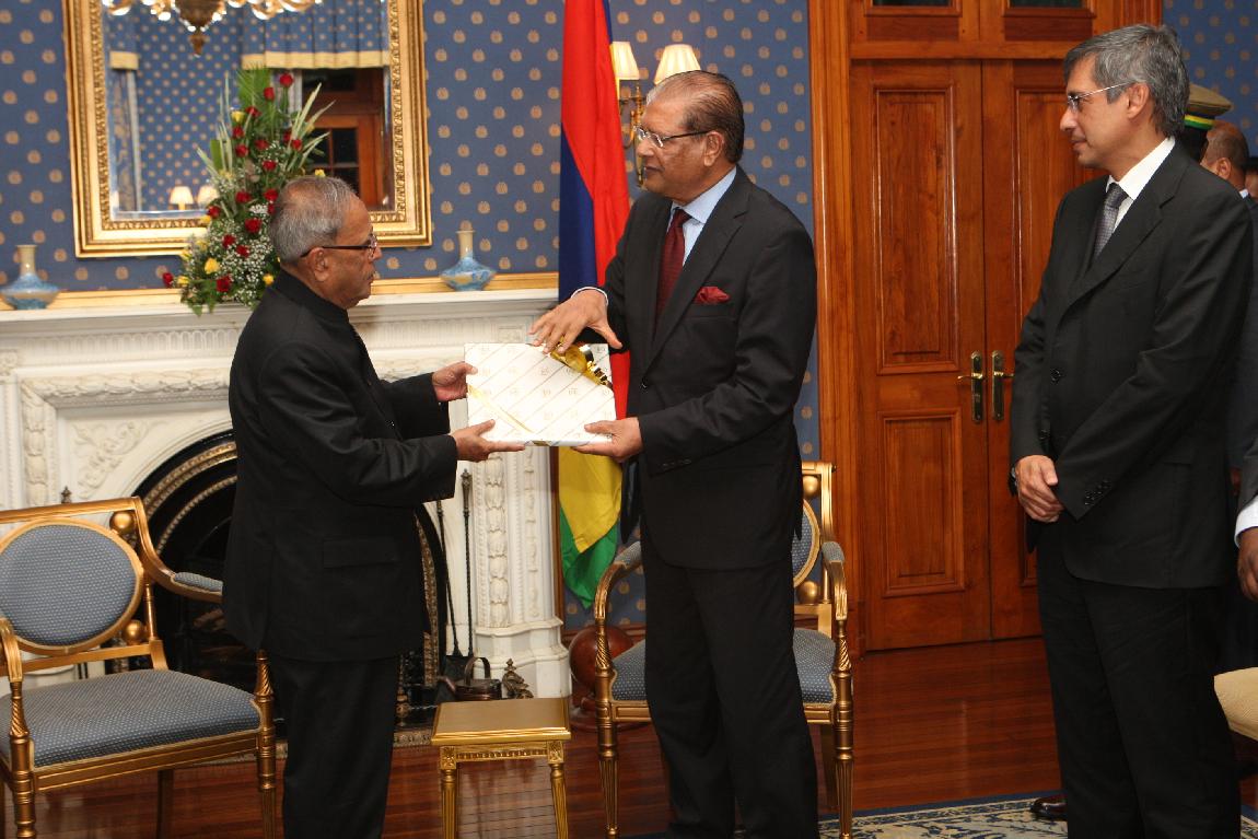 The President of India, Shri Pranab Mukherjee meeting The President of Mauritius on 11 March 2013