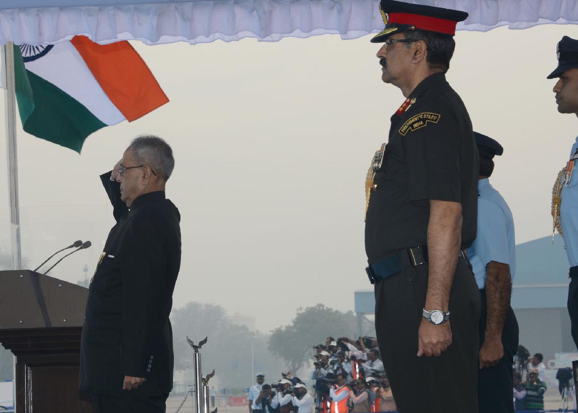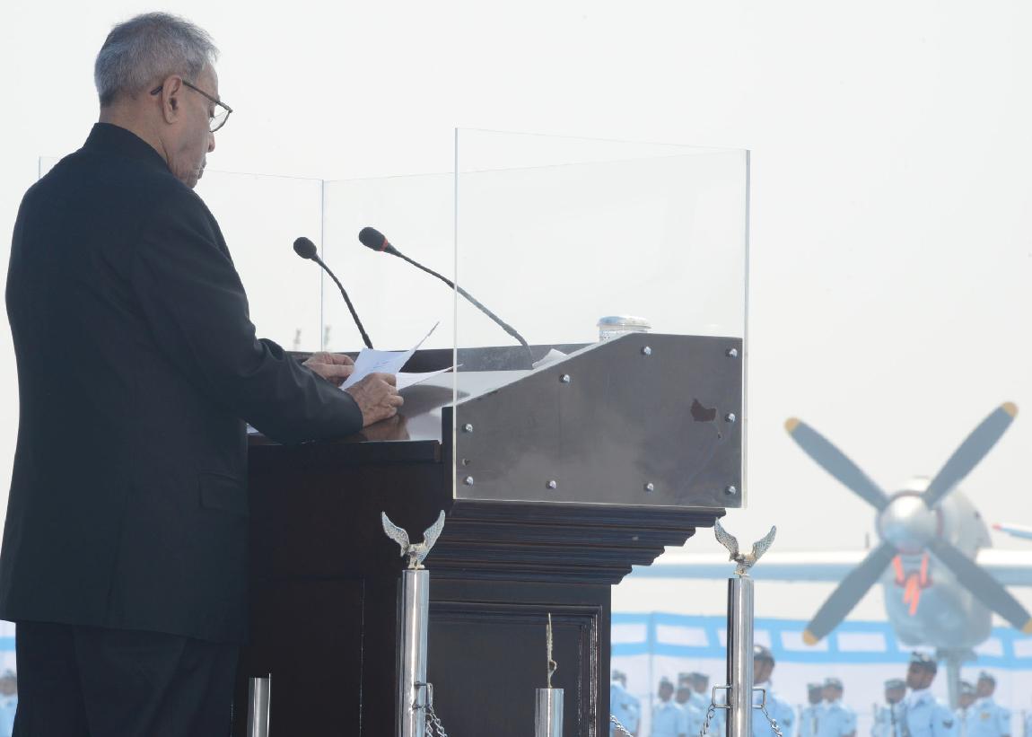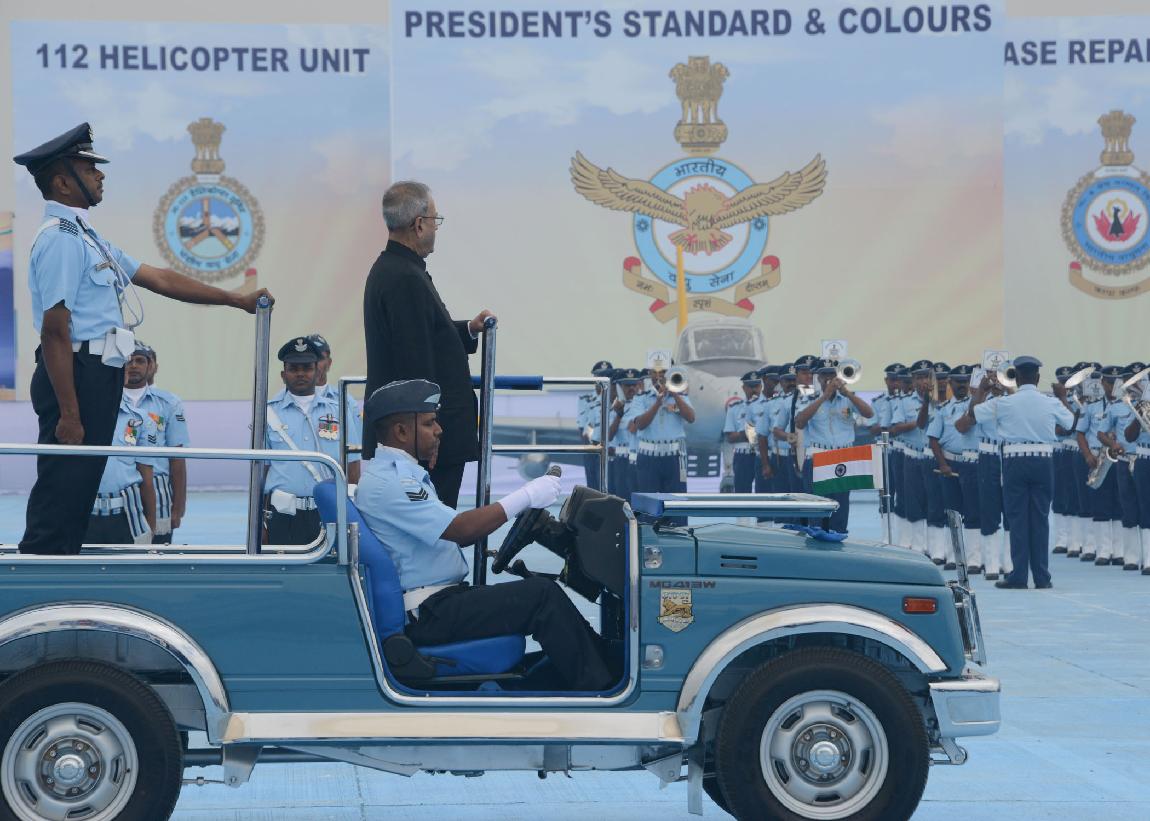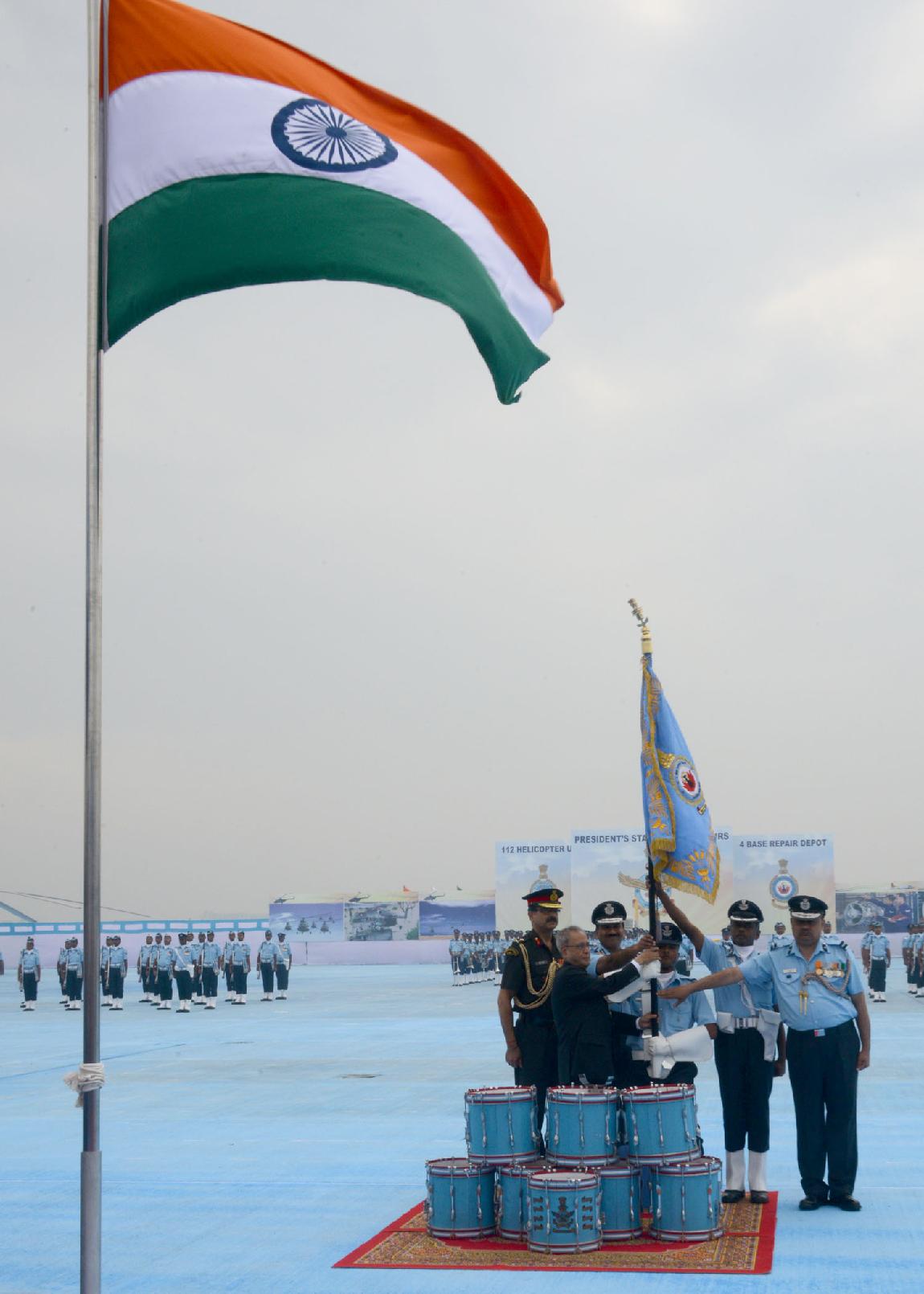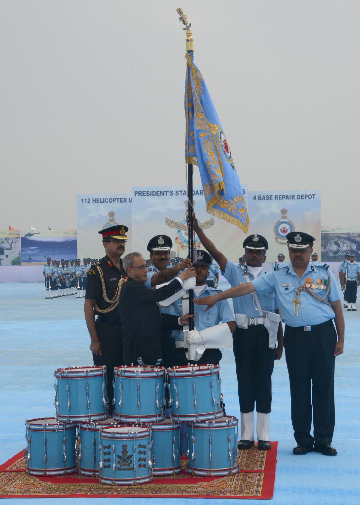 | Caption: | The President of India, Shri Pranab Mukherjee during the Presentation of President s Standard to 112 Helicopter Unit (HU) and Colours to No-4 Base Repair Depot (BRD) of Indian Air Force at Kanpur in Uttar Pradesh on March 11, 2014 |