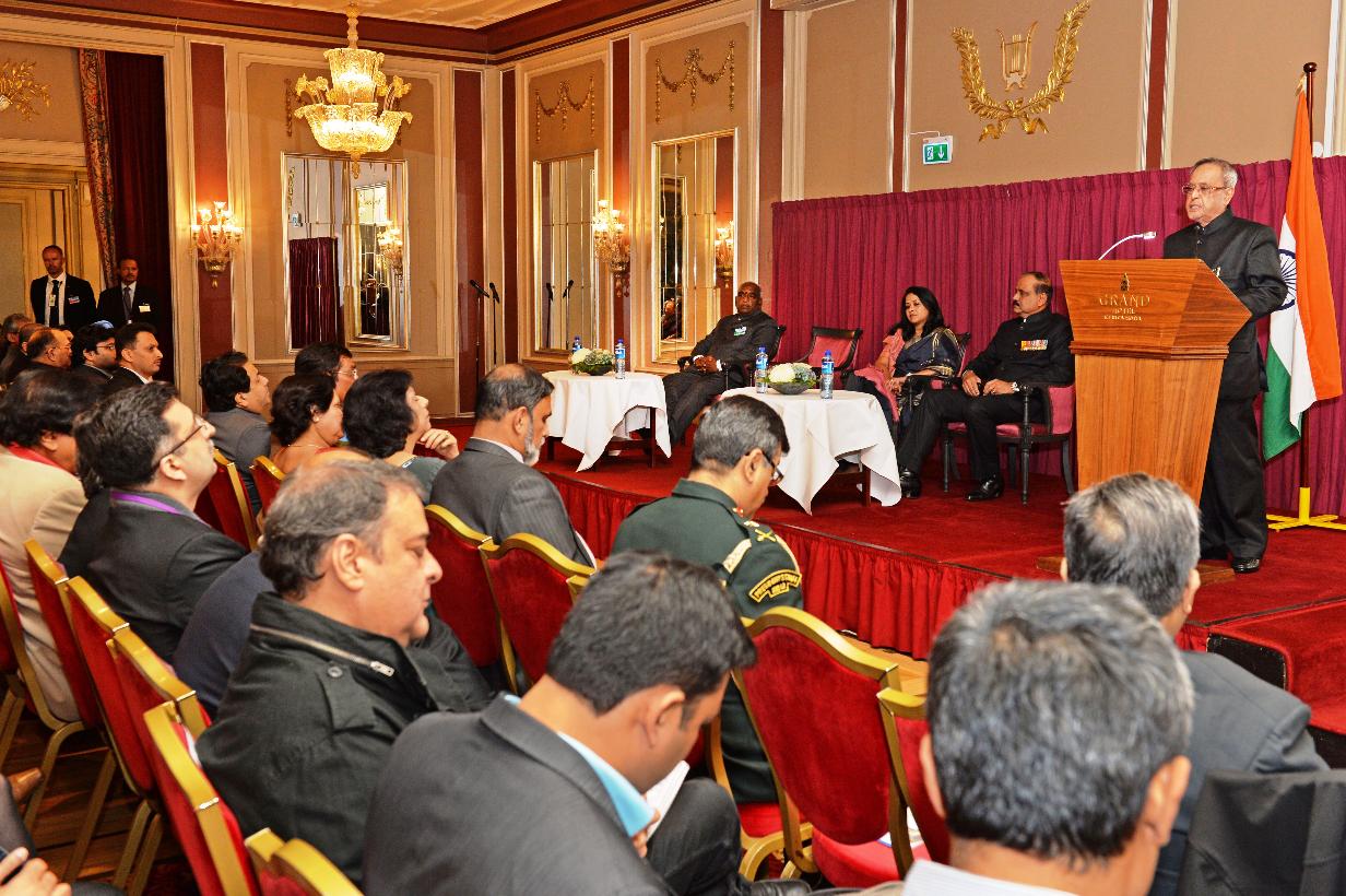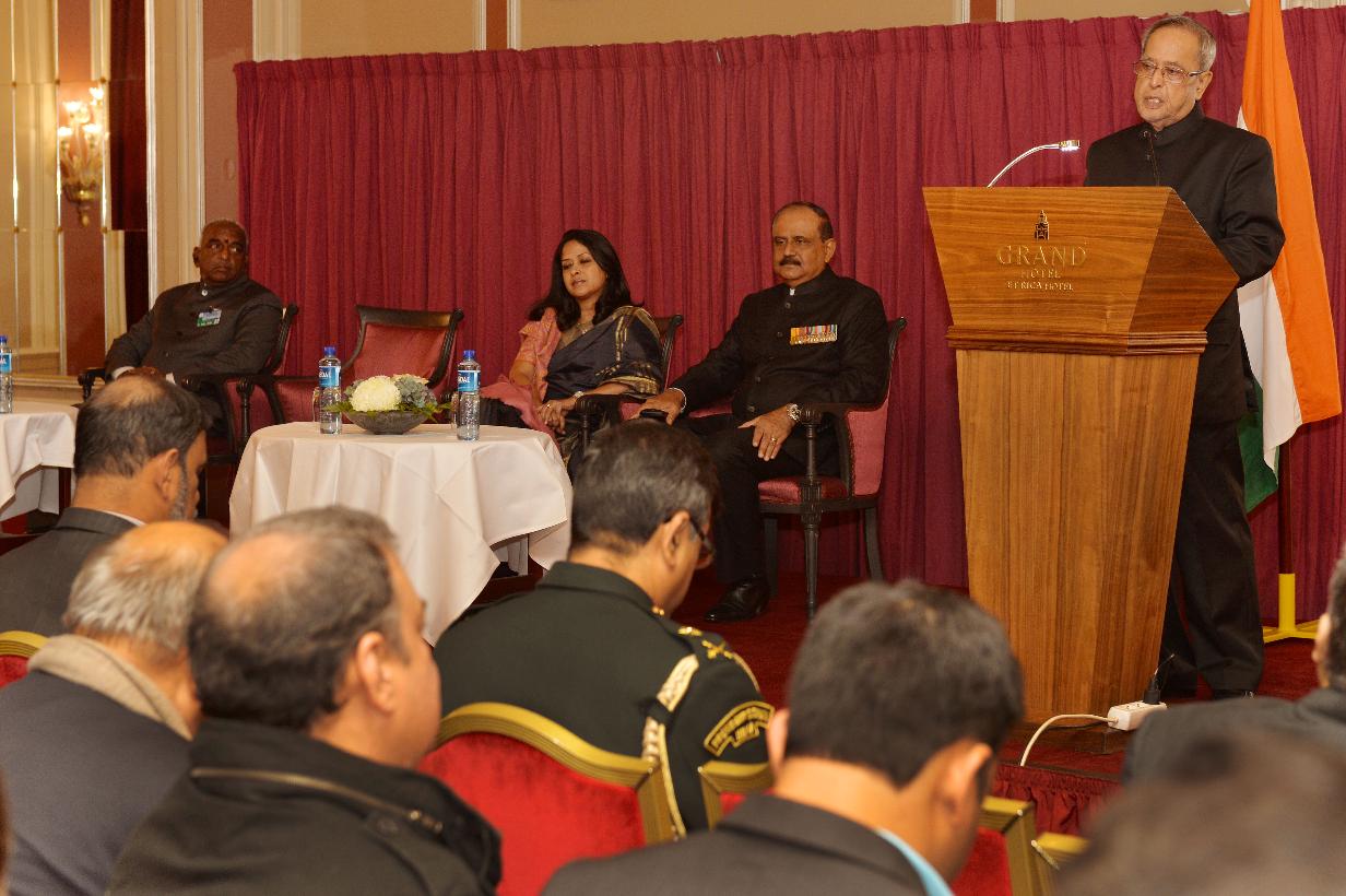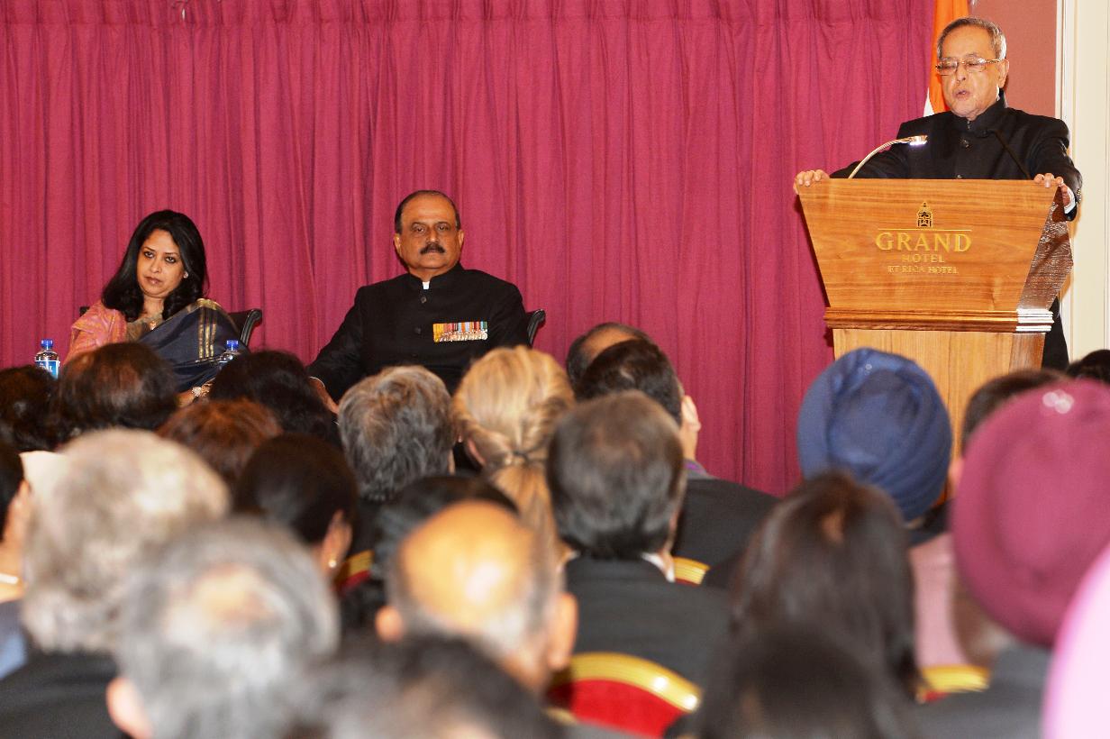 | Caption: | The President of India, Shri Pranab Mukherjee at the Reception Hosted by the Indian Ambassador to Norway, Air Chief Marshal NAK Browne at Oslo in Norway on Oct 14, 2014 |