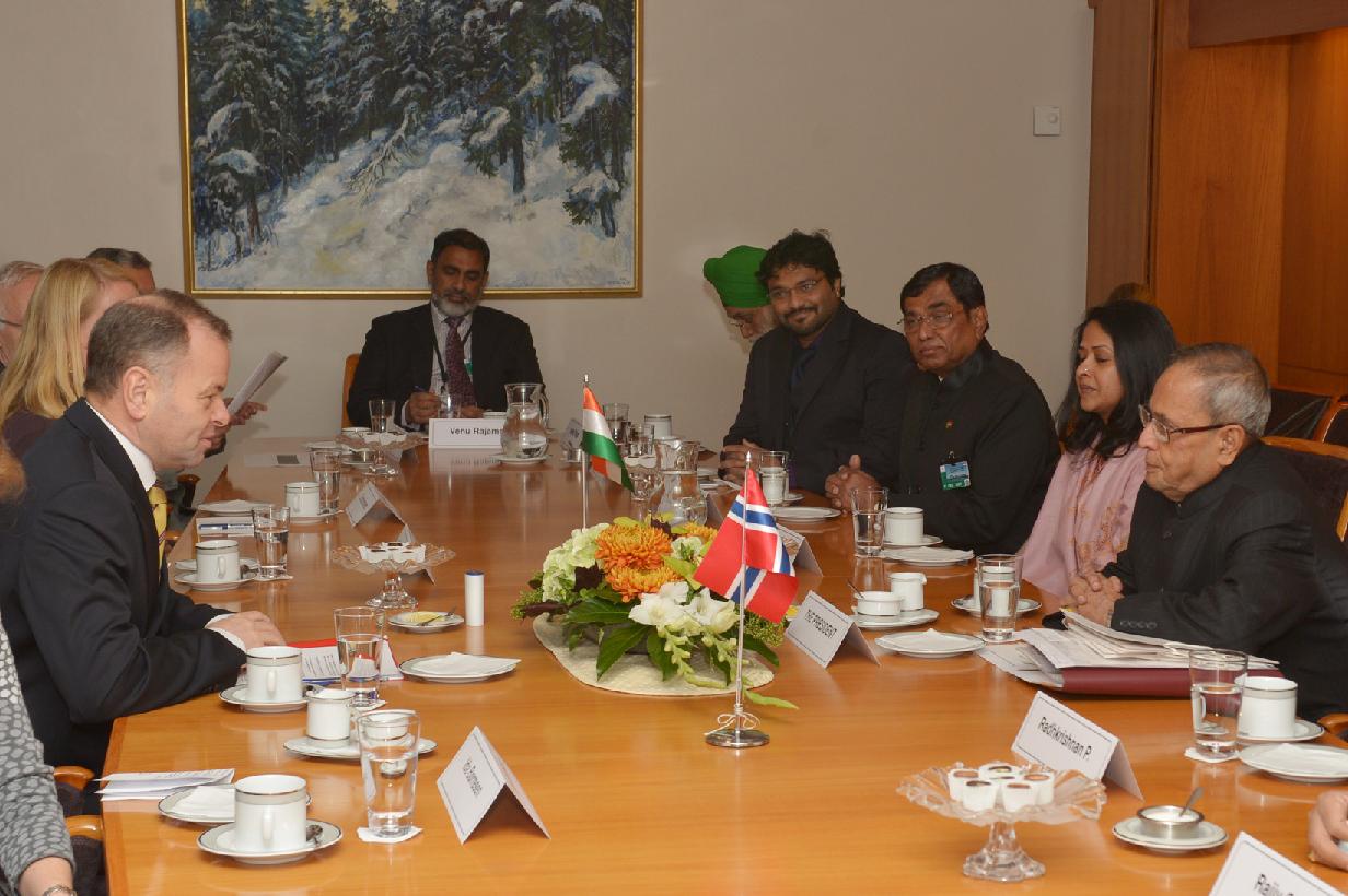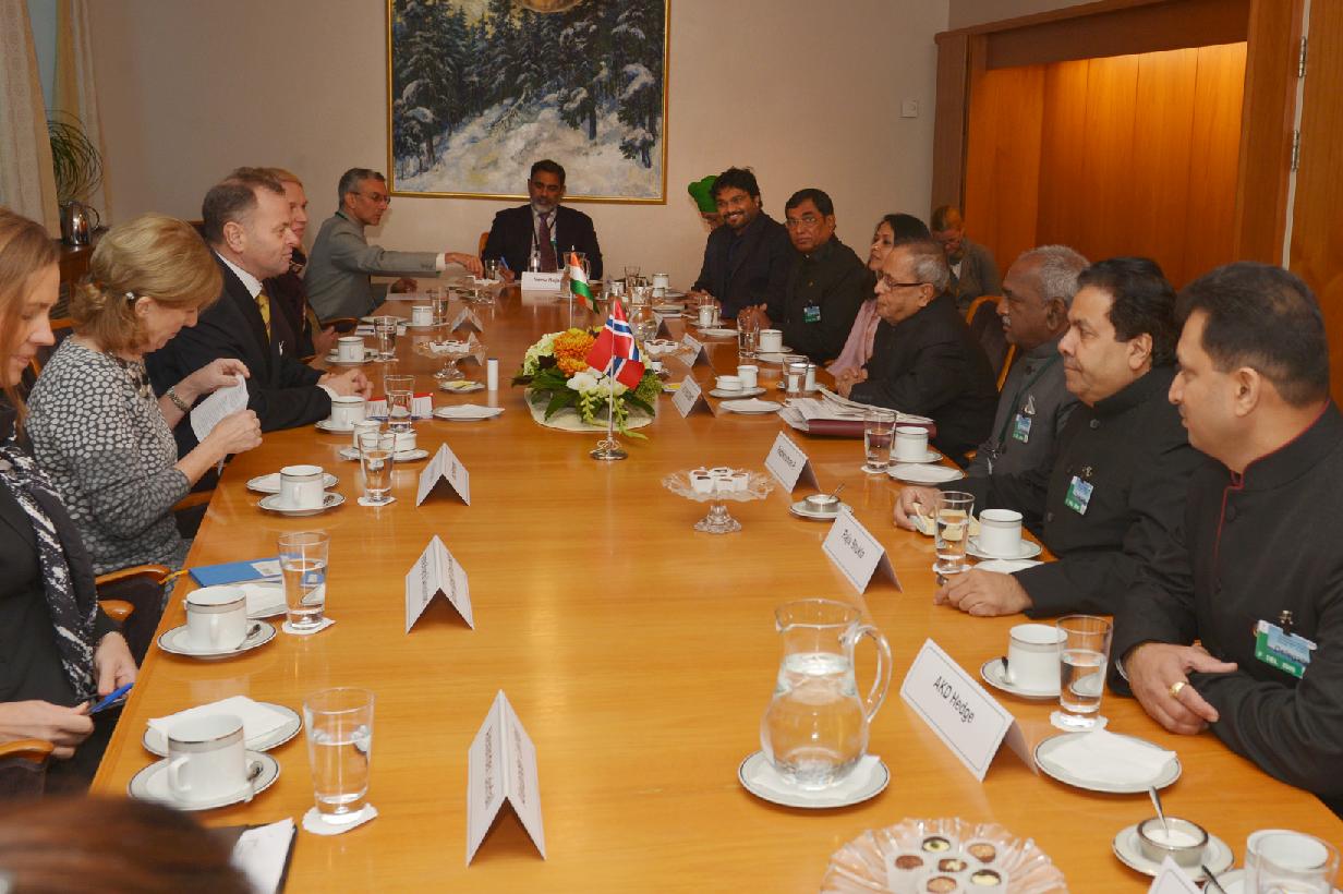 | Caption: | The President of India, Shri Pranab Mukherjee meeting with the President of Storting (Parliament) of Norway, HE Mr Olemic Thommessen at Oslo in Norway on Oct 13, 2014 |