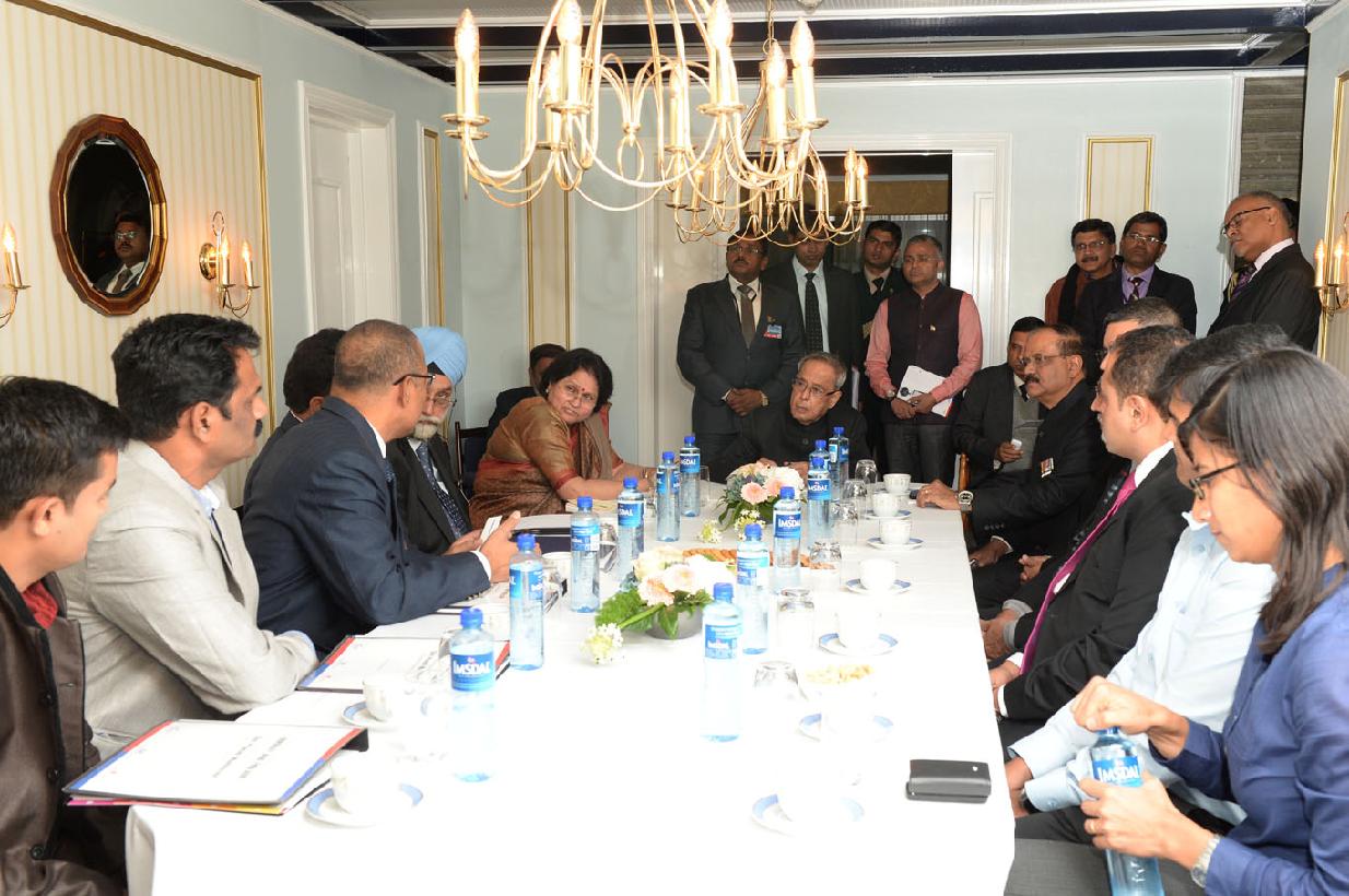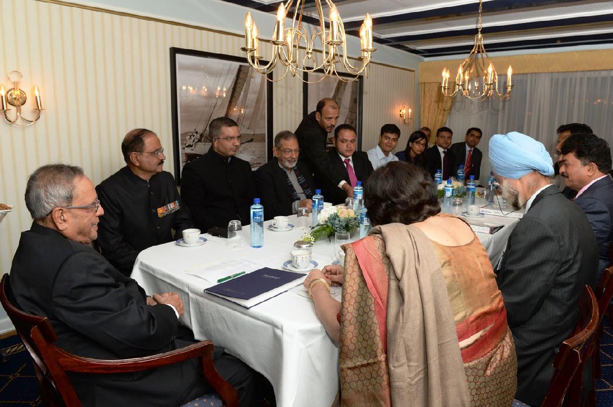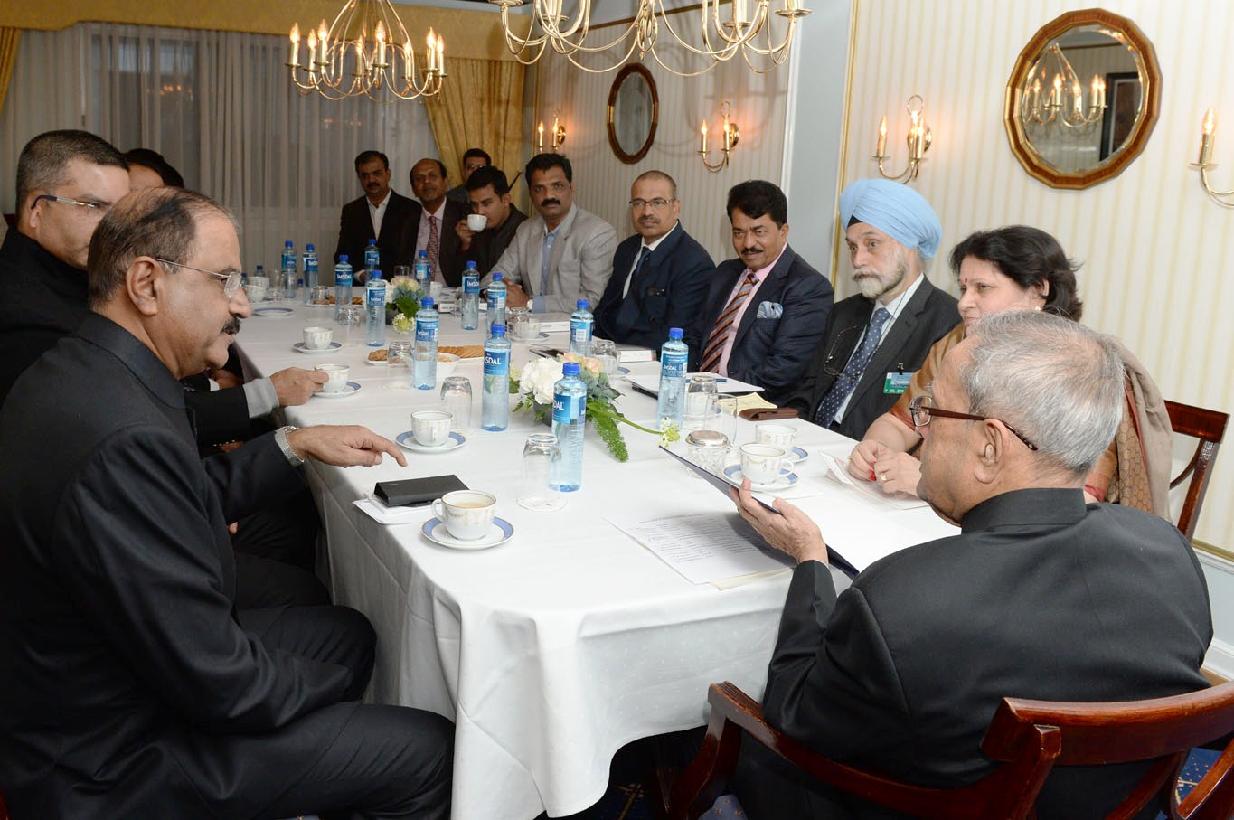 | Caption: | The President of India, Shri Pranab Mukherjee at the Business Delegation Meeting at Oslo in Norway on Oct 12, 2014 |