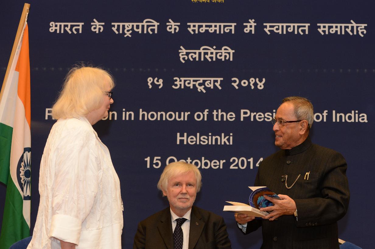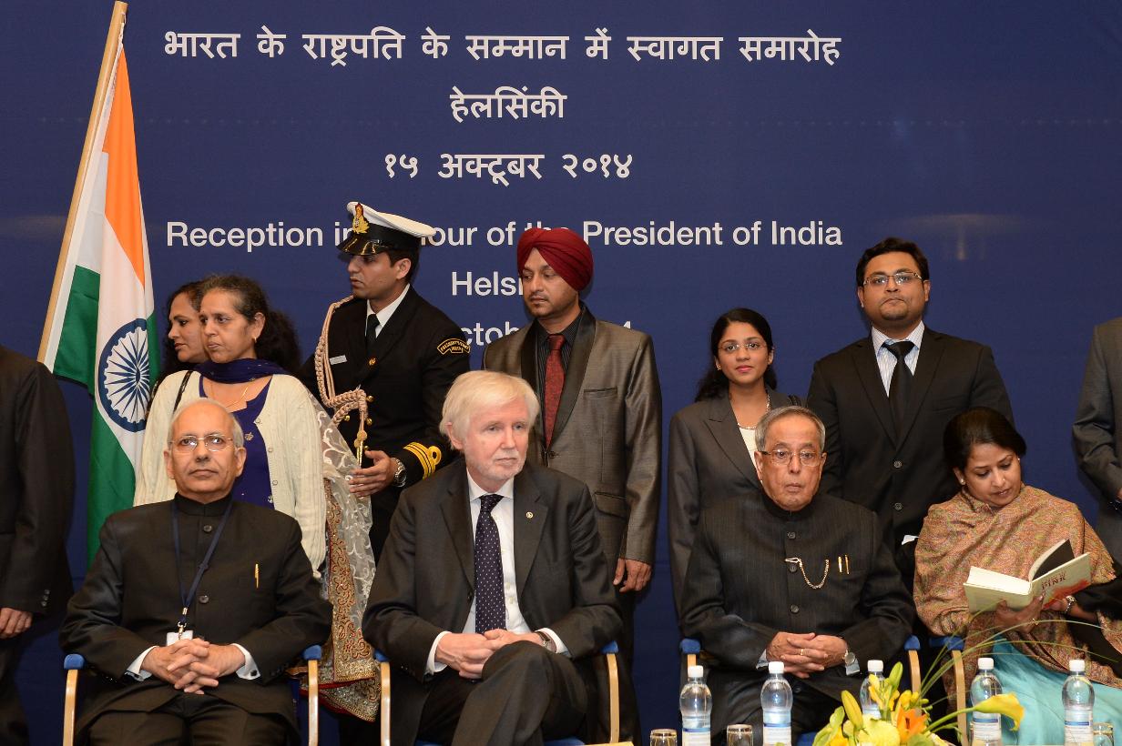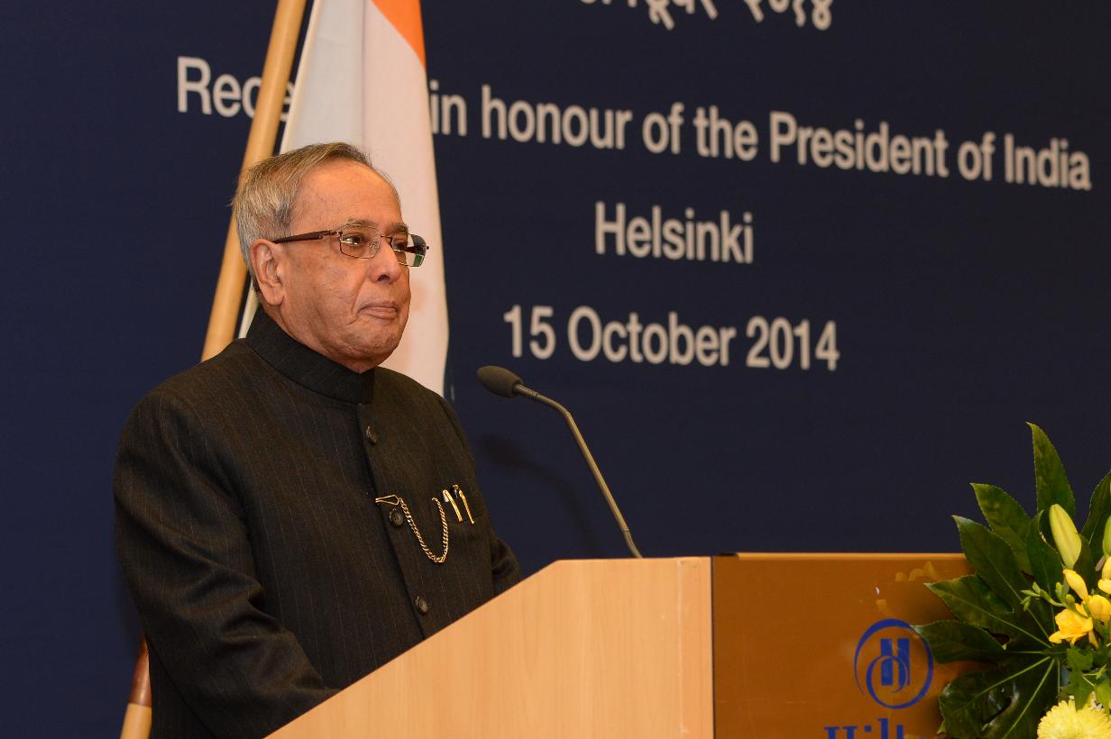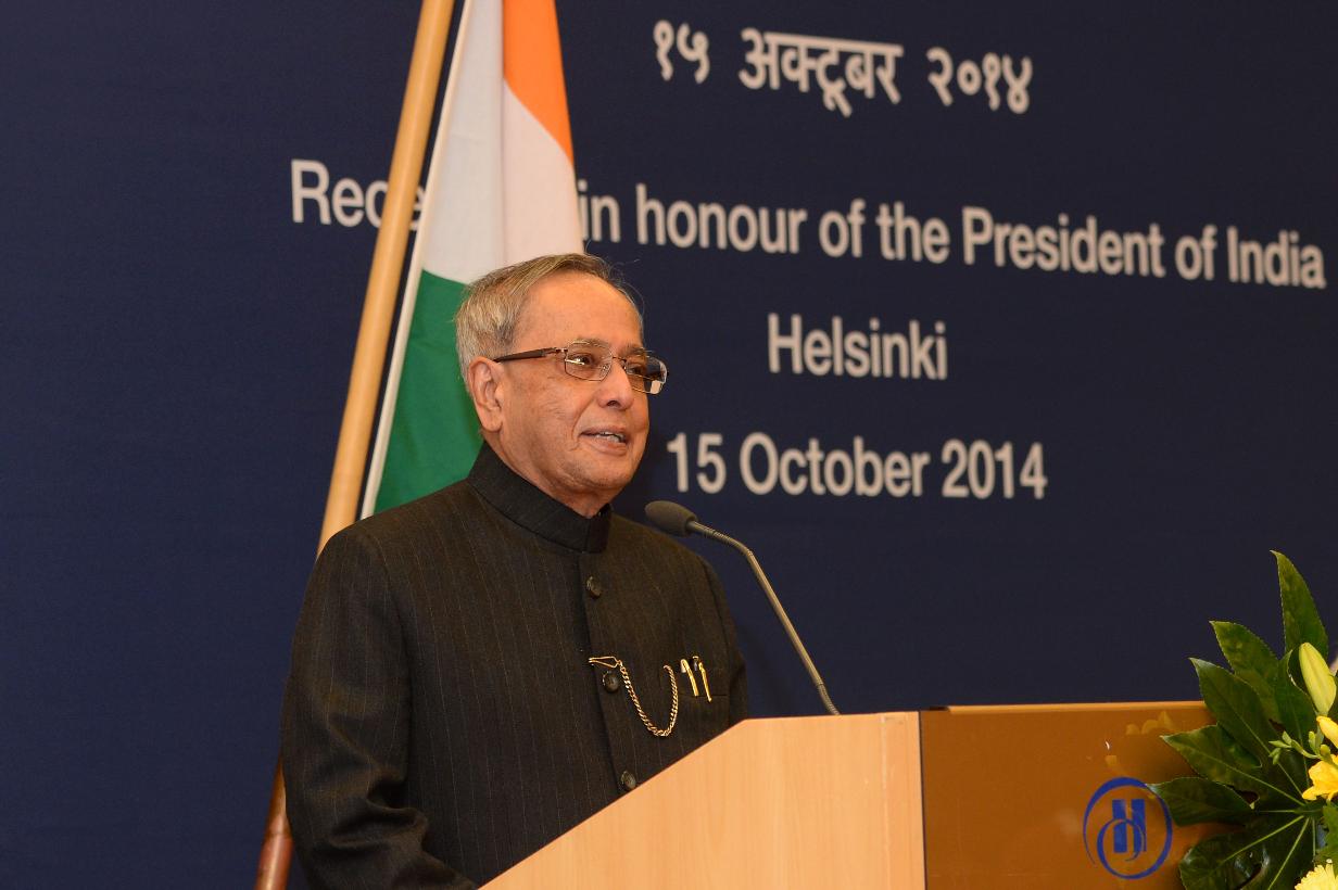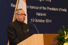 | Caption: | The President of India, Shri Pranab Mukherjee during Indian Community Reception hosted by the Ambassador of India to Finland, Shri Ashok Kumar Sharma at Helsinki in Finland on Oct 15, 2014 |