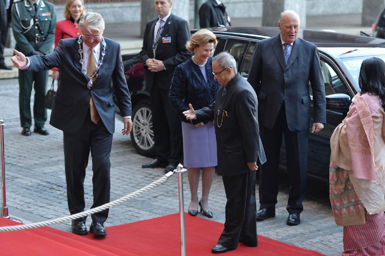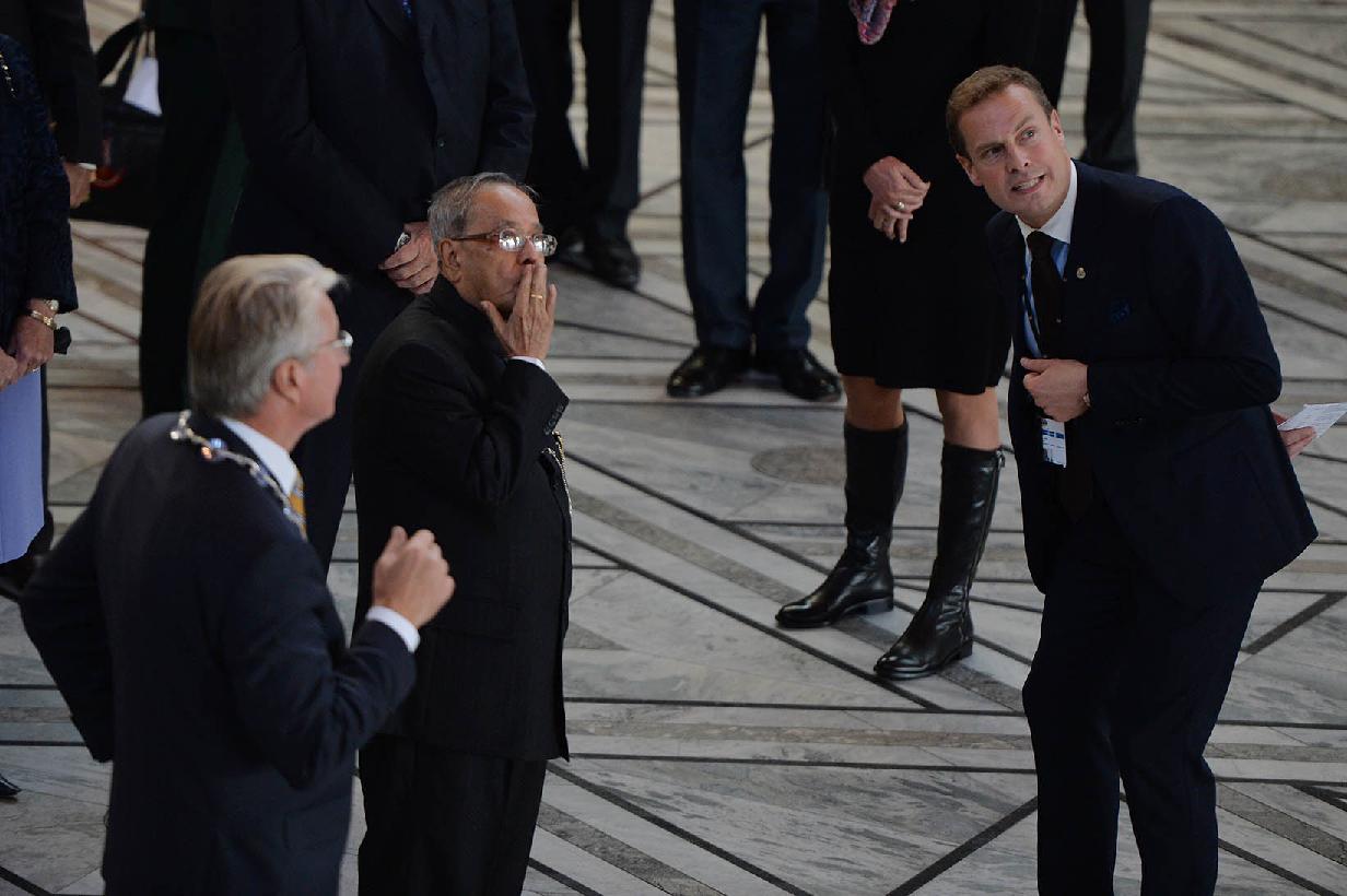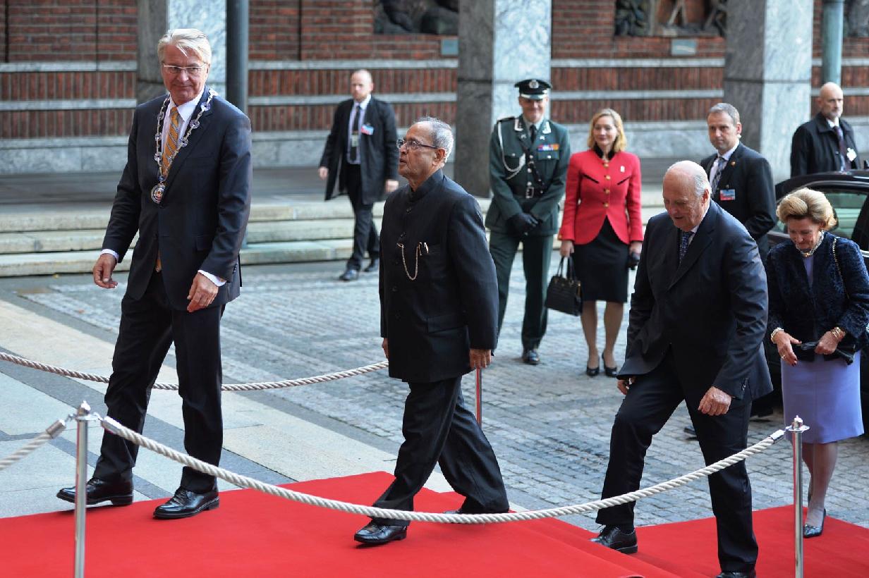 | Caption: | The President of India, Shri Pranab Mukherjee during visit to Oslo City Hall at Oslo in Norway on Oct 13, 2014 |