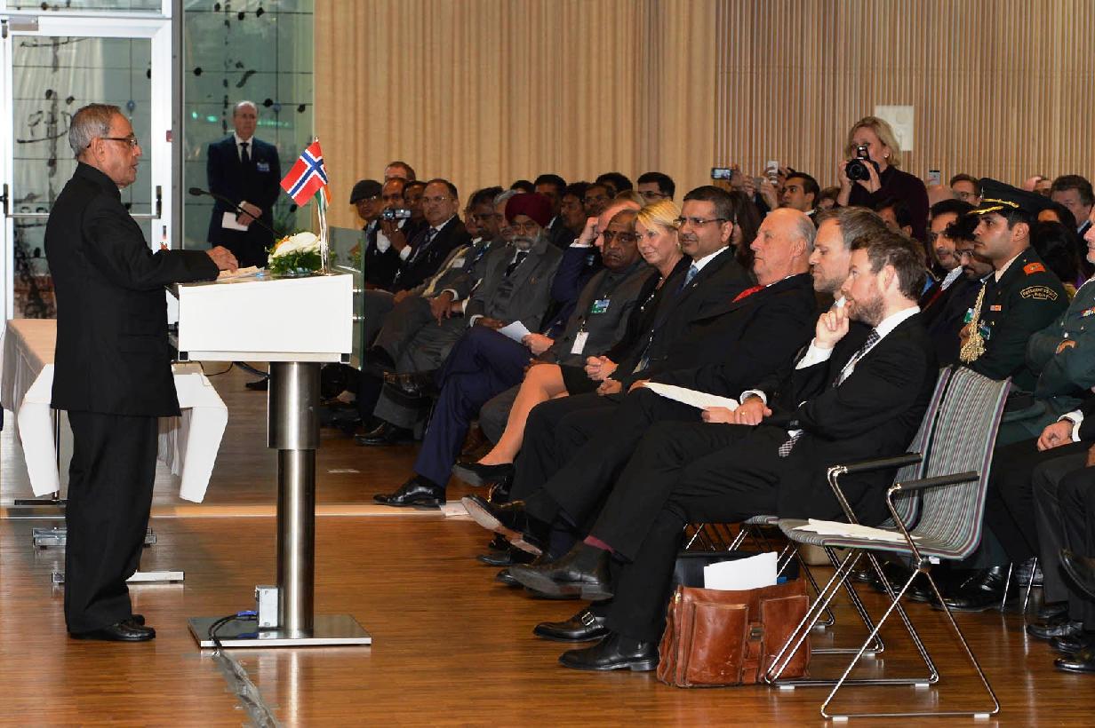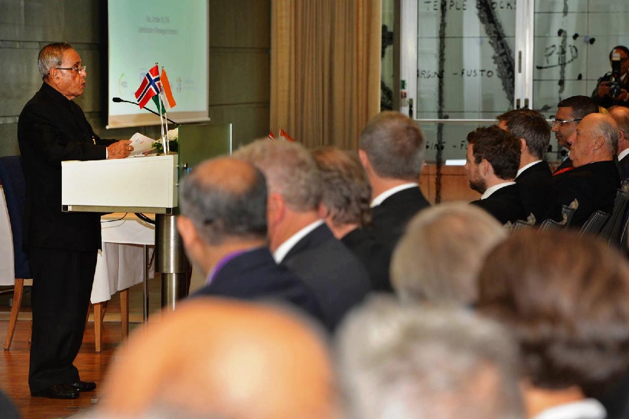 | Caption: | The President of India, Shri Pranab Mukherjee at the Plenary Session of the Joint Seminar on Business, Science and Technology at Oslo in Norway on Oct 14, 2014 |