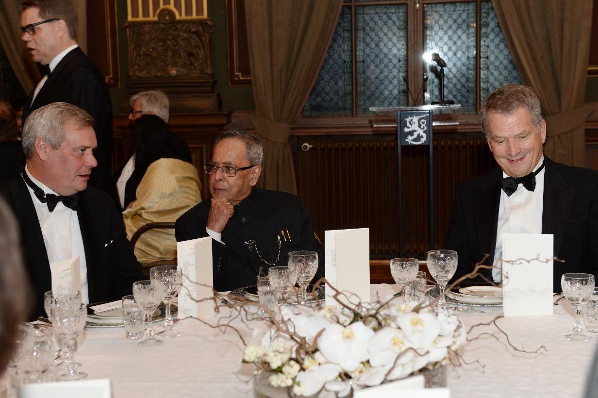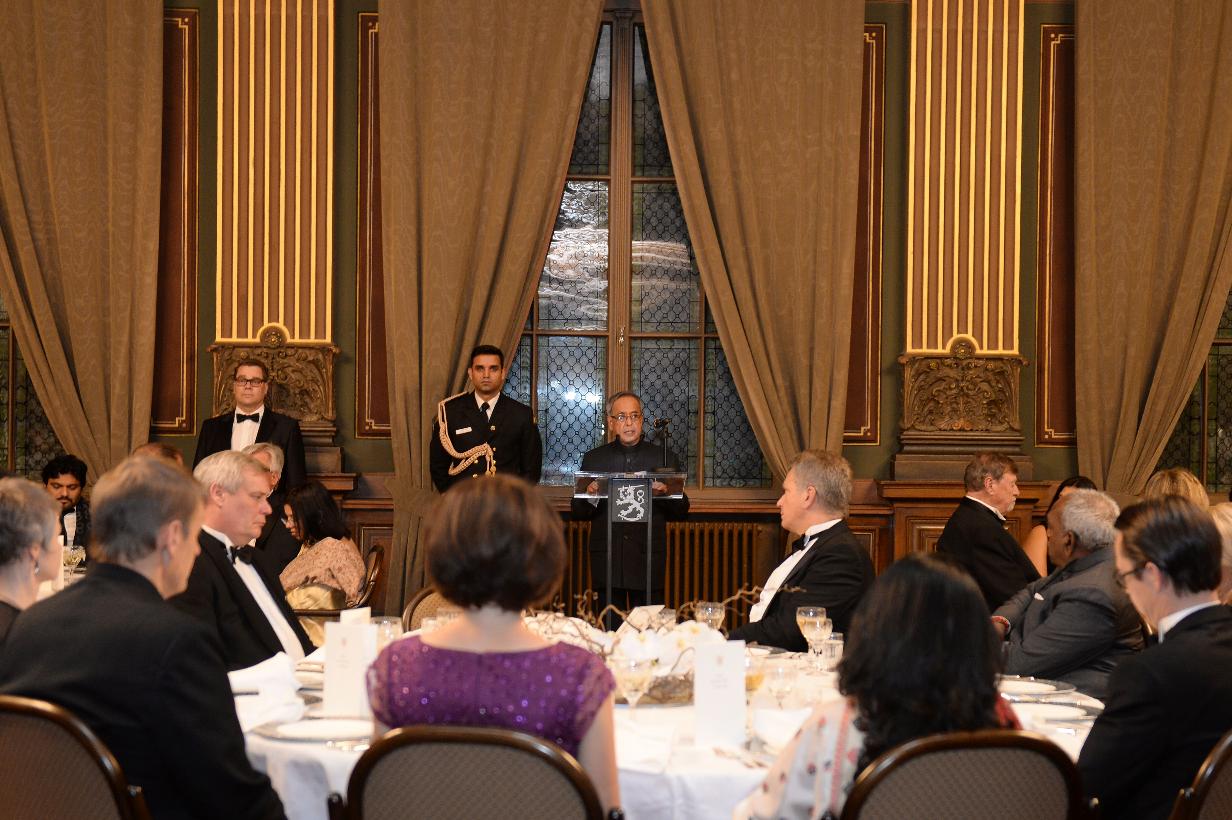| Caption: | The President of India, Shri Pranab Mukherjee at the State Banquet (House of Estates) at Helsinki in Finland on Oct 15, 2014 |