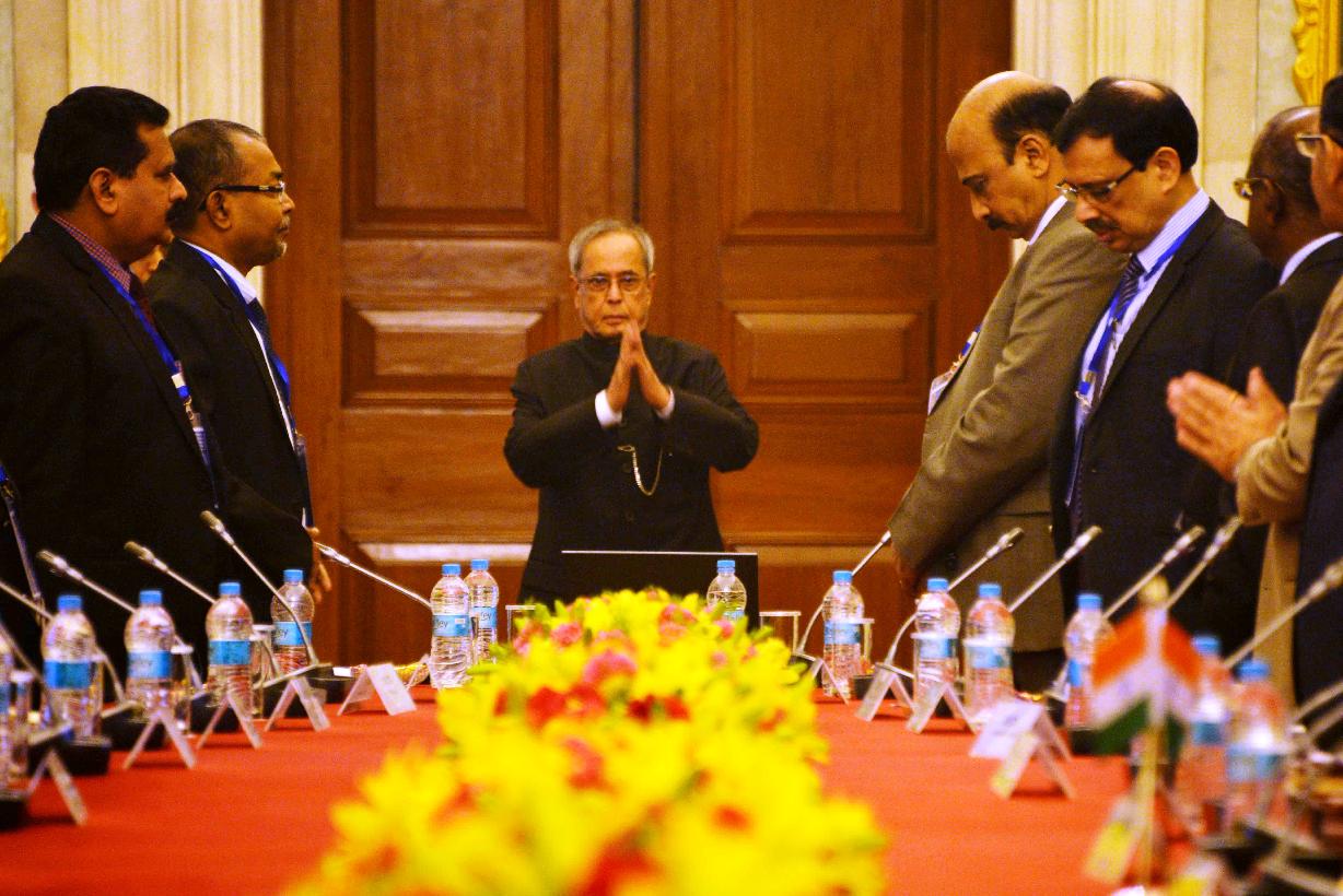 | Caption: | The President of India, Shri Pranab Mukherjee during the Conference of the Directors of National Institutes of Technology at Rashtrapati Bhavan in New Delhi on Oct 29, 2014 |