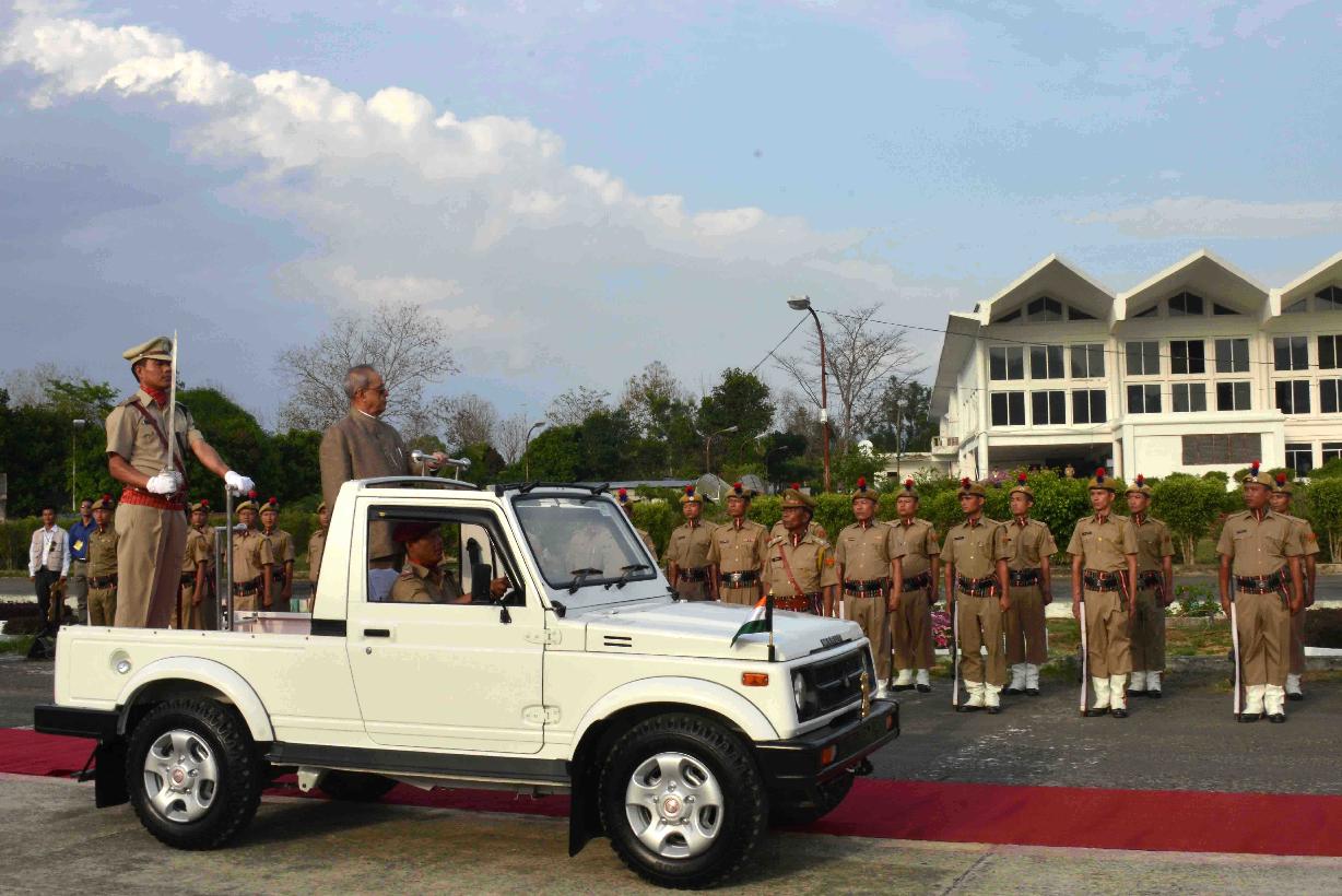 | Caption: | The President of India, Shri Pranab Mukherjee inspecting the Guard of Honour on his arrival, at Lengpui Airport, in Aizawl, Mizoram on April 09, 2015. |