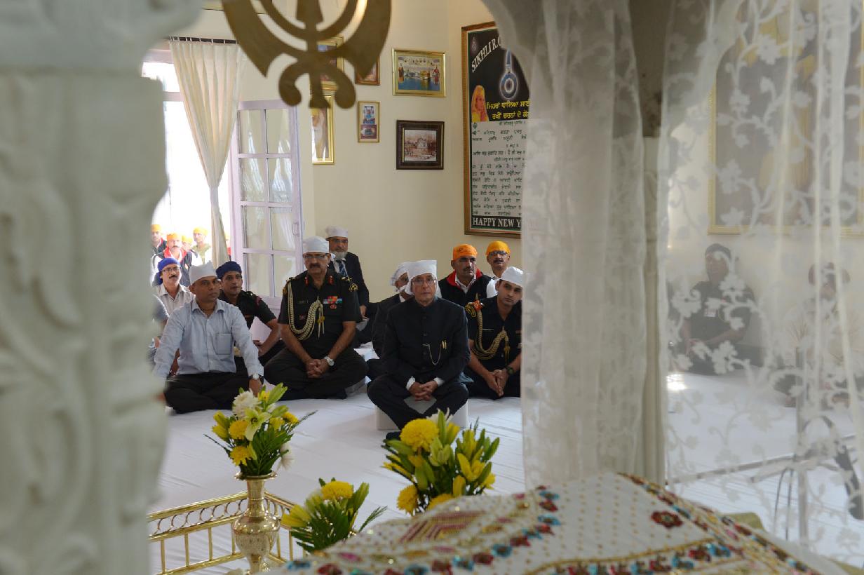 | Caption: | The President of India, Shri Pranab Mukherjee visiting the President Body Guard Regimental Gurudwara on the occasion of the 546th Birth Anniversary of Guru Nanak Devji at Rashtrapati Bhavan in New Delhi on Nov 06, 2014 |