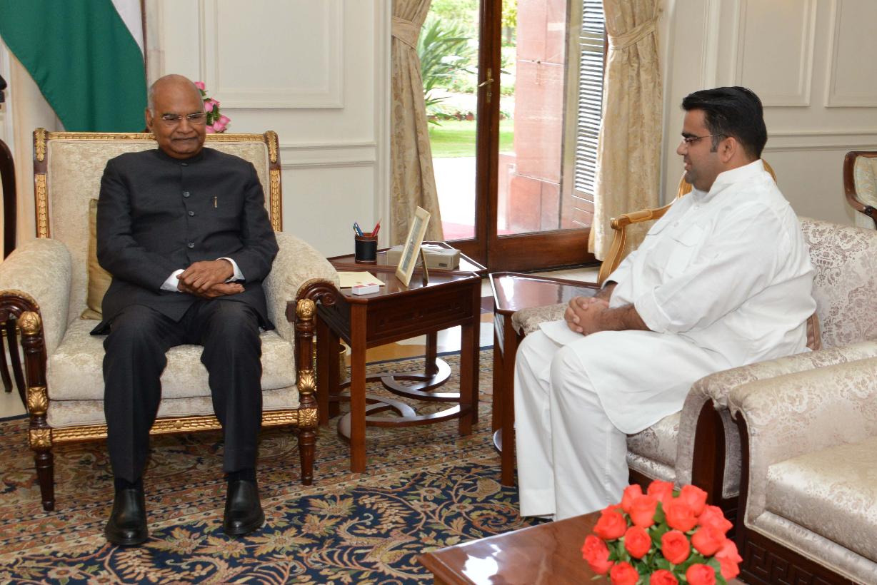| Caption: | Shri Abhimanyu Singh Rajvi (Grandson of Late Shri Bhairon Singh Shekhawat, former Vice President of India) meeting with the President of India, Shri Ram Nath Kovind, at Rashtrapati Bhavan on March 05, 2020. |