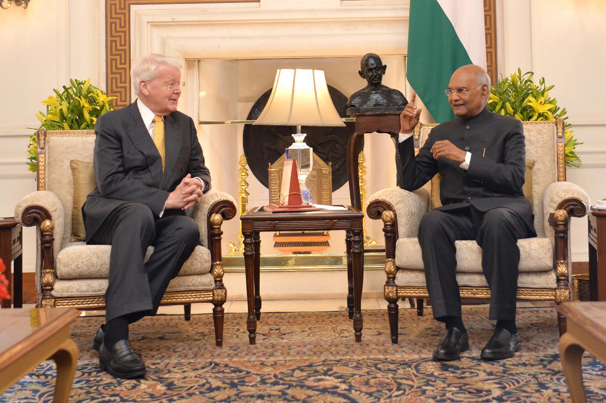| Caption: | The former President of Iceland, H.E. Mr. Olafur Ragnar Grimsson calling on the President of India, Shri Ram Nath Kovind, at Rashtrapati Bhavan on March 05, 2020. |