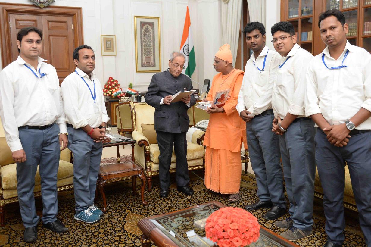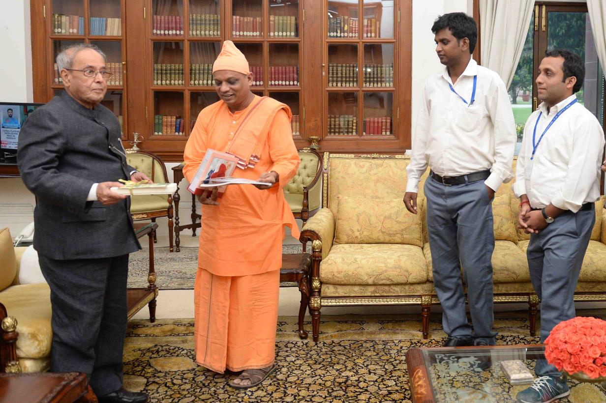 | Caption: | The President of India, Shri Pranab Mukherjee meeting with Swami Shubhakarananda with others from Jhargram, at Rashtrapati Bhavan on June 14, 2017. |