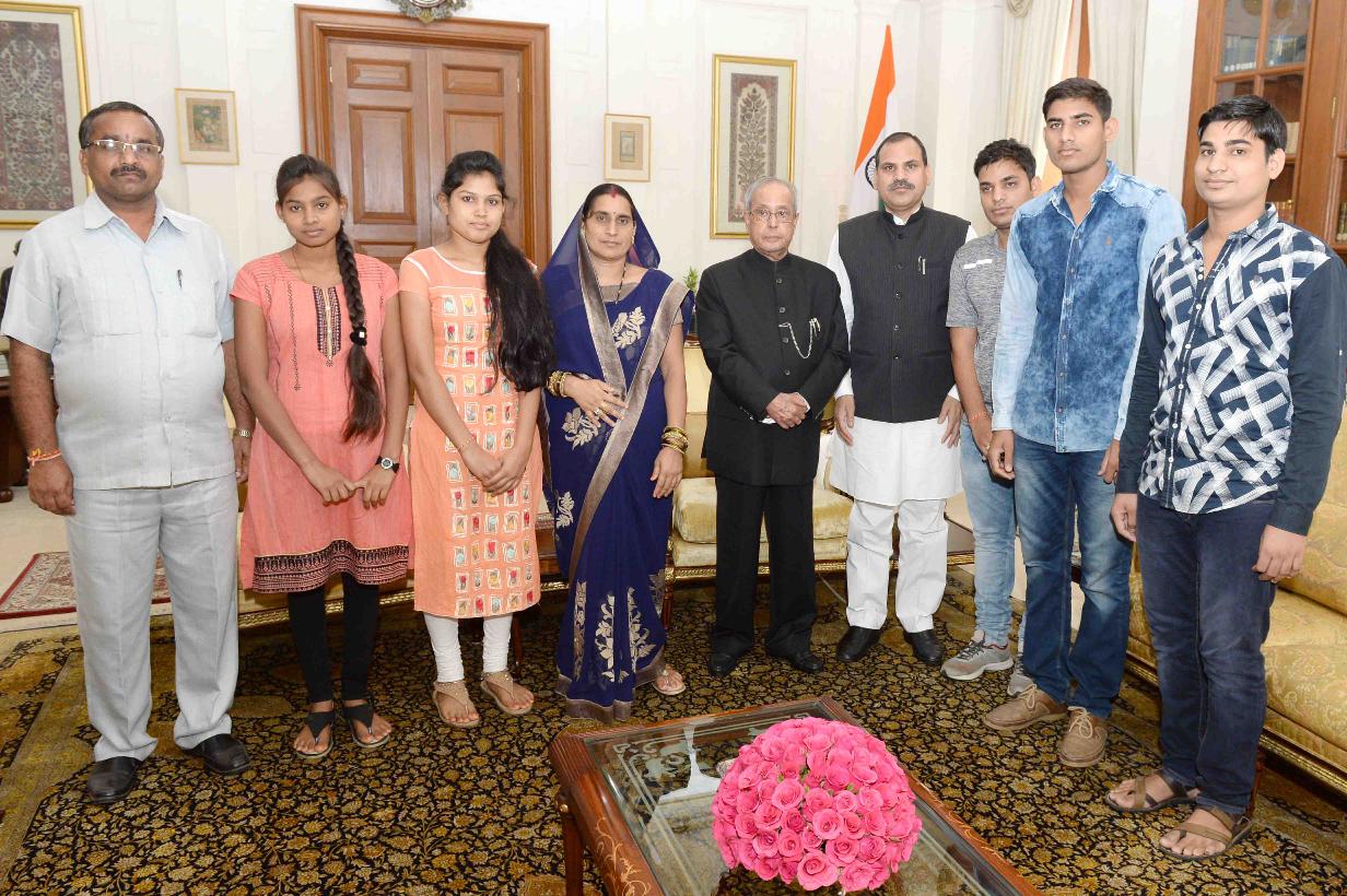 | Caption: | The President of India, Shri Pranab Mukherjee meeting with Shri Lakhan lal Sahu, MP (LS) with his family members, at Rashtrapati Bhavan on June 21, 2017. |