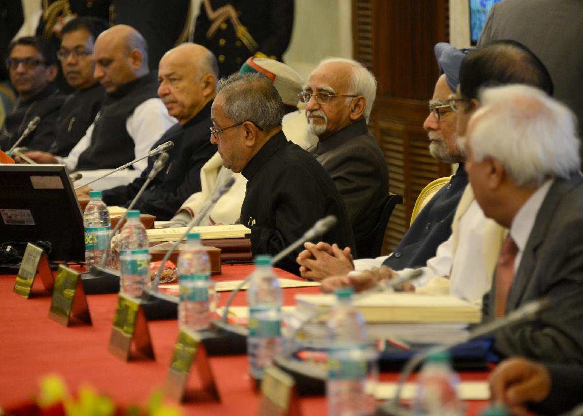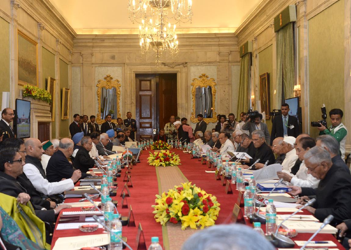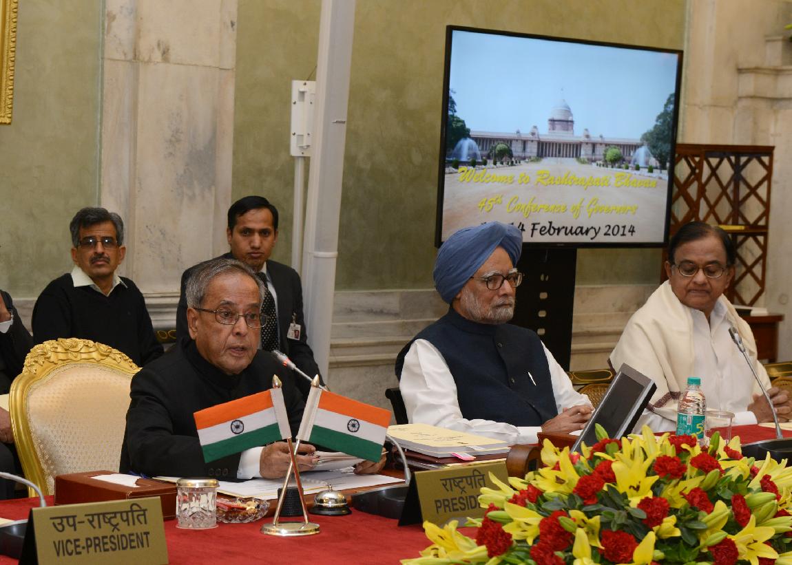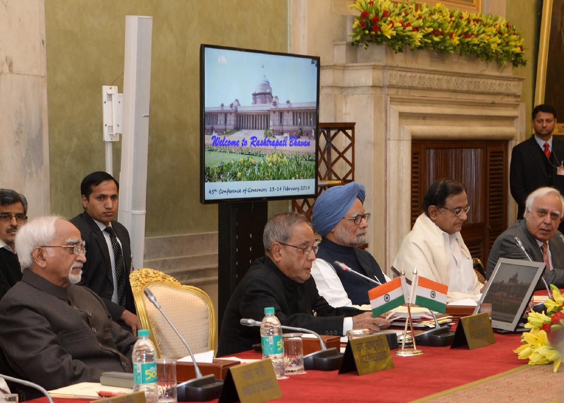 | Caption: | The President of India, Shri Pranab Mukherjee during the Conference of Governors at Durbar Hall of Rashtrapati Bhavan in New Delhi on Feb 13, 2014 |