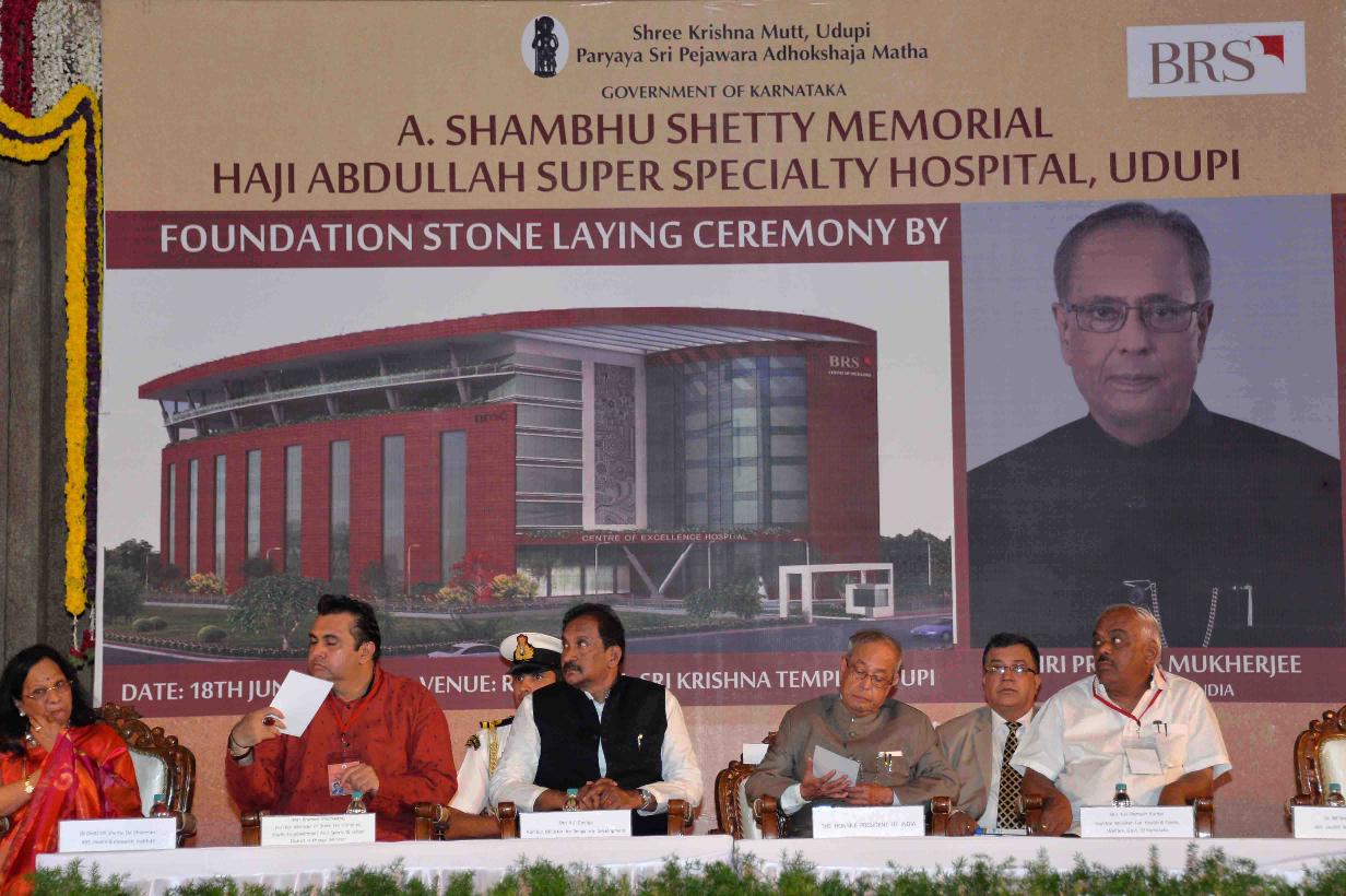 | Caption: | The President of India, Shri Pranab Mukherjee laying the foundation stone of a Super Specialty Hospital of BRS Health & Research Institute, at Udupi, in Karnataka on June 18, 2017. |