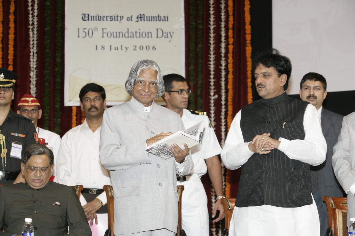 | Caption: | The President of India, Dr A P J Abdul Kalam during the Launch of Sesquicentennial Celebrations of the University of Mumbai at Mumbai in Maharashtra on July 18, 2006 |