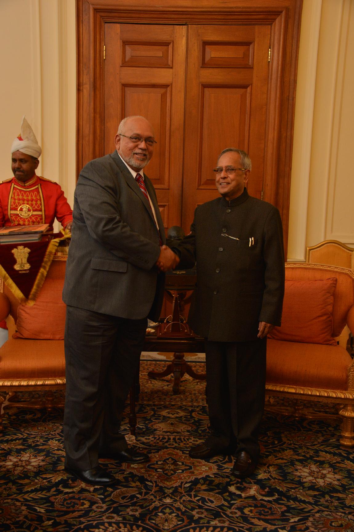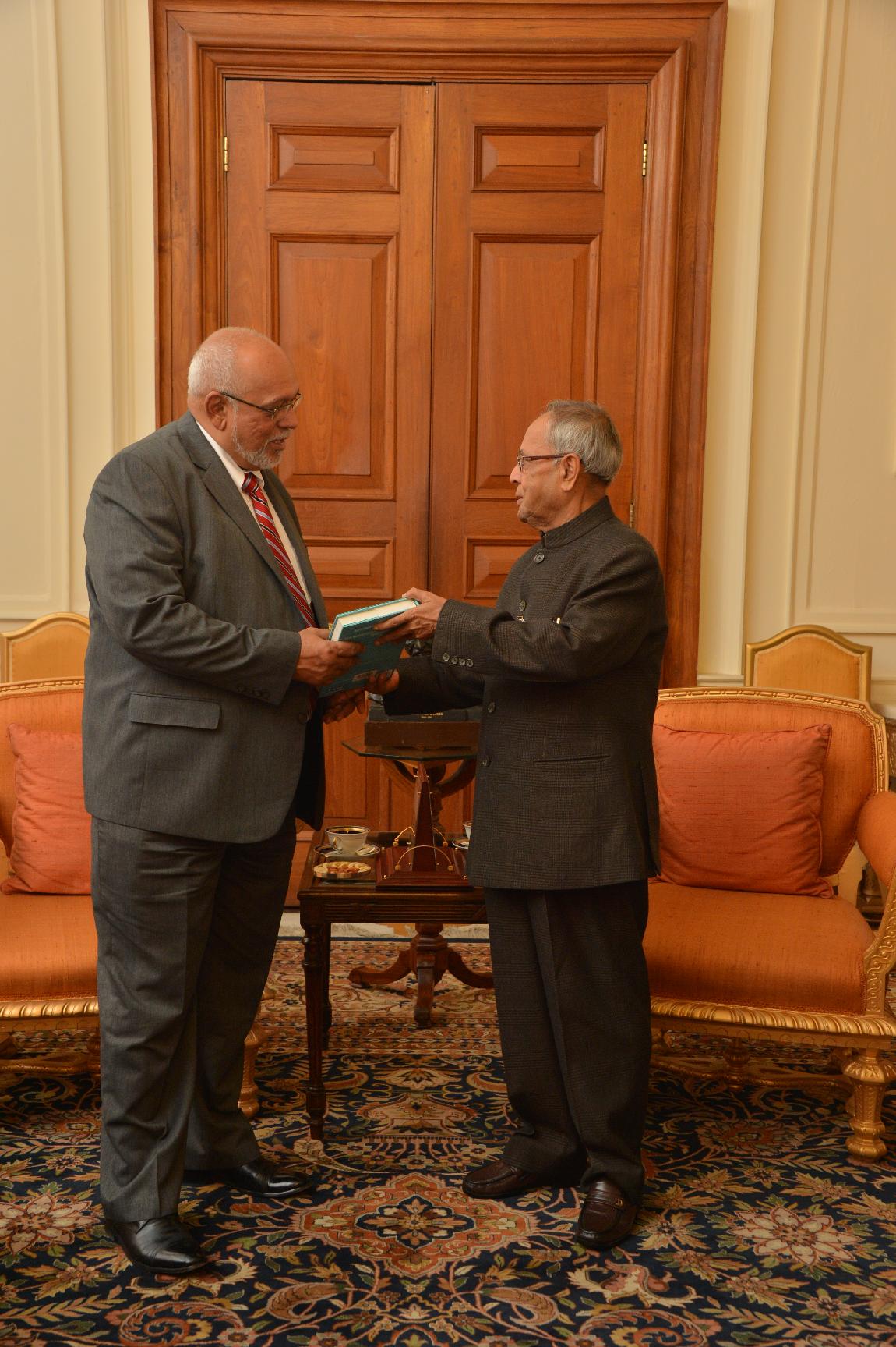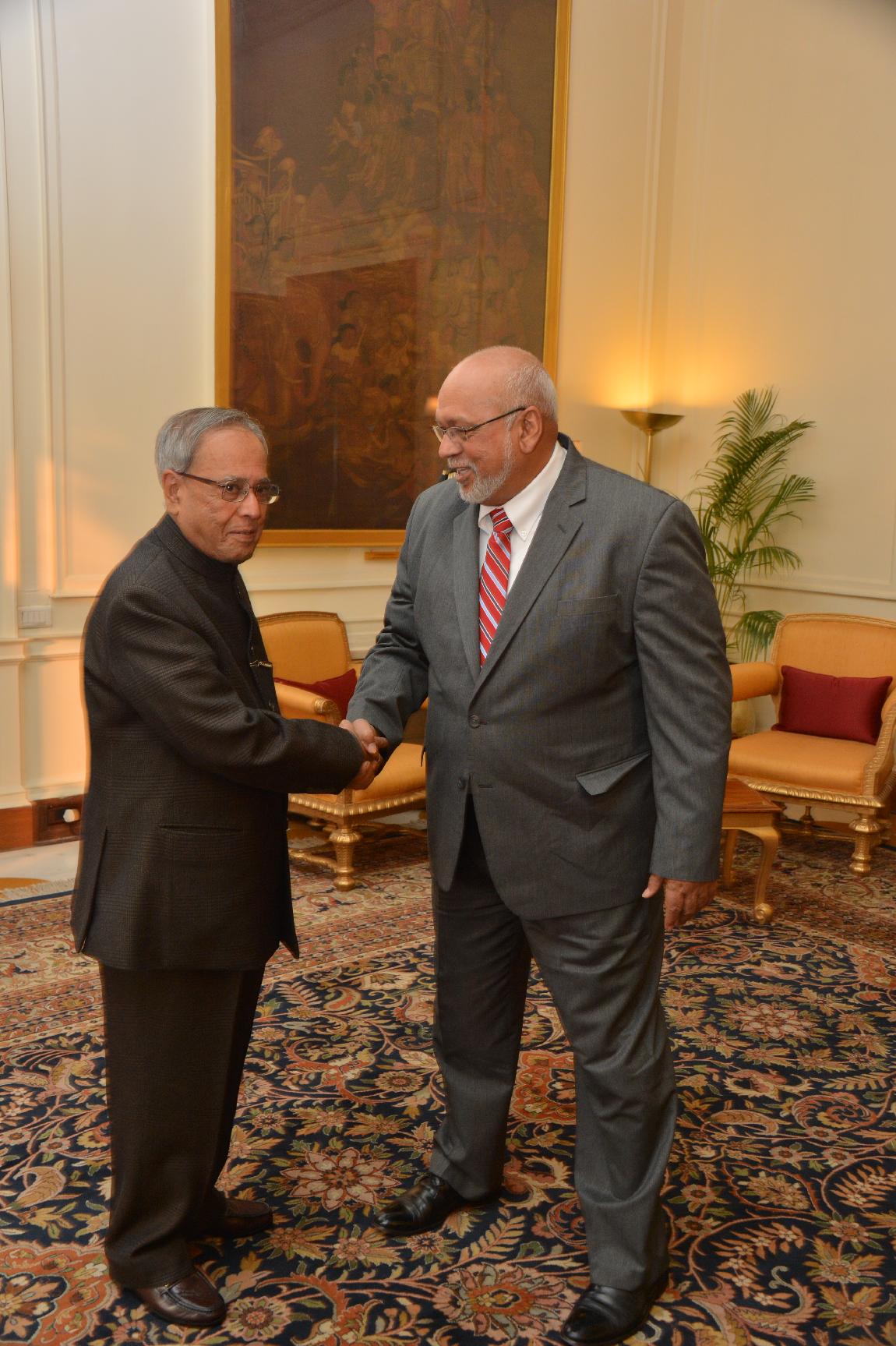 | Caption: | The President of India, Shri Pranab Mukherjee Called by HE Mr Donald Ramotar, President of the Republic of Guyana on Feb 01, 2013 |