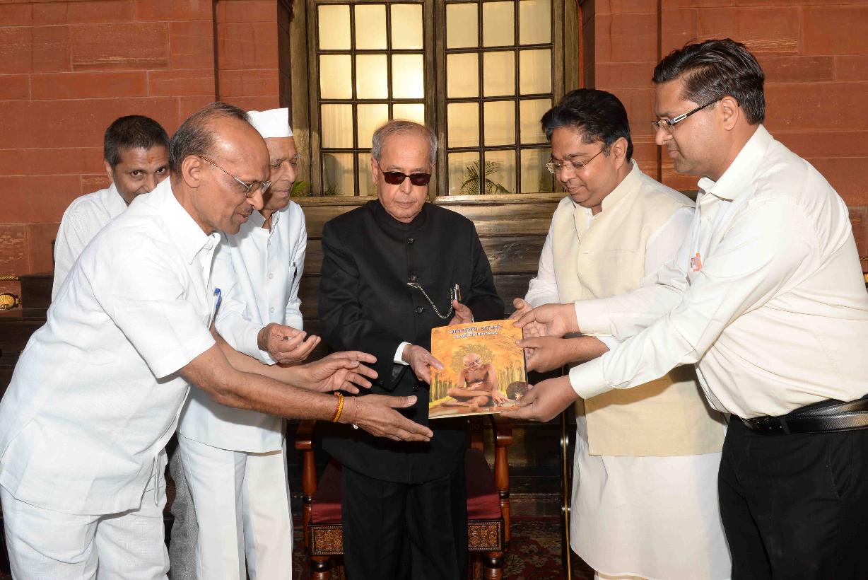 | Caption: | The President of India, Shri Pranab Mukherjee meeting with Shri Pravin Kumar Jain, City Editor, Mahalaxmi Group of Publications along with a delegation, on the occasion of Mahavir Jayanti, at Rashtrapati Bhavan on April 08, 2017. |