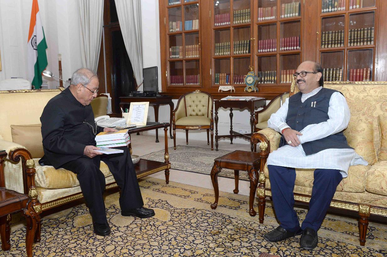 | Caption: | The President of India, Shri Pranab Mukherjee meeting with Shri Amar Singh, MP (RS), at Rashtrapati Bhavan on April 08, 2017. |